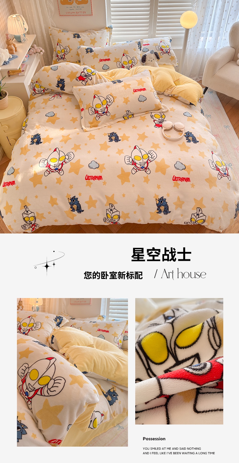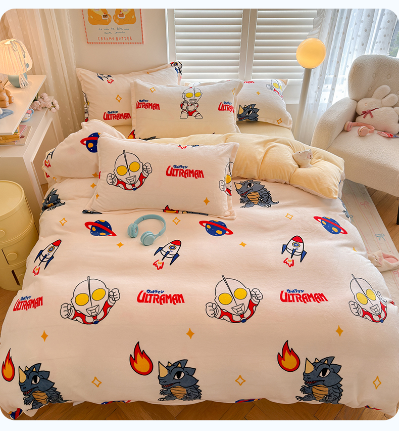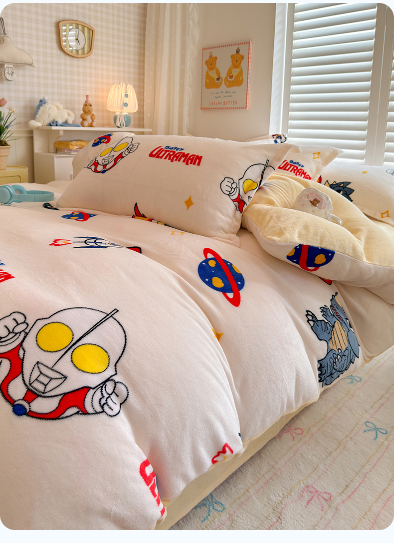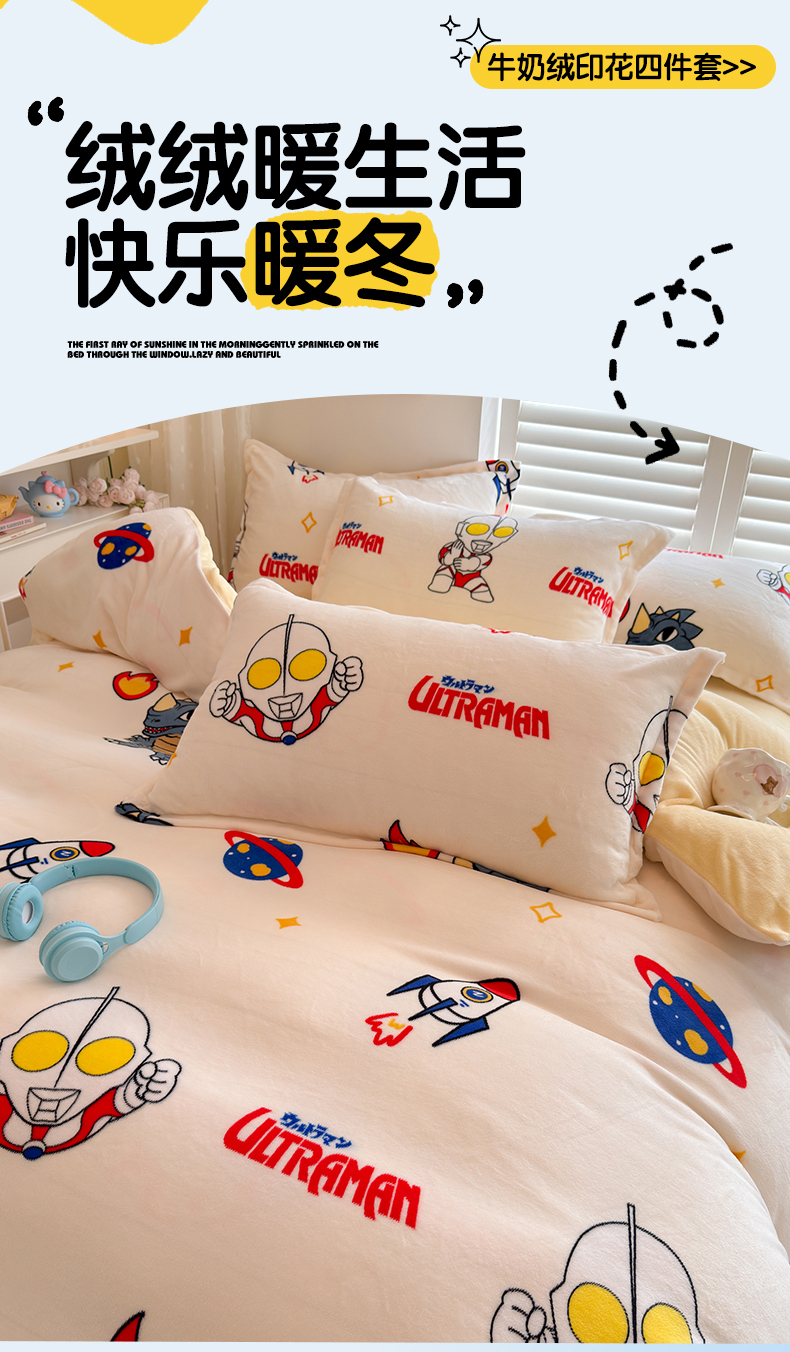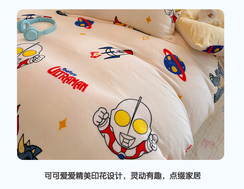 当前位置: 91家纺网 > 商品网购 > 床品套件 > 四件套 > 牛奶绒四件套 > 名兮家居 2025新款经典奥特曼-三丽鸥高克重牛奶绒四件套 奥特超人