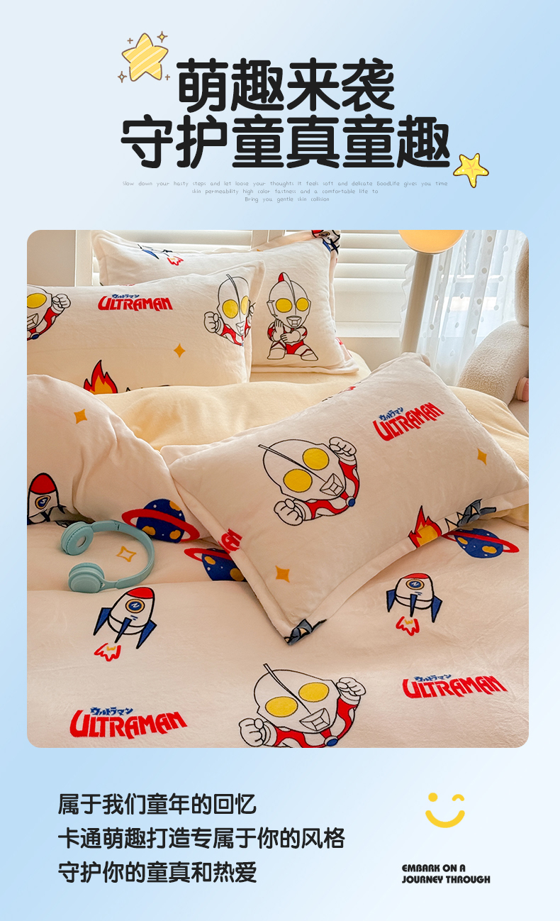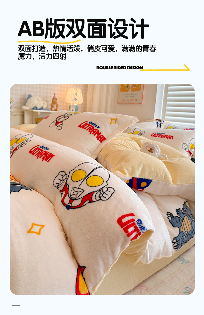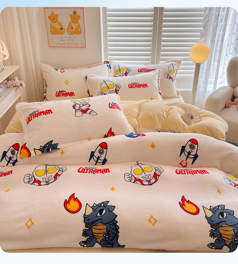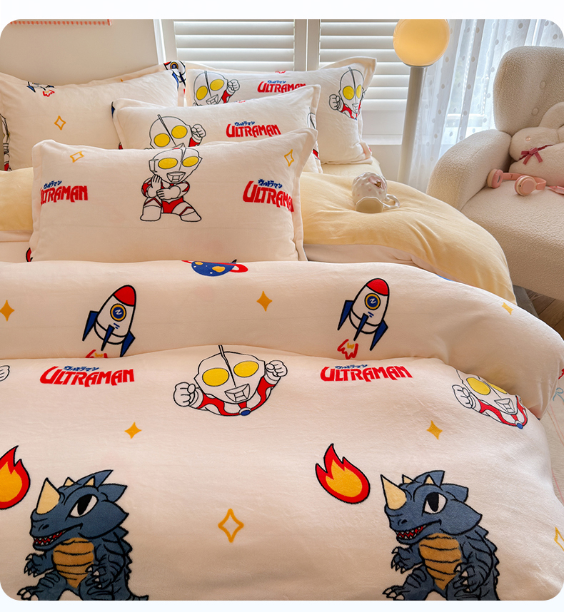 当前位置: 91家纺网 > 商品网购 > 床品套件 > 四件套 > 牛奶绒四件套 > 名兮家居 2025新款经典奥特曼-三丽鸥高克重牛奶绒四件套 奥特超人