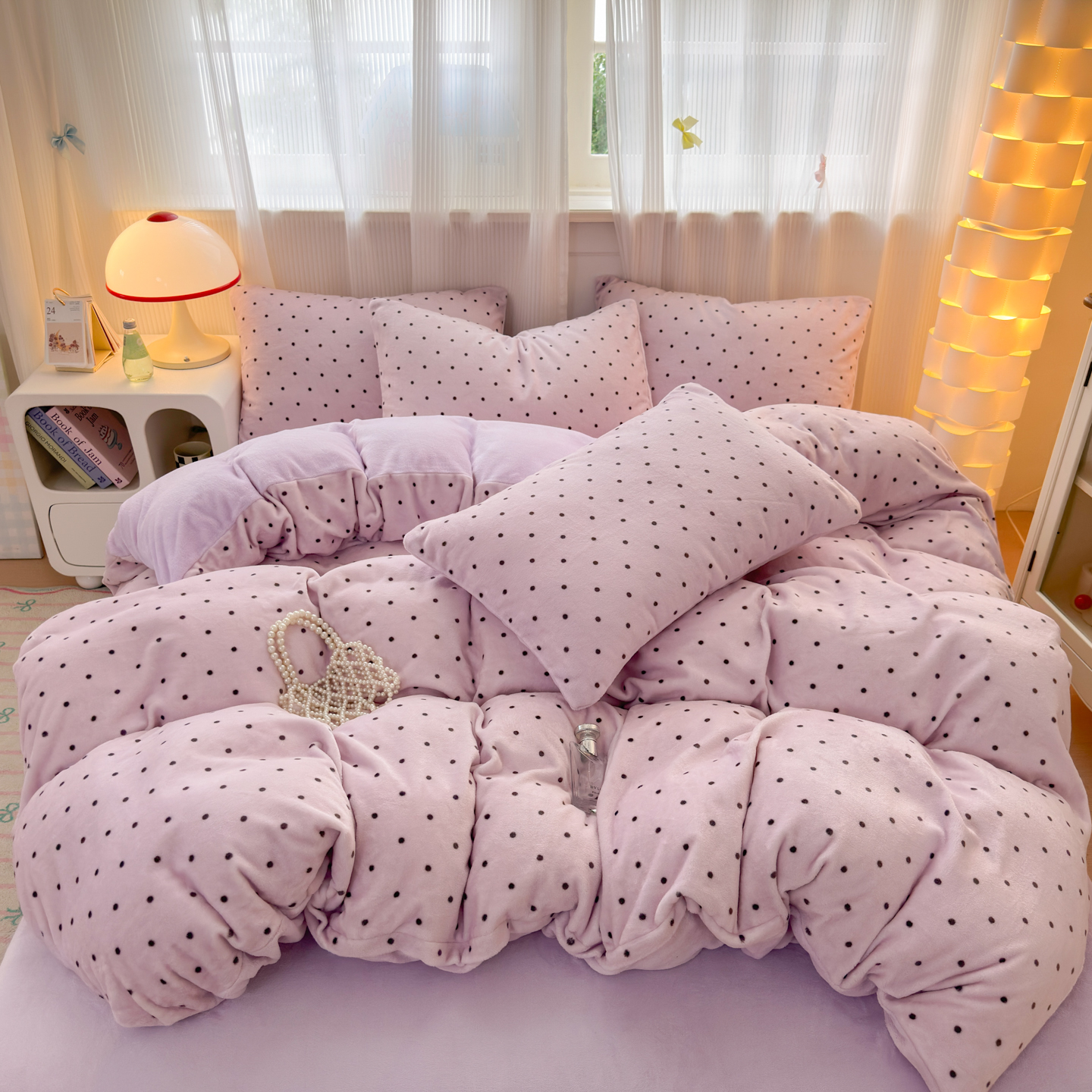 商品名称:德比尔斯 2025新款暗合印花牛奶绒四件套 波点-紫