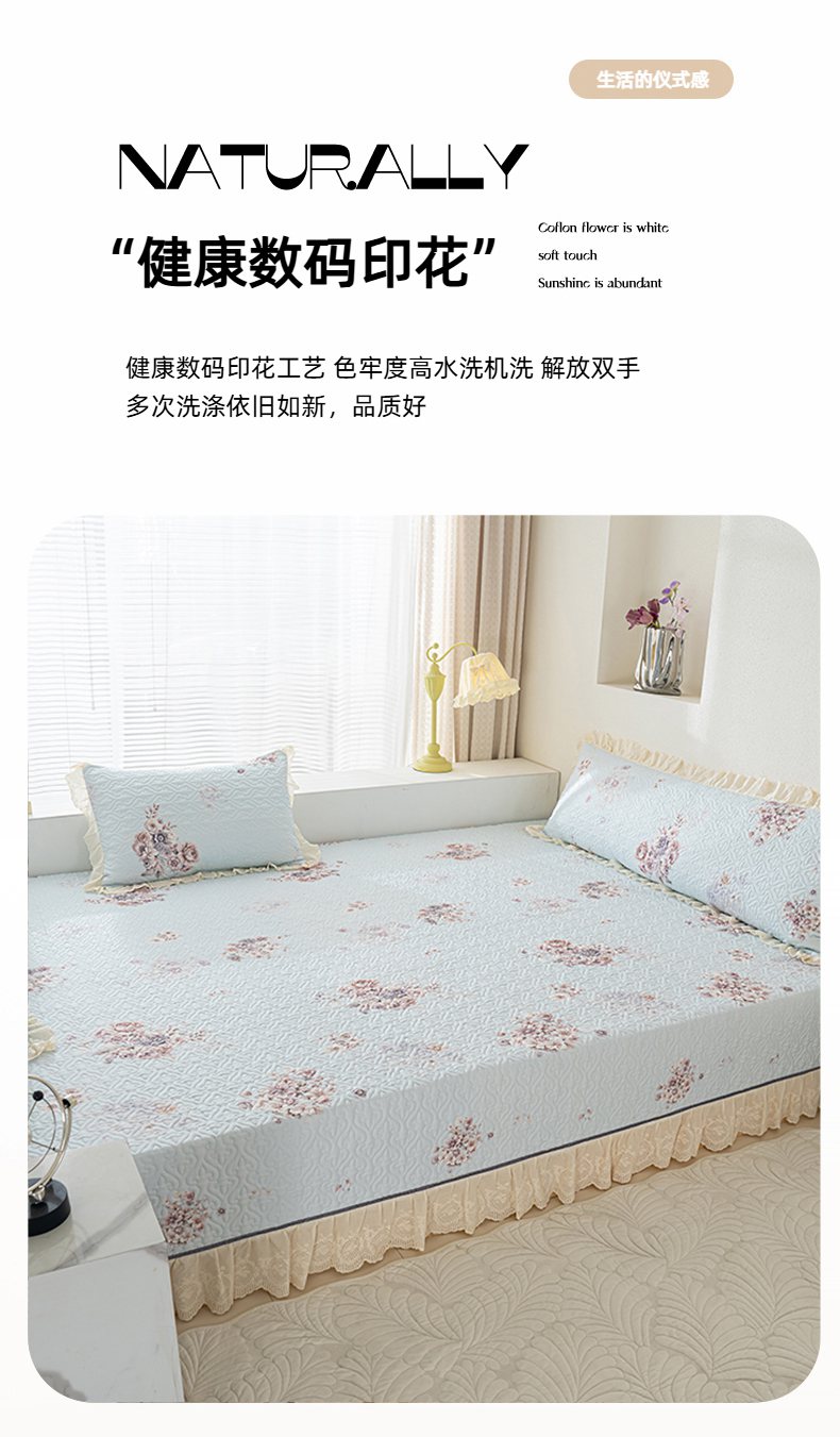 • 91家纺网 家纺一手货源 找家纺 冬然家纺 2025新款纯棉数码印花榻榻米床盖系列 花影