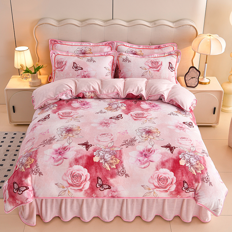 当前位置: 91家纺网 > 商品网购 > 床品套件 > 四件套 > 牛奶绒四件套 > 德比尔斯 2025新款牛奶绒床裙四件套8-9斤法莱绒直播爆款日产2万套 蝶恋花
