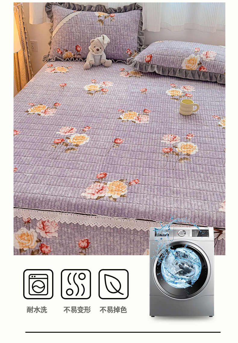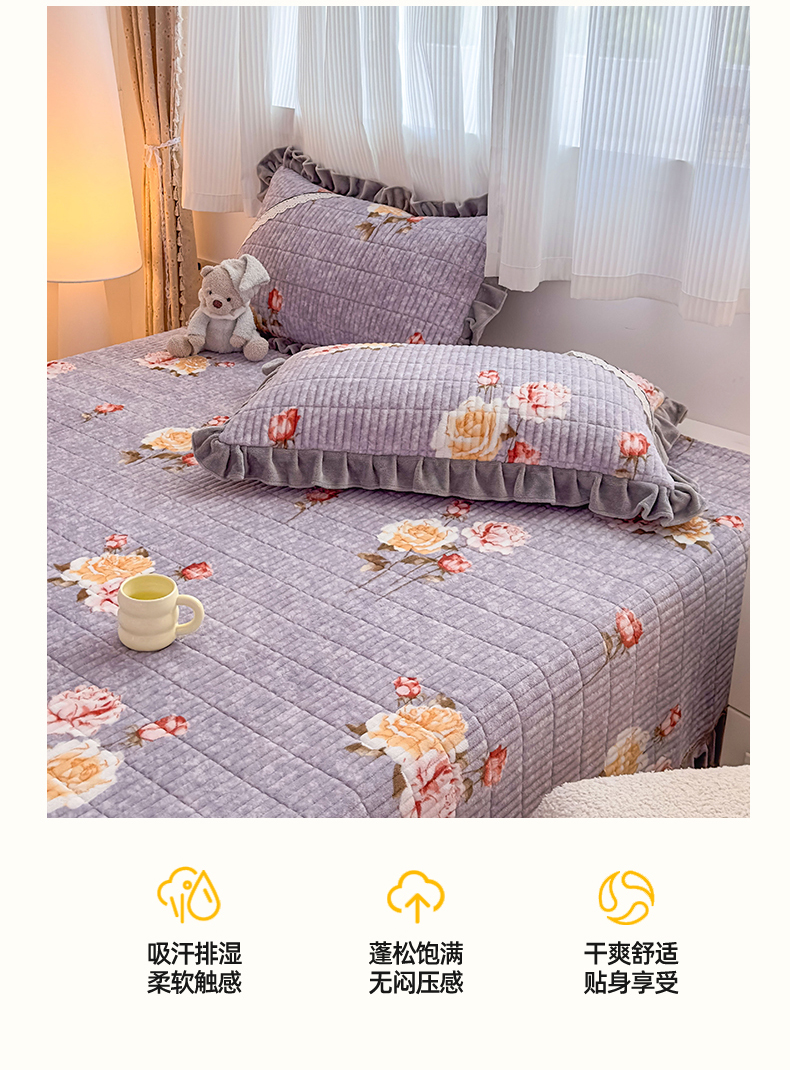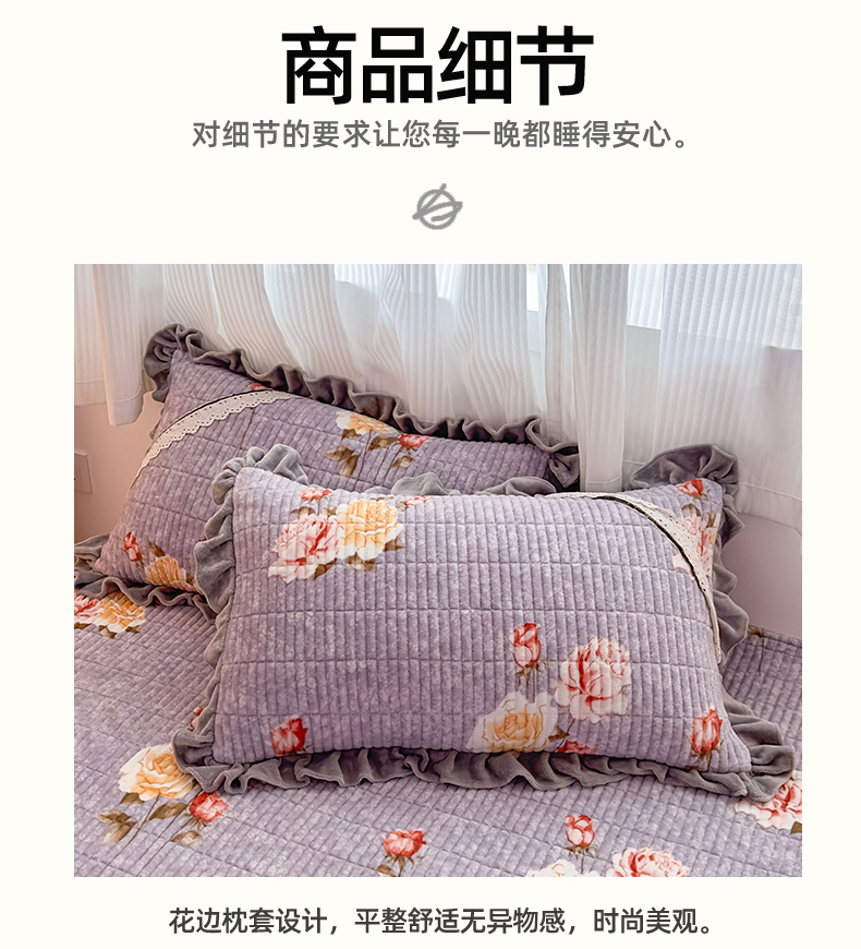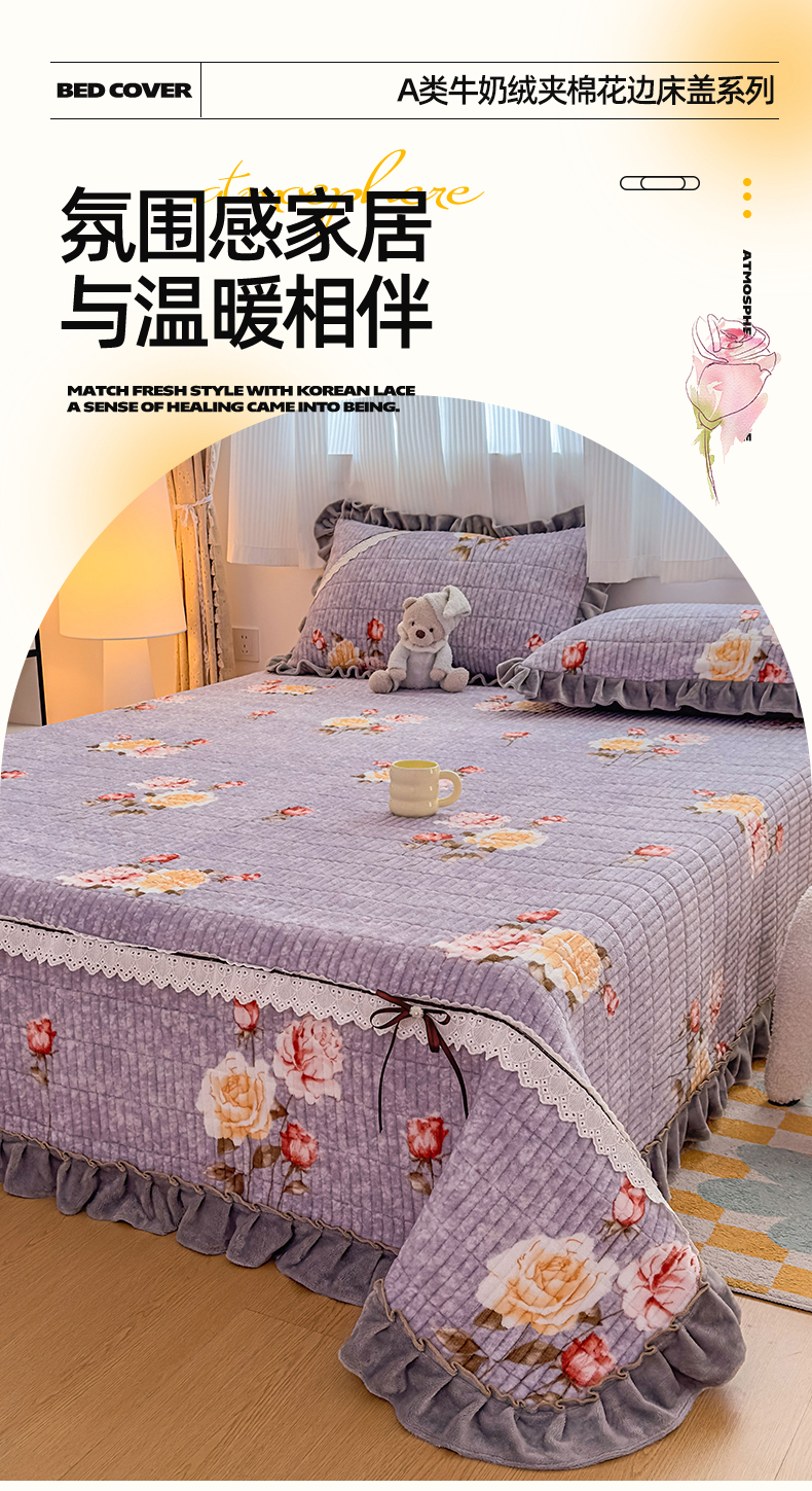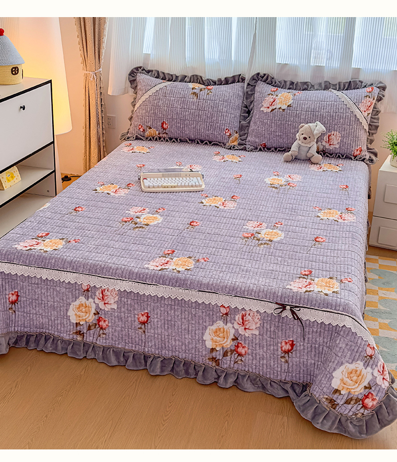 当前位置: 91家纺网 > 商品网购 > 床品套件 > 三件套 > 恒爱家纺 2025新款牛奶绒夹棉花边床盖系列三件套 争奇斗艳-紫