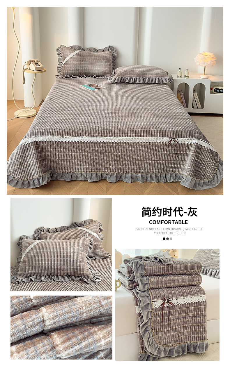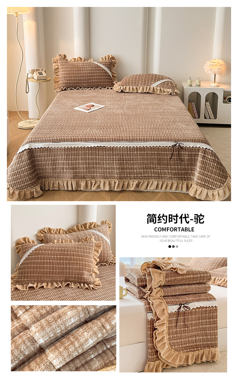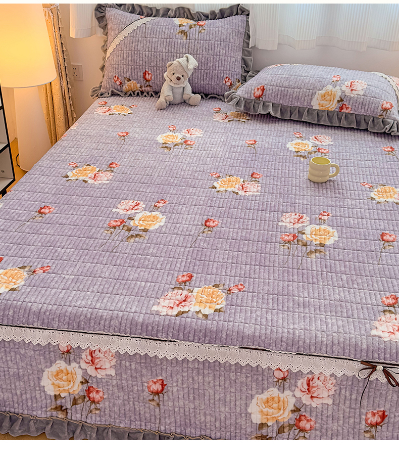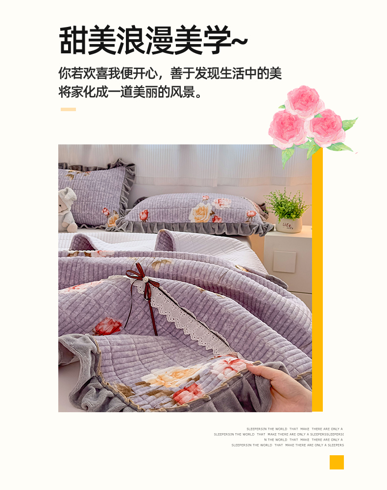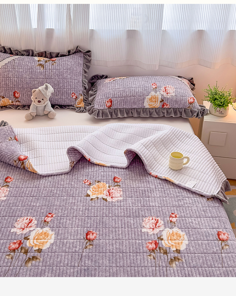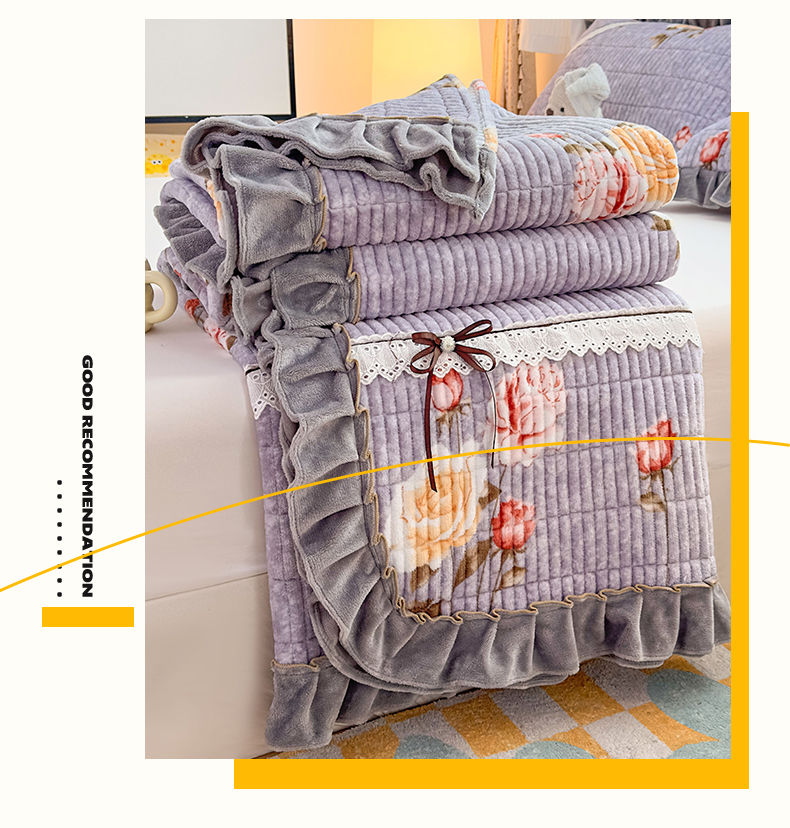 当前位置: 91家纺网 > 商品网购 > 床品套件 > 三件套 > 恒爱家纺 2025新款牛奶绒夹棉花边床盖系列三件套 争奇斗艳-紫