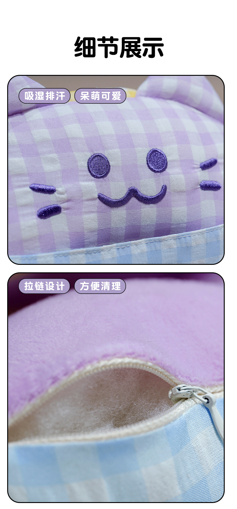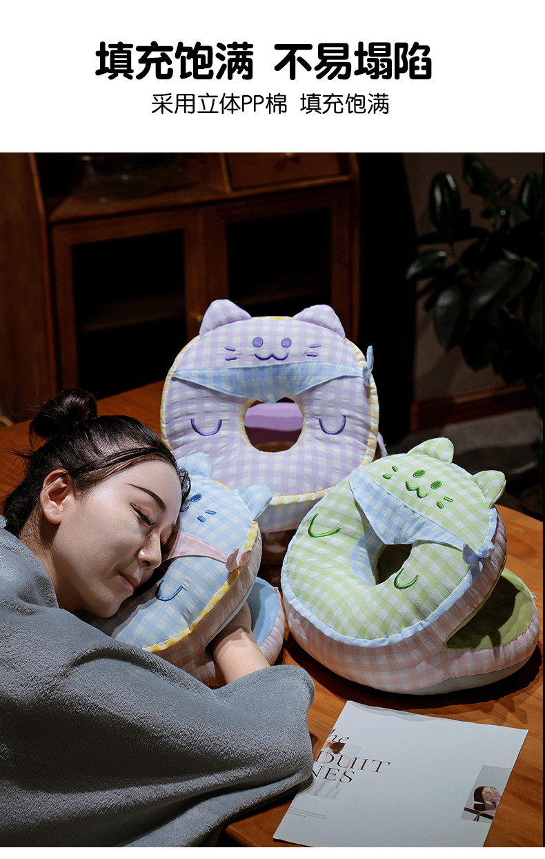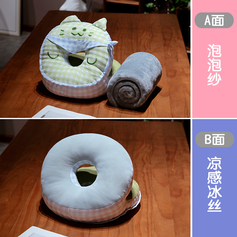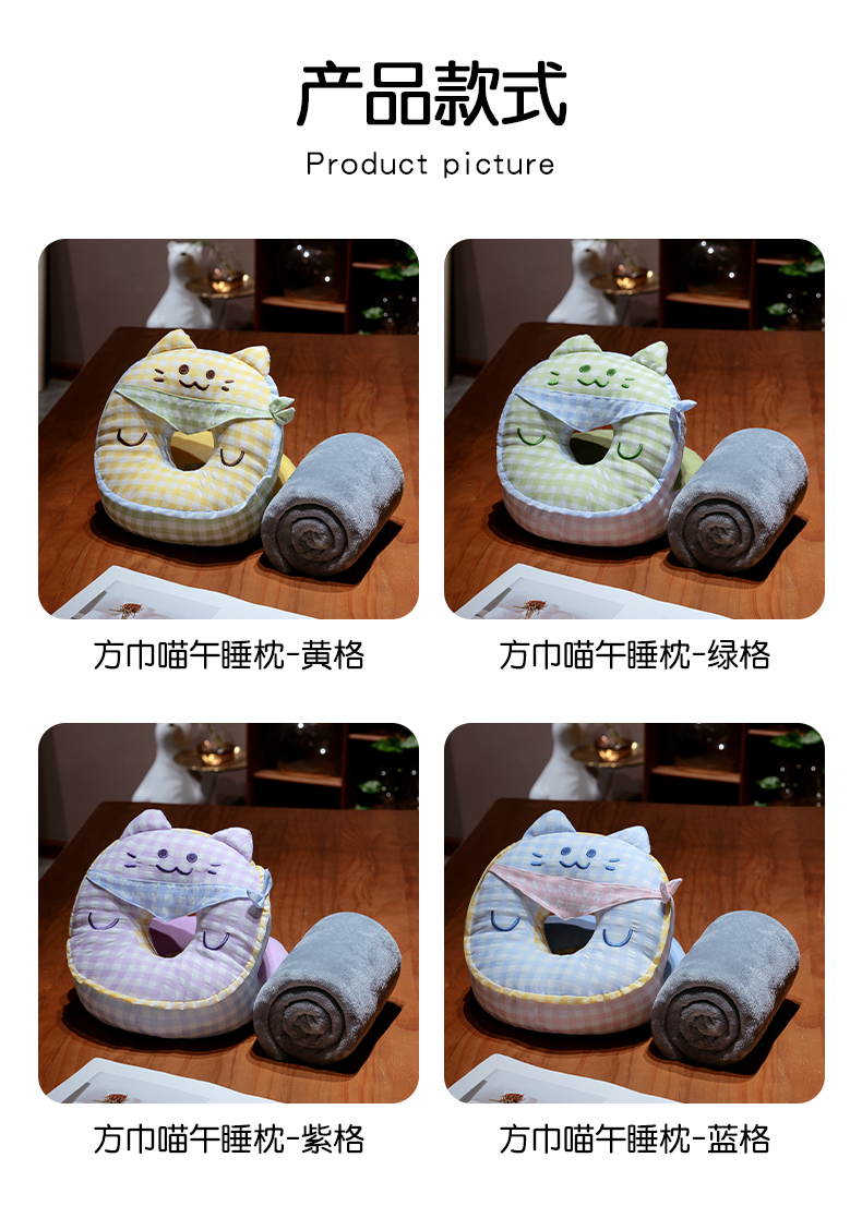 商品名称:仟亿莱 2025新款泡泡纱方巾格子喵双面午睡枕 枕头枕芯 双面方巾绿猫