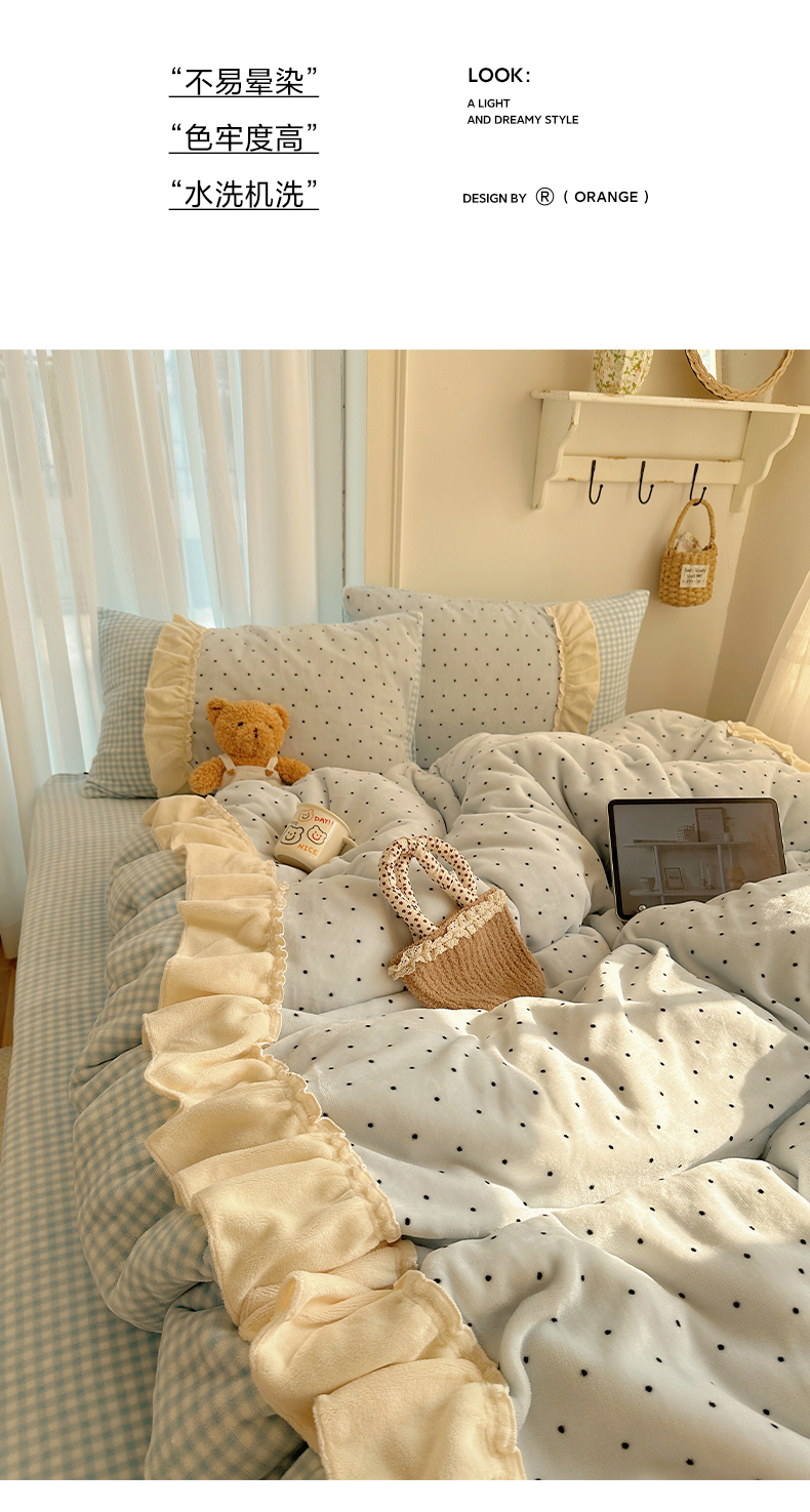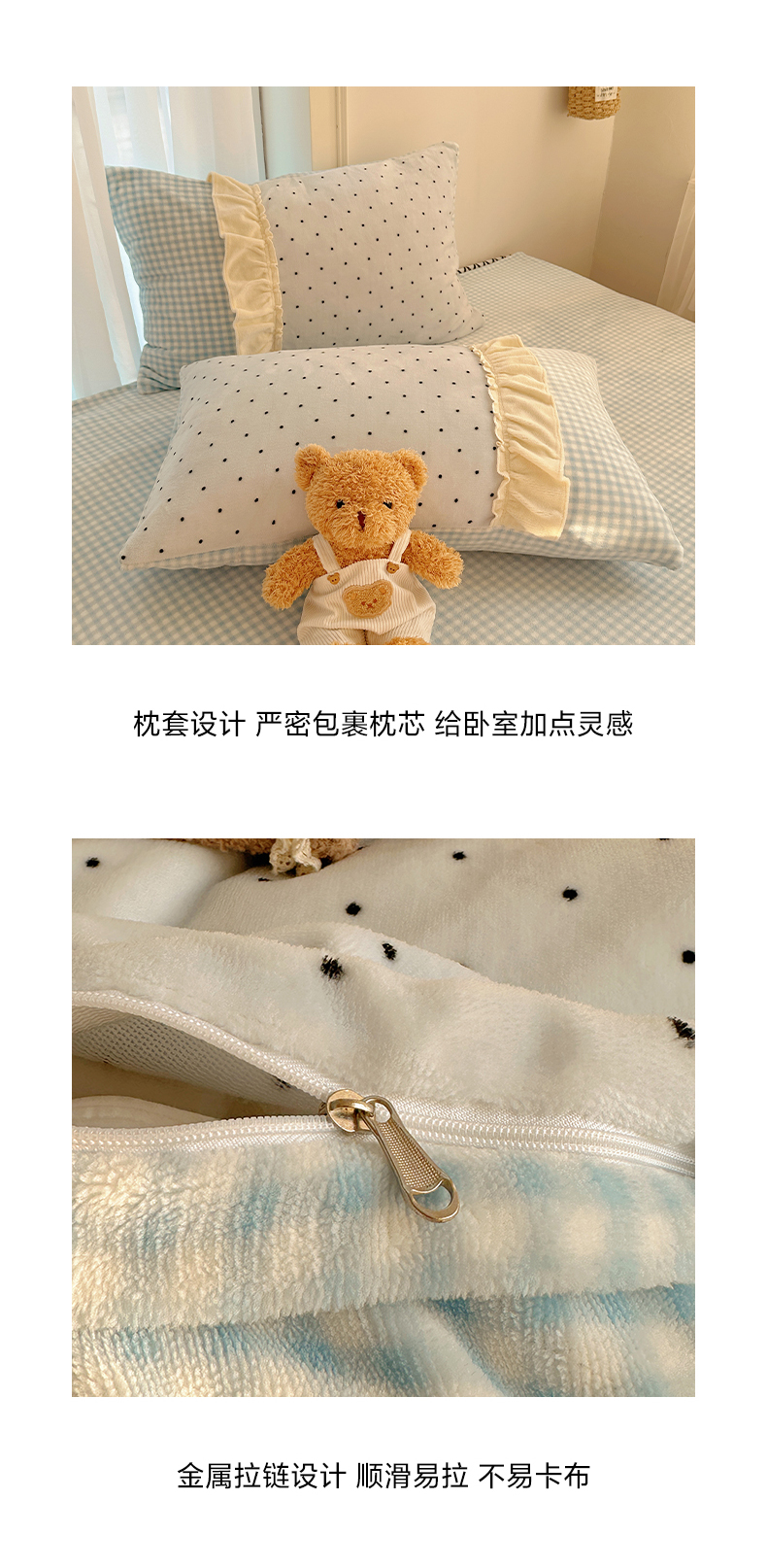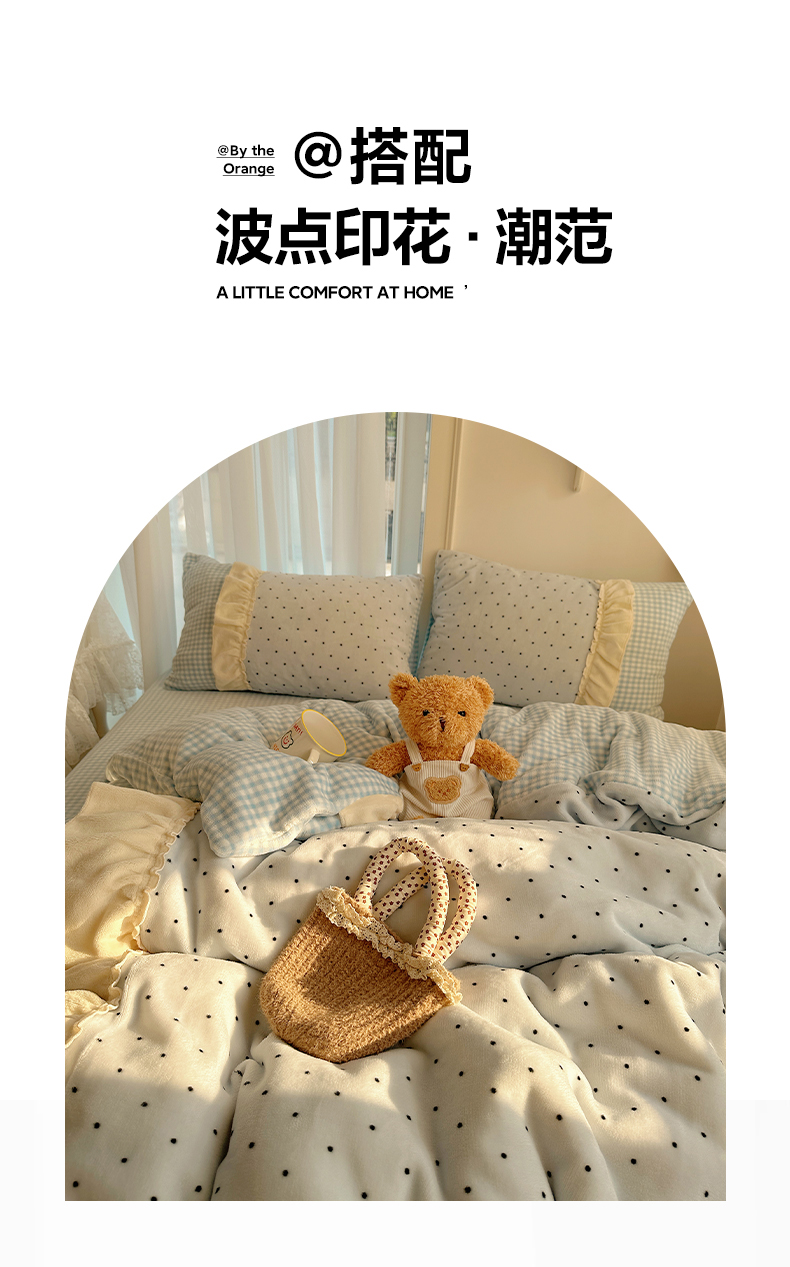 商品名称:瑞莱 2025年秋冬新款波点牛奶绒四件套(拼接款) 可可-蓝(拼接款)