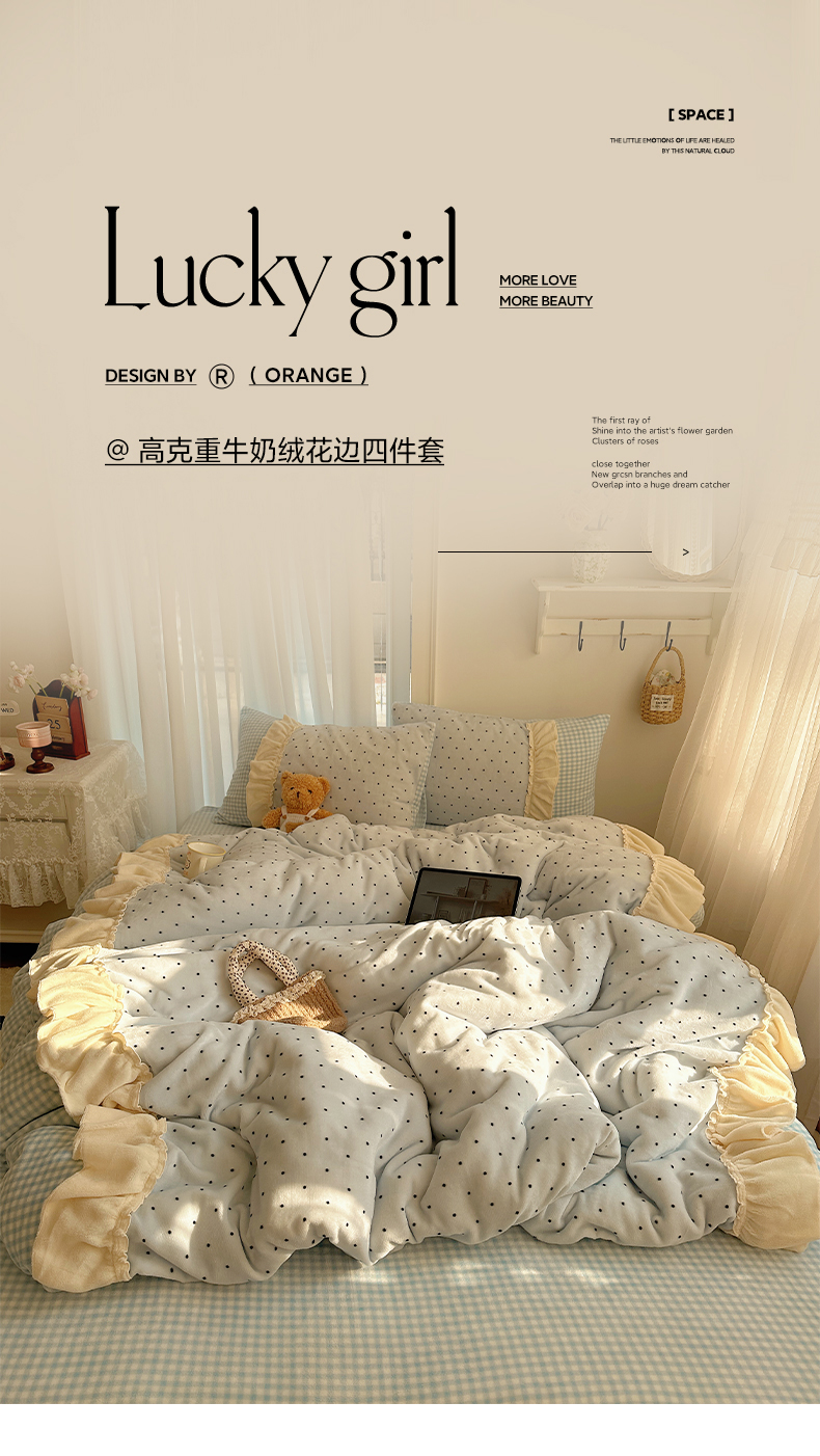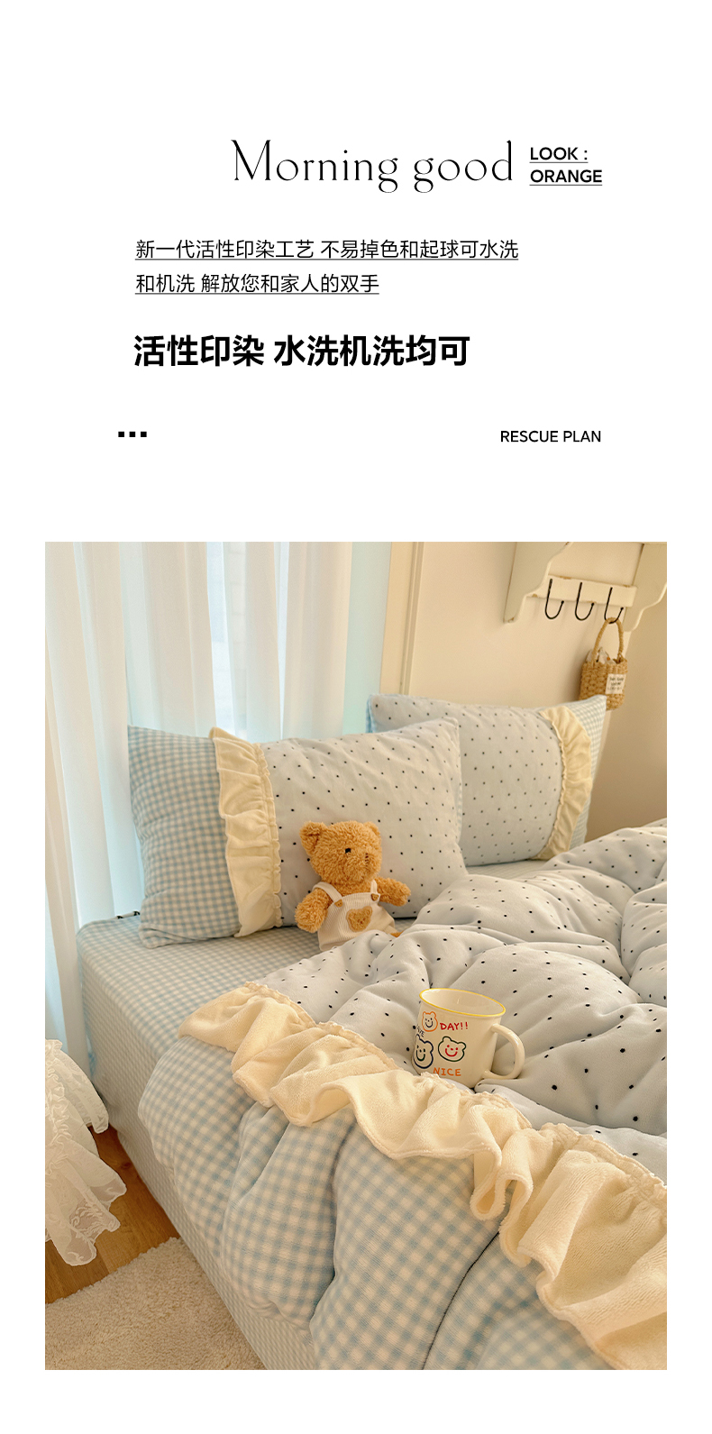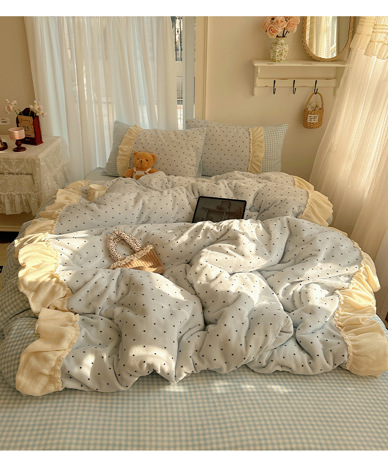 瑞莱 2025年秋冬新款波点牛奶绒四件套(拼接款) 可可-蓝(拼接款)