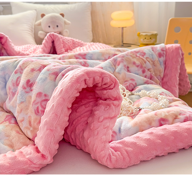 (总)默忆 2025新款雕花牛奶绒夹棉床盖款四件套-森野,森野-幻紫,森野-暖白,森野-浅灰,森野-柔粉