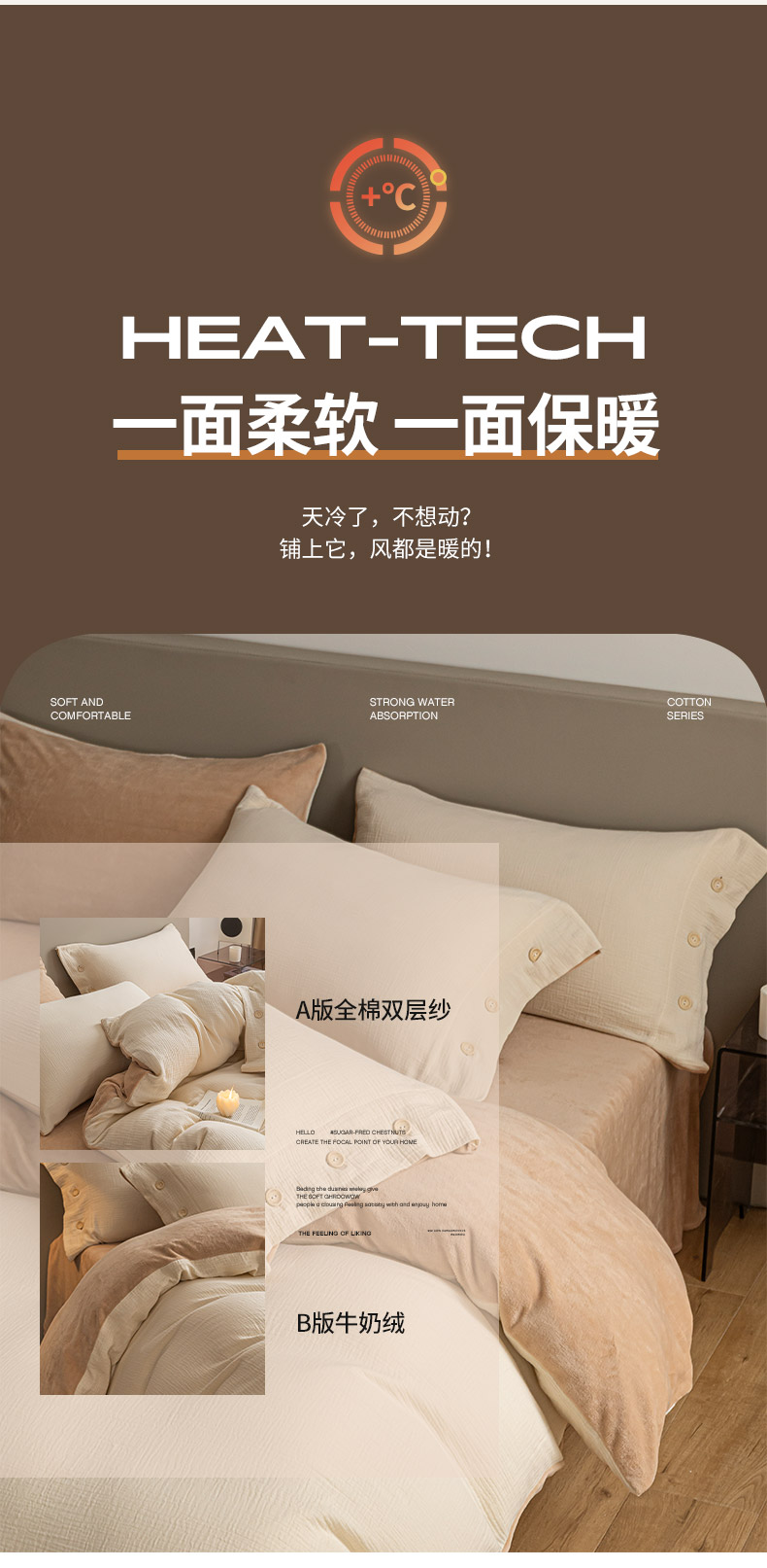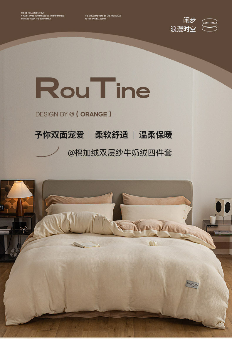 (总)吾诺家居 吾诺 棉加绒系列 全棉泡泡双层纱加牛奶绒四件套 棉拼绒四件套 棉加绒四件套全棉A类,奶昔白-米金,枫叶桔-唐茶,复古蓝-宝蓝,果绿-橄榄绿,梦幻紫-浅紫,泡沫灰-橡木棕,深卡其-可可棕,樱花粉-浅灰