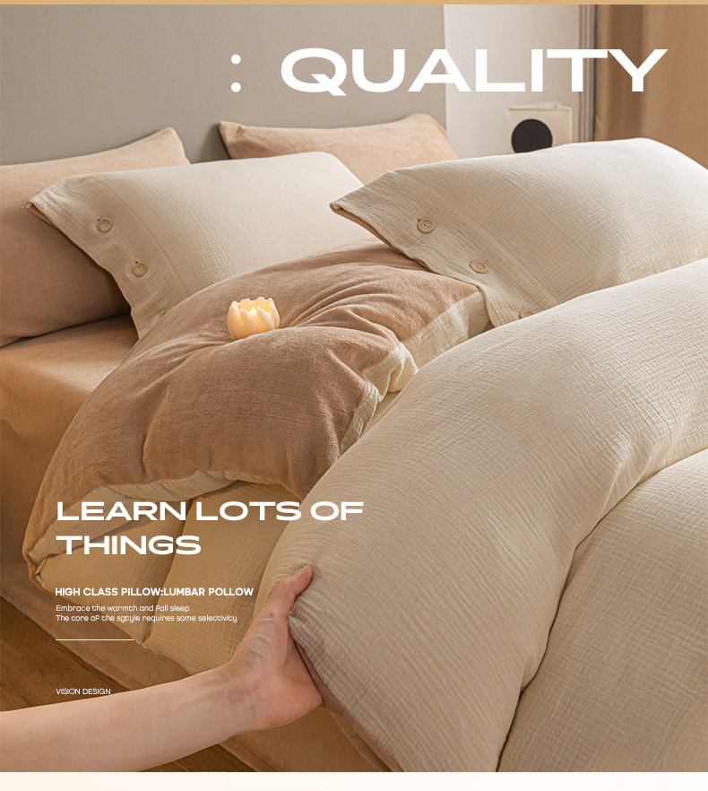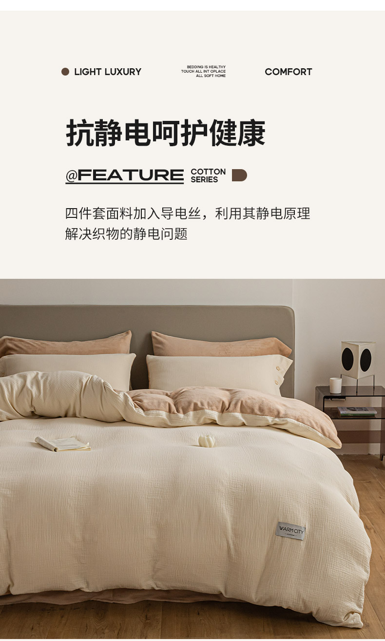 (总)吾诺家居 吾诺 棉加绒系列 全棉泡泡双层纱加牛奶绒四件套 棉拼绒四件套 棉加绒四件套全棉A类