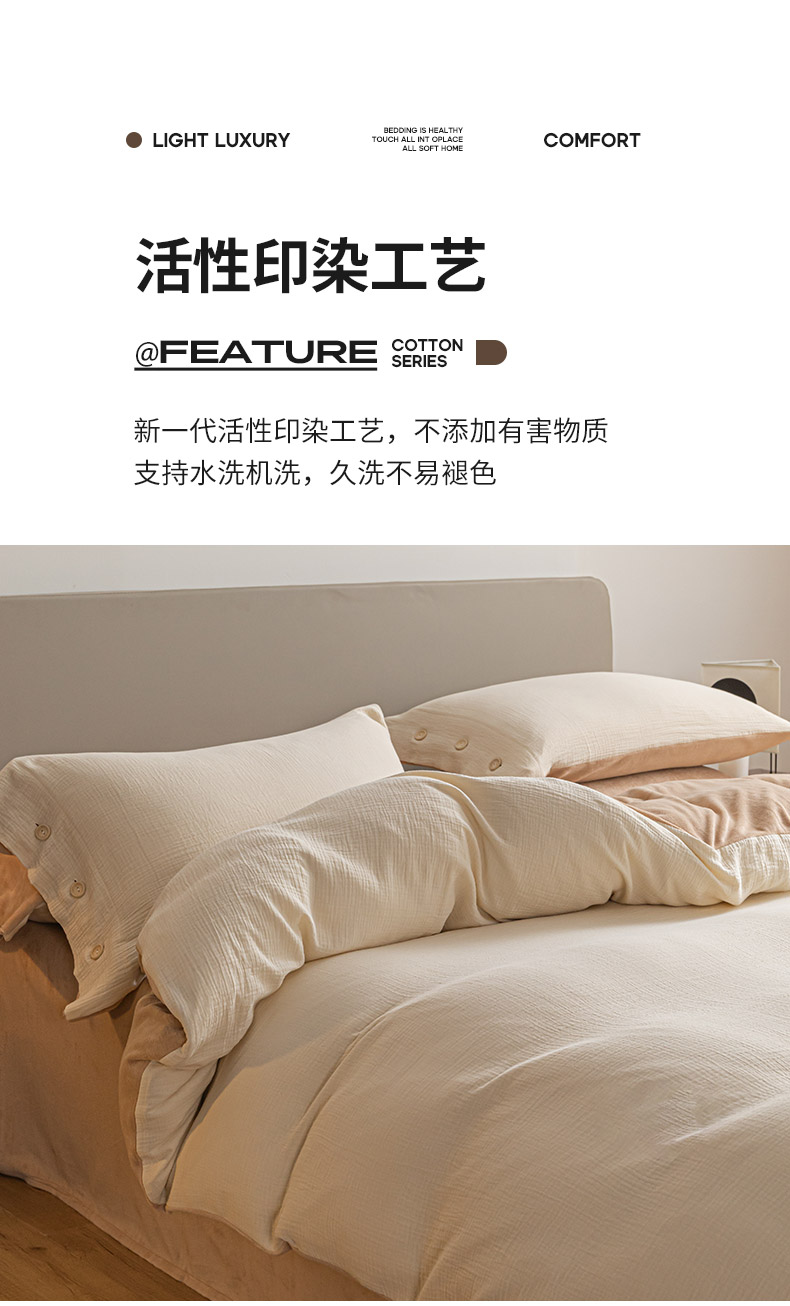 (总)吾诺 水洗原麻拼牛奶绒四件套 纽扣款四件套-原麻系列,晓梦,叠影,羽叶,叶藤,绍华,芳菲,花梦,暗香