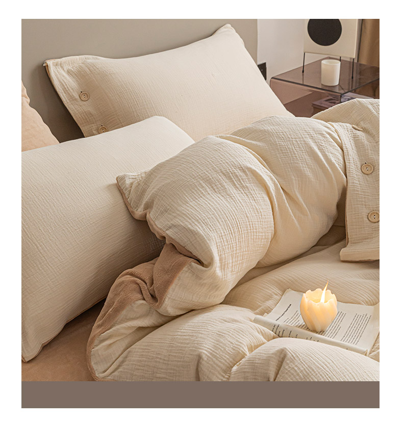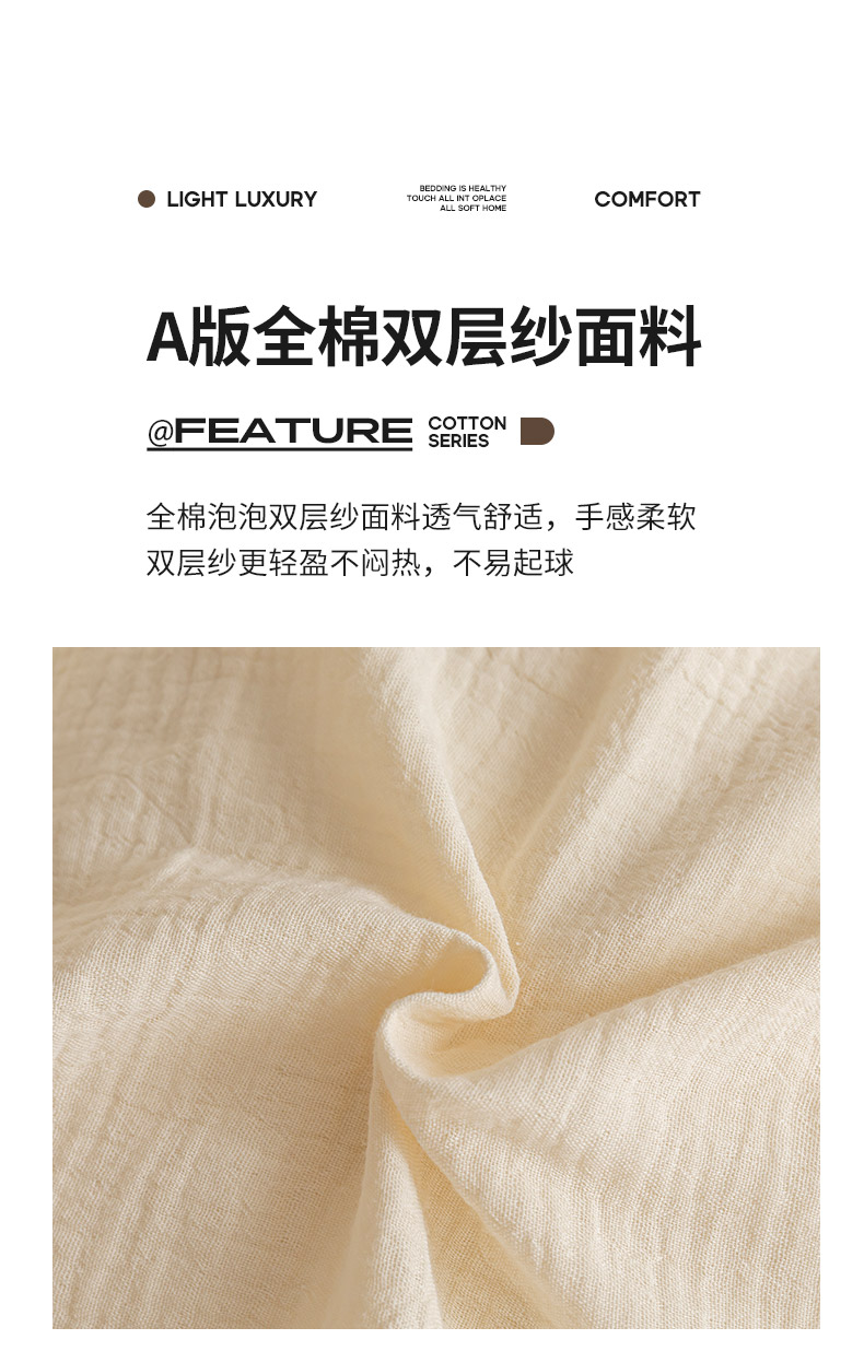 商品名称:(总)吾诺家居 吾诺 棉加绒系列 全棉泡泡双层纱加牛奶绒四件套 棉拼绒四件套 棉加绒四件套全棉A类