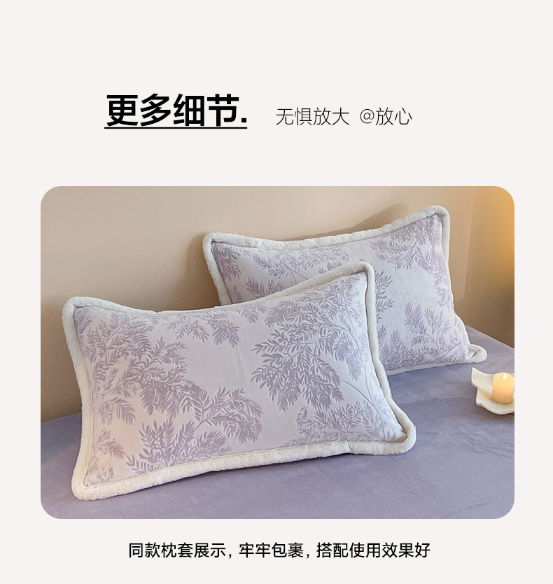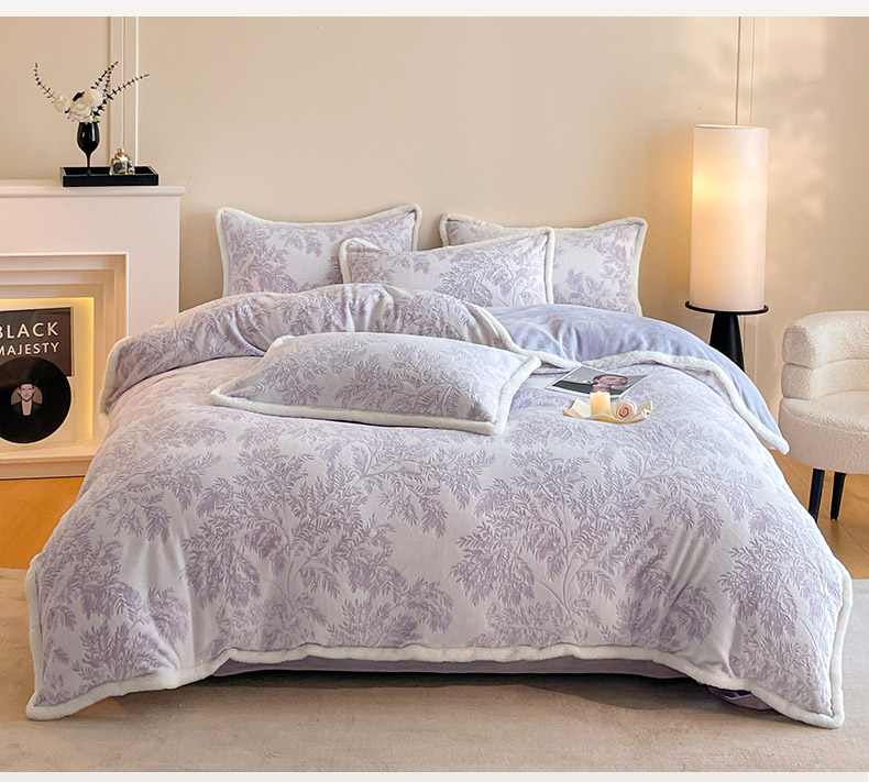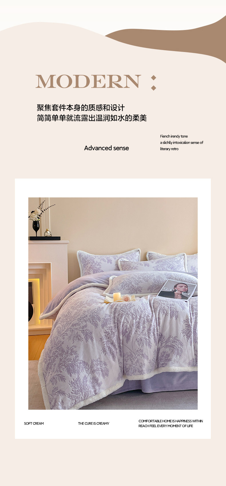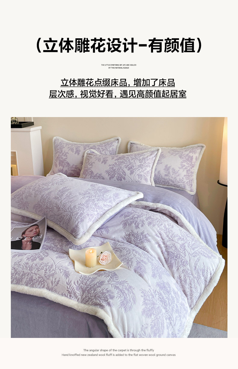吾诺家居 230克兔毛边雕花绒四件套-秋意系列 紫叶