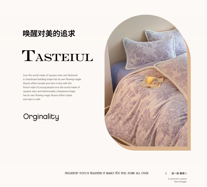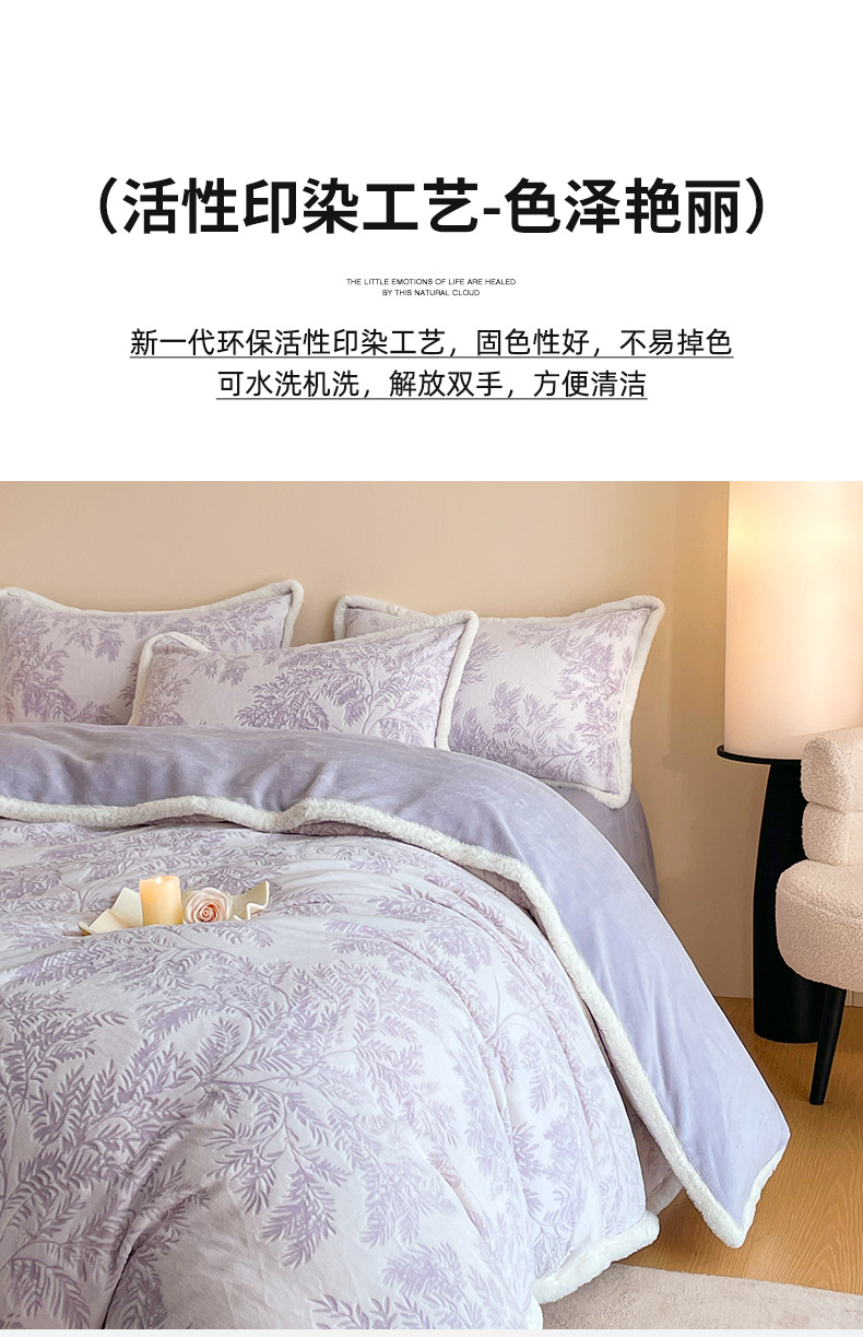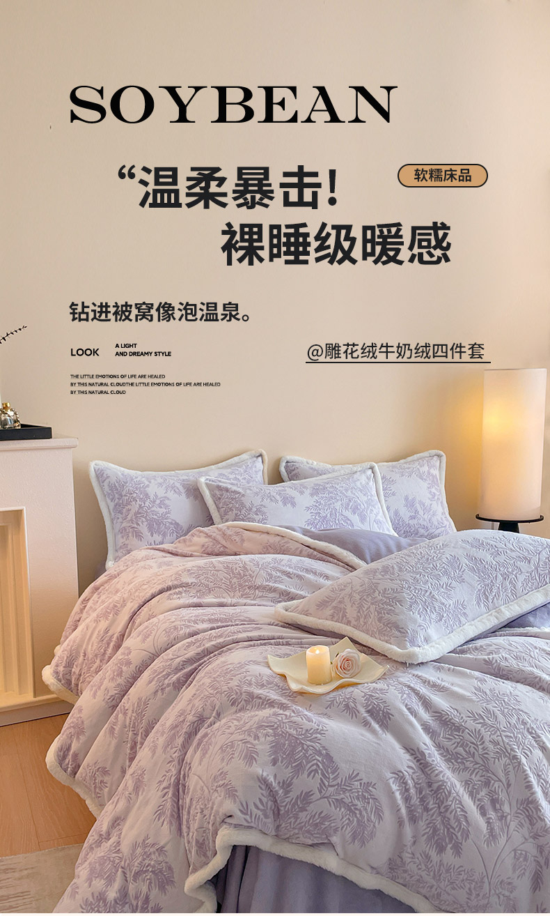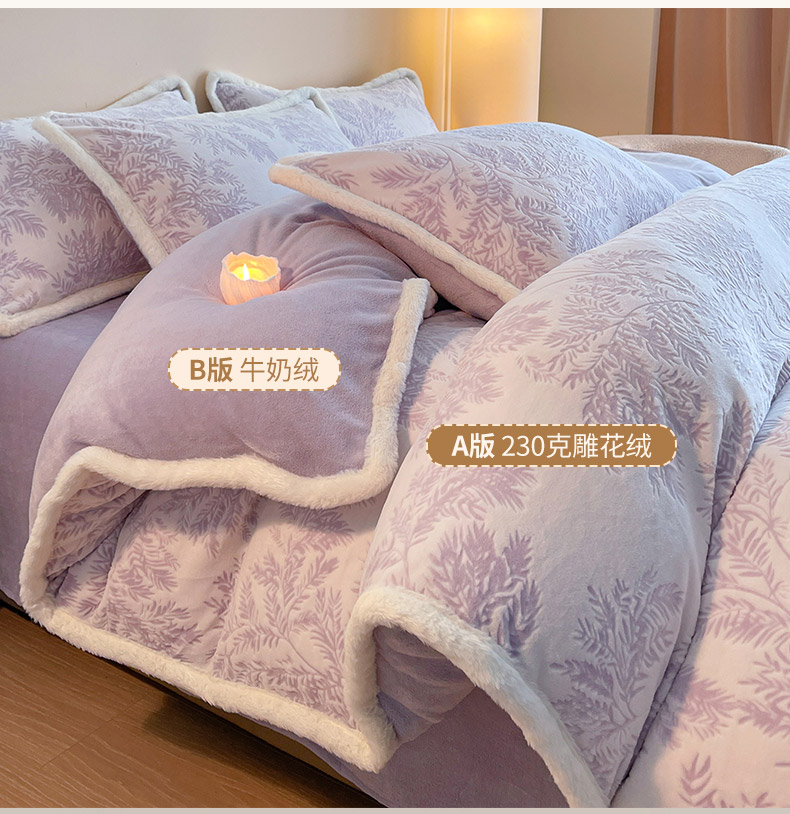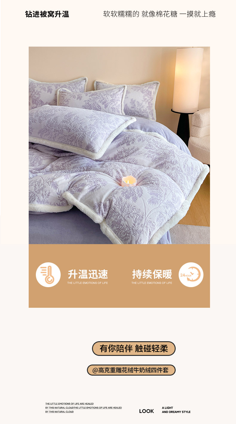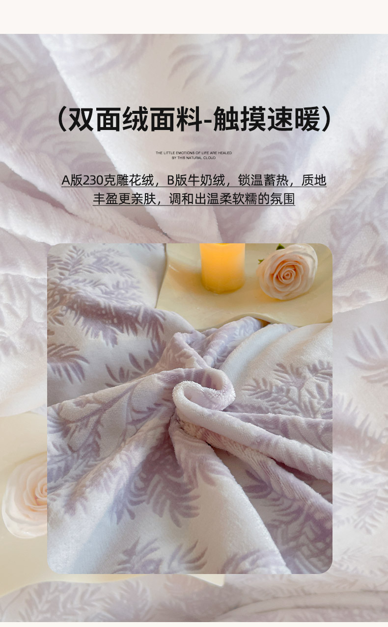 (总)吾诺 兔毛边230克雕花牛奶绒四件套 - 秋意系列,朝花,紫叶,花海,轻羽,飞花,秋意,冬梅,华美,春野