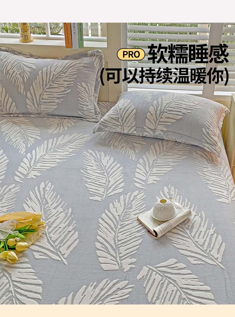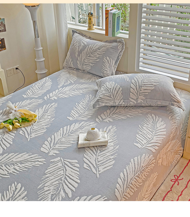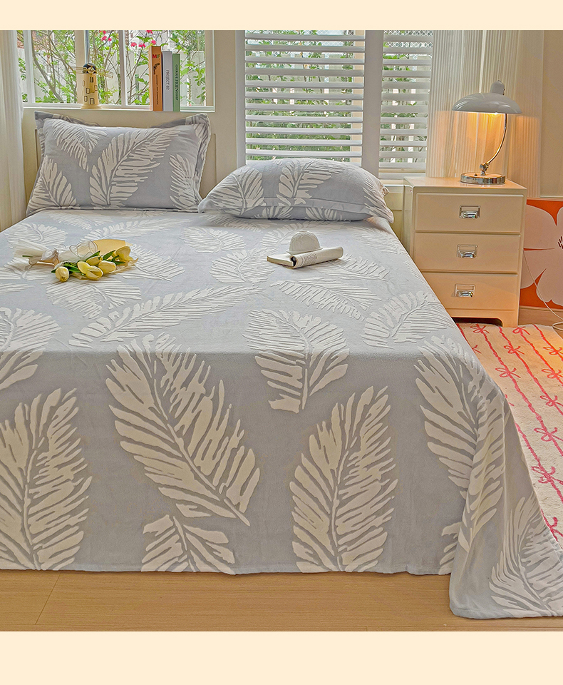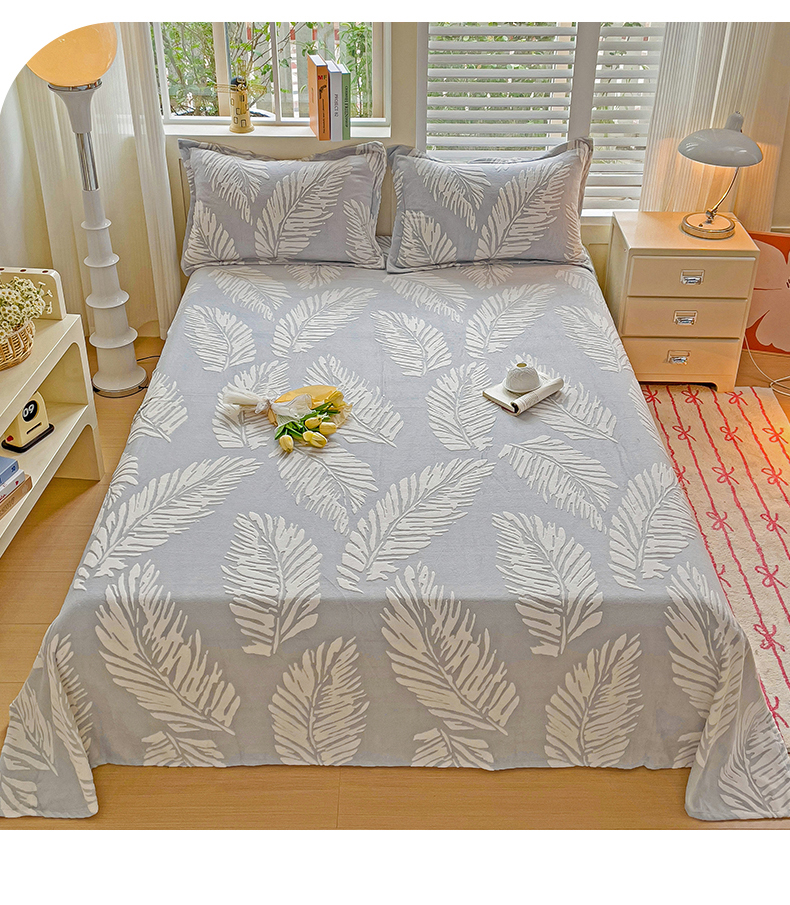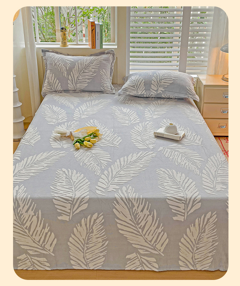 名兮-2025新款秋冬加厚立体高克重浮雕绒床单款 羽毛-灰