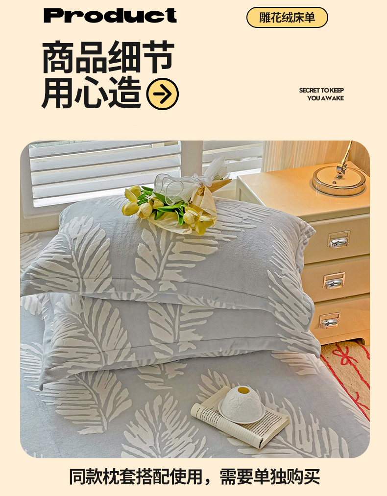 (总)名兮家居 2025新款高克重加厚雕花绒枕套,千叶-绿,朵美-粉,朵美-蓝,朵美-绿,千叶-粉,千叶-咖,羽毛-灰,羽毛-绿