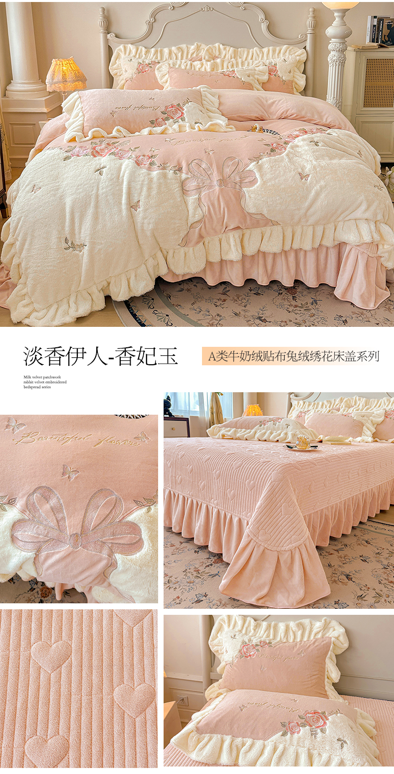 (总)宜凡家纺 2025新款兔绒提花牛奶绒夹棉床盖四件套,爱心 粉紫,爱心 少女粉,爱心 驼色,蝶舞 大红,蝶舞 米色,蝶舞 浅紫,蝶舞 玉色,简爱 苍青,简爱 豆沙紫,简爱 玉色,樱桃 苍青,樱桃 豆沙紫,樱桃 奶油白