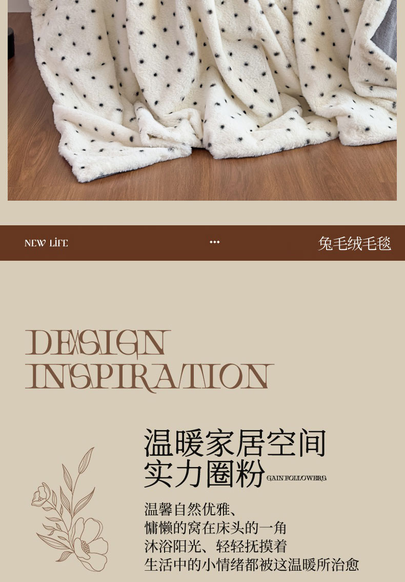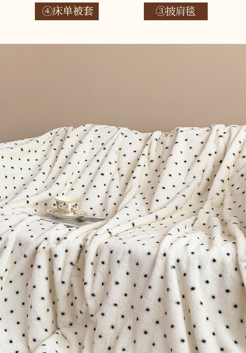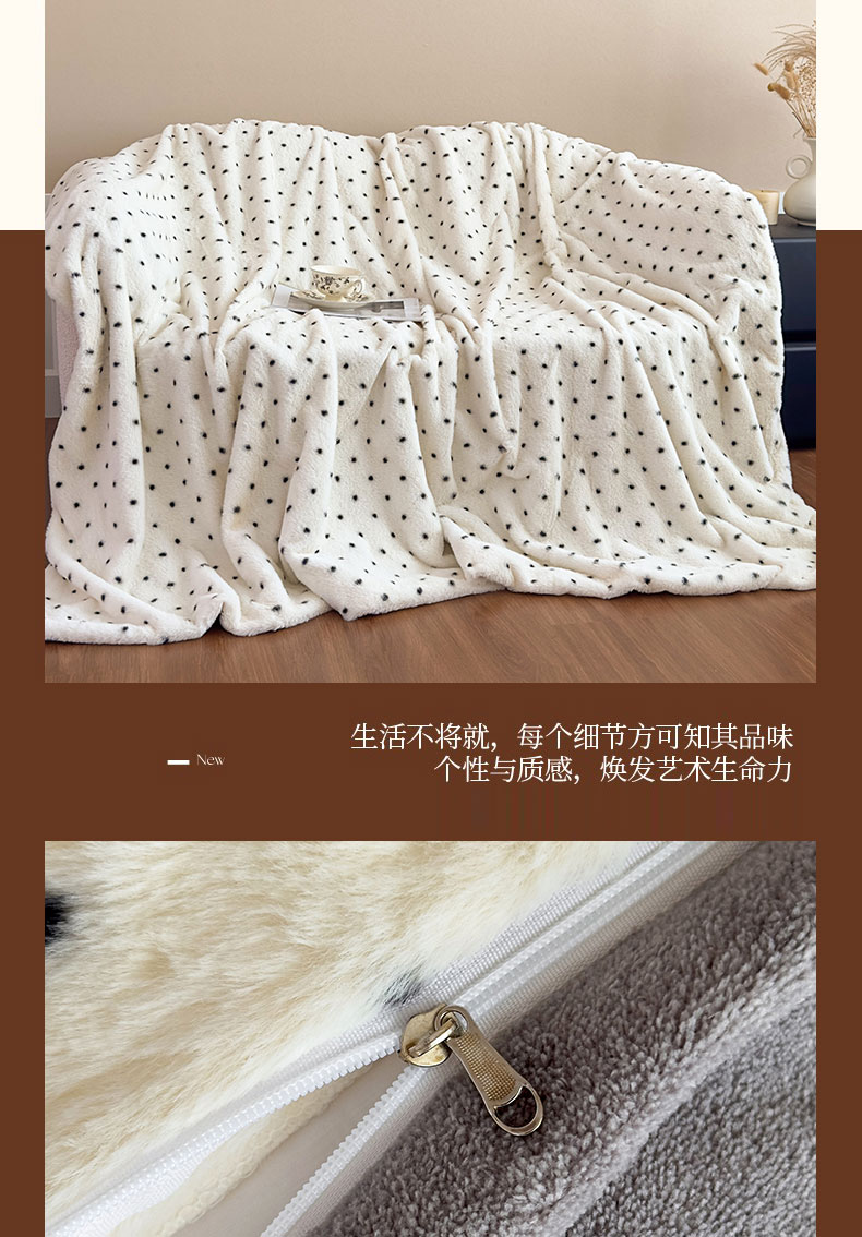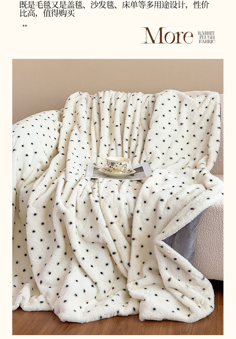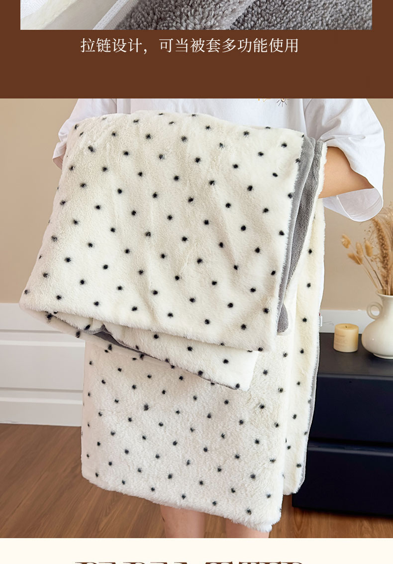 商品名称:璐维斯 2025新款A类兔毛绒双层多功能被套毯带拉链 卡通花卉牛奶绒毛毯秋冬保暖毯子盖毯 浪漫波点-白