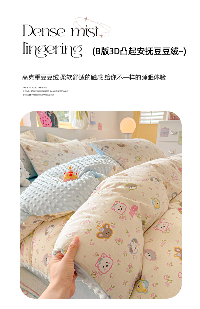 当前位置: 91家纺网 > 商品网购 > 床品套件 > 四件套 > 其它四件套 > 简宜家居(朝初家纺) 2025新款全棉安抚豆豆绒卡通印花小清新四件套 甜心萌犬