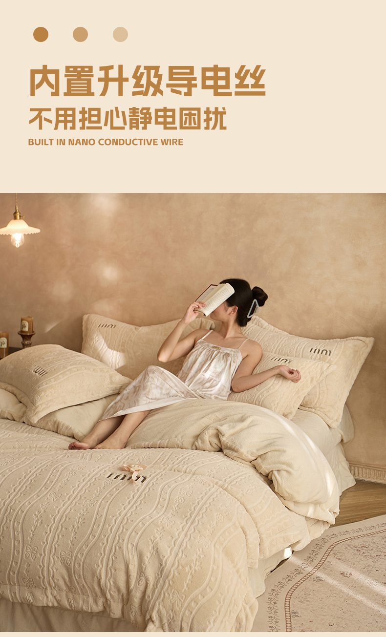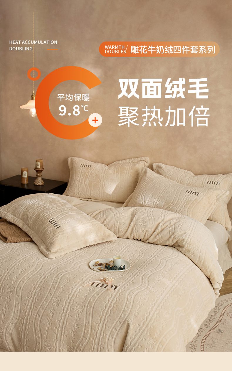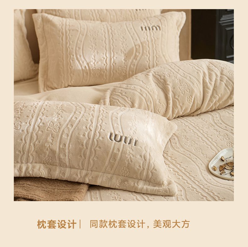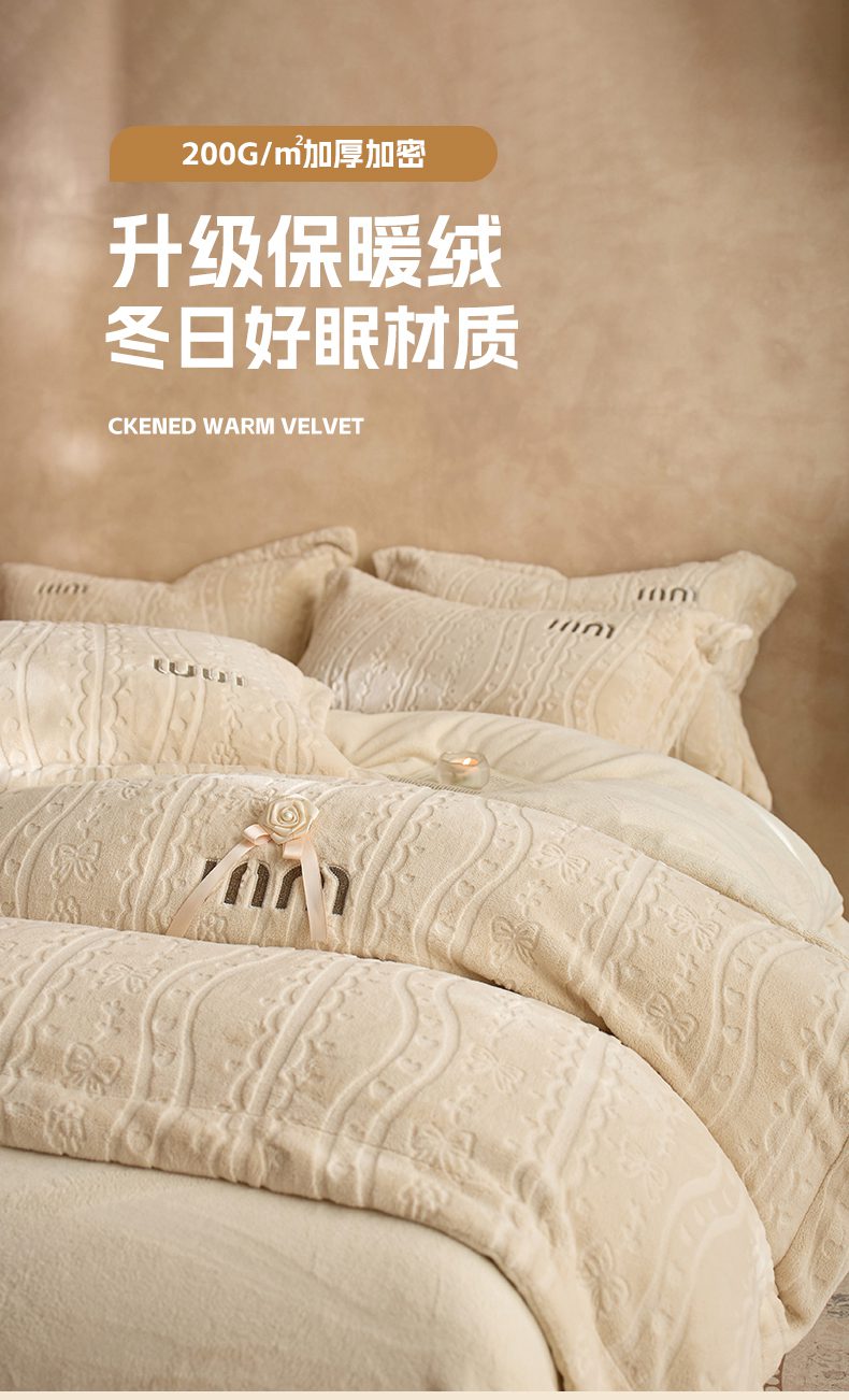 卡初家居(原微来) 2025新款秋冬亲肤雕花绒绣花四件套-云柔系列(提供买家秀) 云柔-香槟米