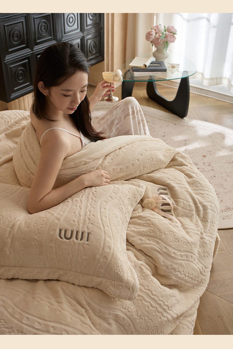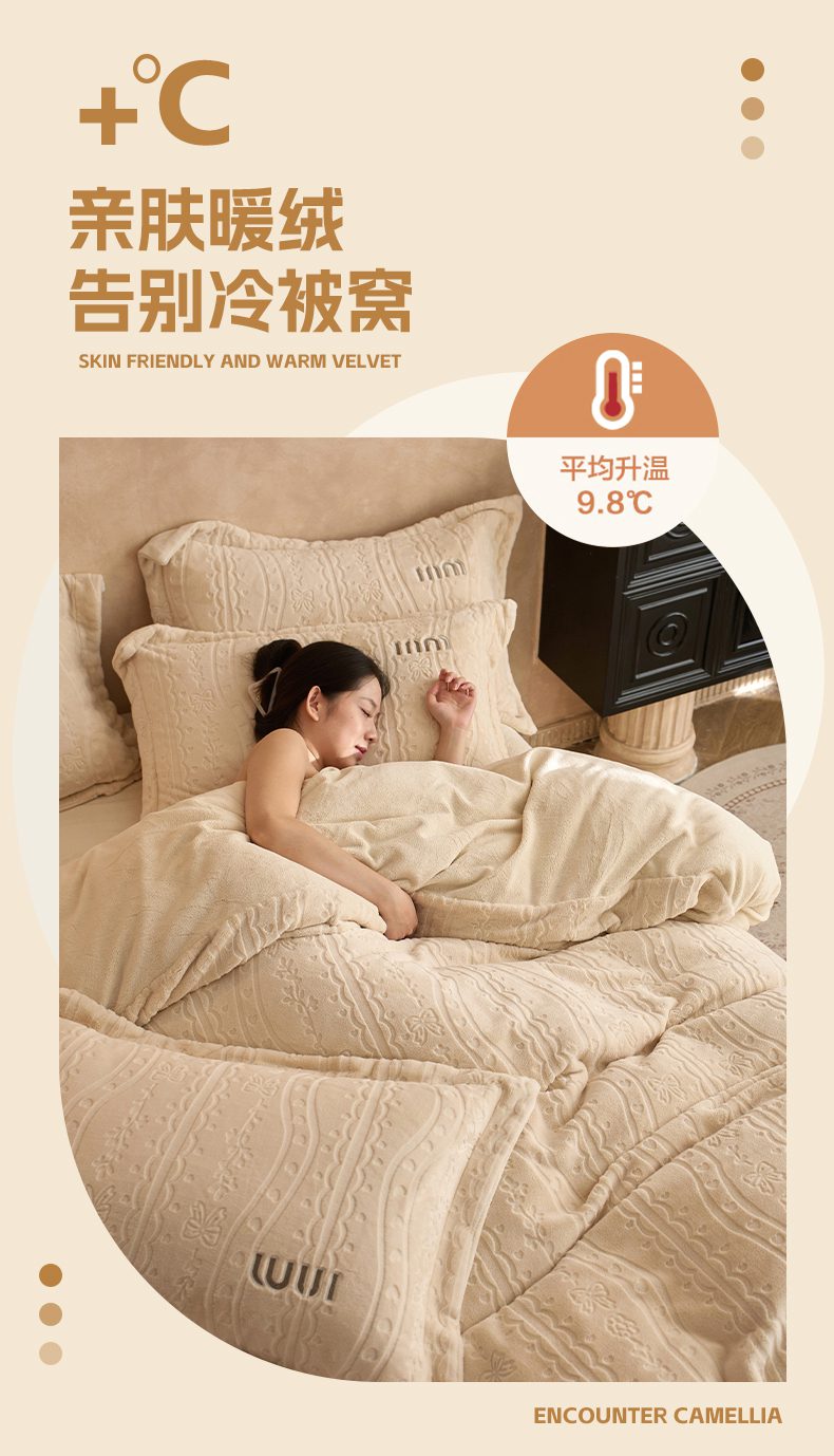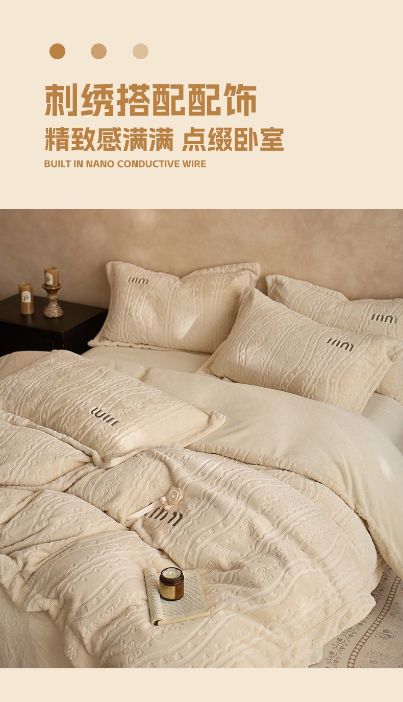 卡初家居(原微来) 2025新款秋冬亲肤雕花绒绣花四件套-云柔系列(提供买家秀) 云柔-香槟米