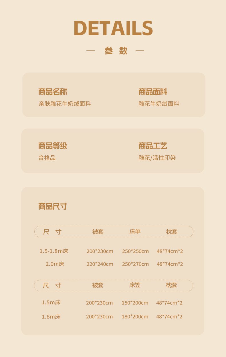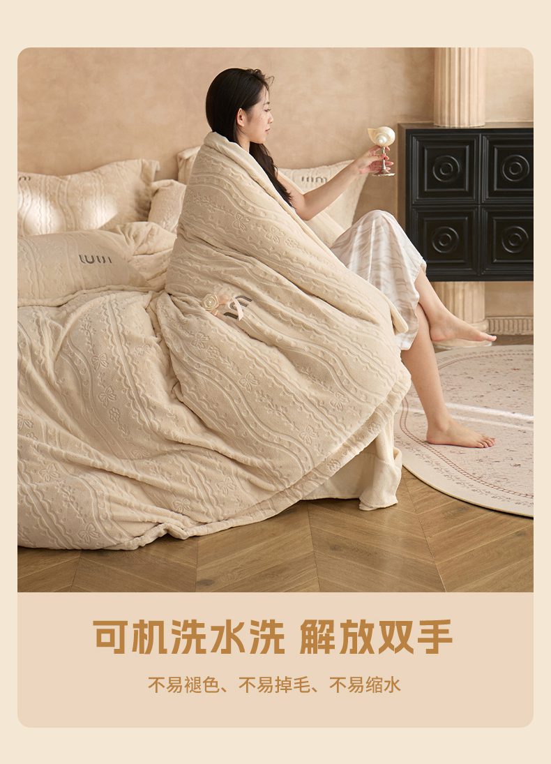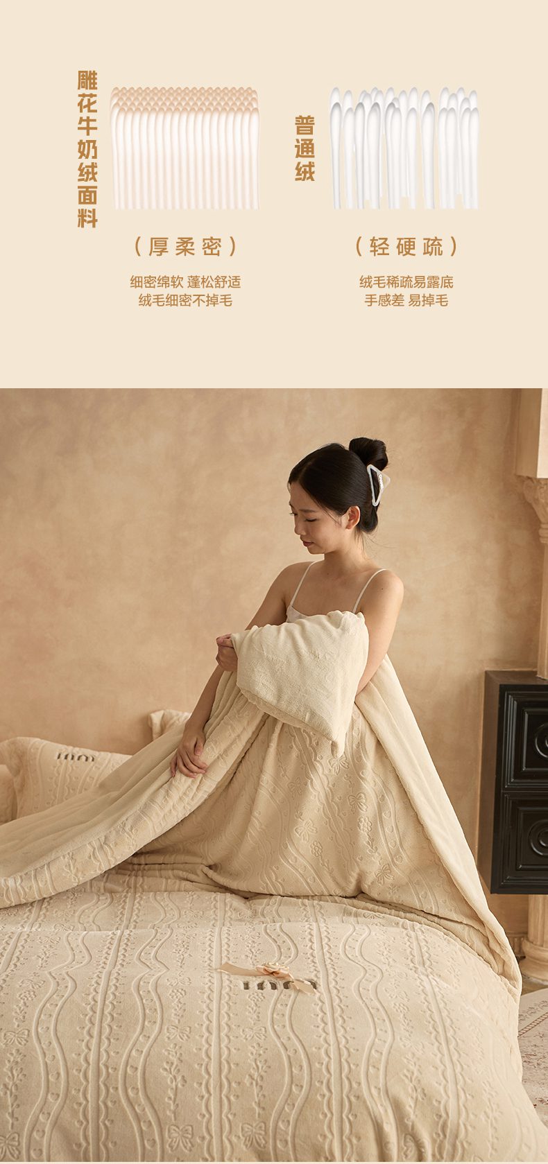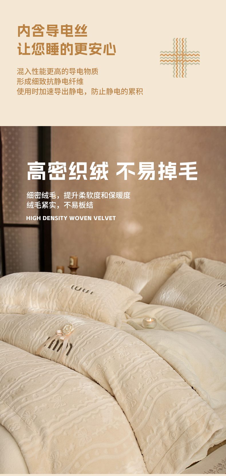 商品名称:卡初家居(原微来) 2025新款秋冬亲肤雕花绒绣花四件套-云柔系列(提供买家秀) 云柔-香槟米