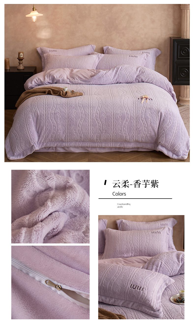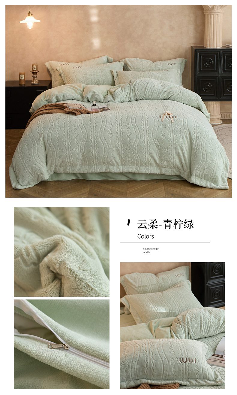 (总)卡初家居(原微来) 2025新款秋冬亲肤牛奶绒绣花四件套-多喜系列,多喜-豆沙,多喜-果绿,多喜-米黄,多喜-浅紫,多喜-桃粉,多喜-天蓝