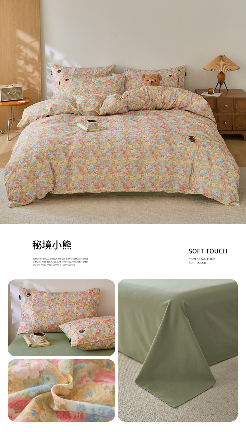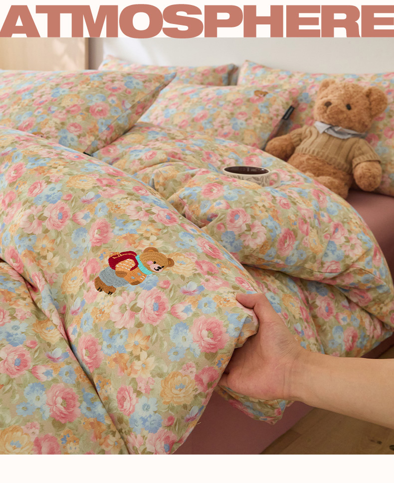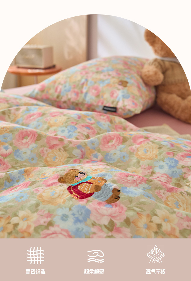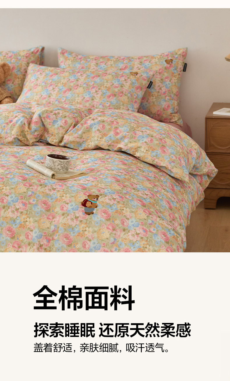 当前位置: 91家纺网 > 商品网购 > 床品套件 > 四件套 > 全棉普通四件套 > (总)蓝邻家纺 2025新款全棉磨毛刺绣四件套-小熊油画风系列