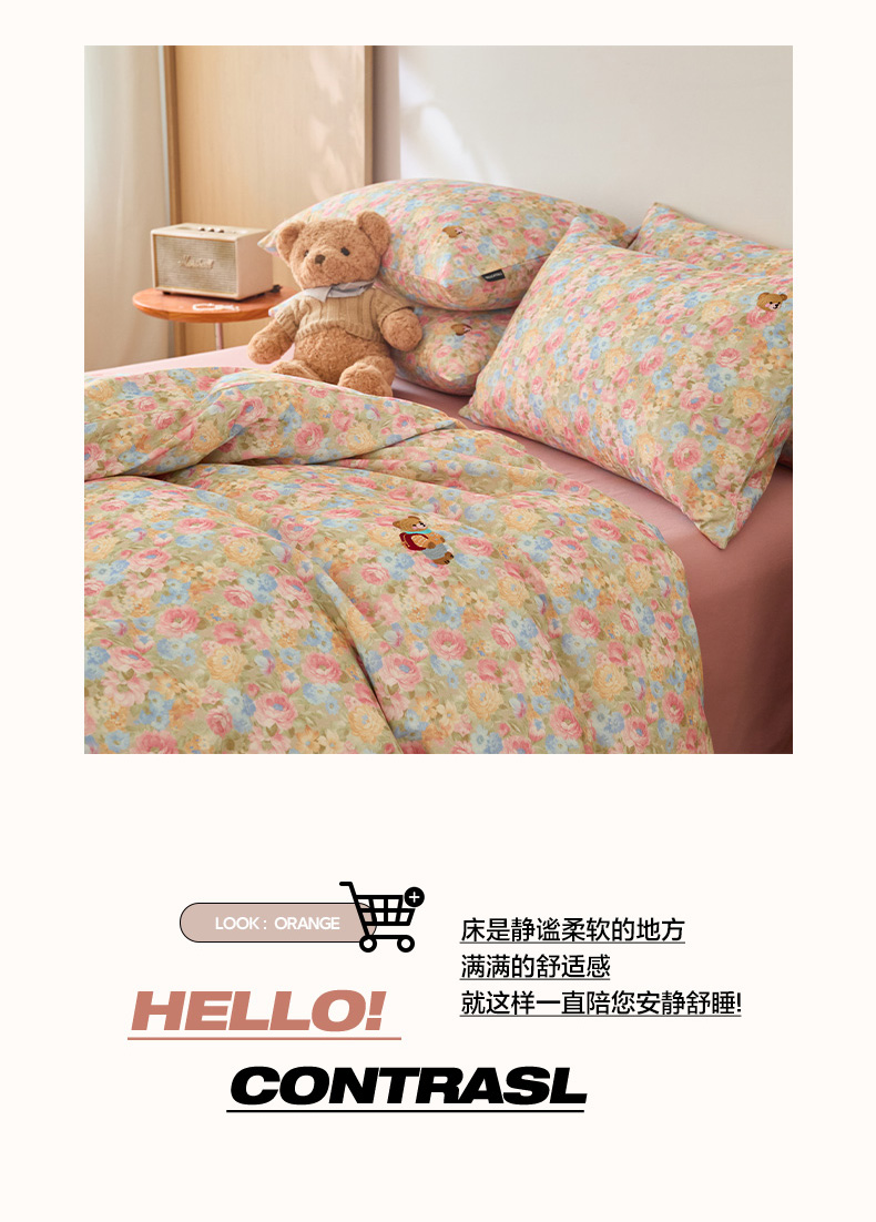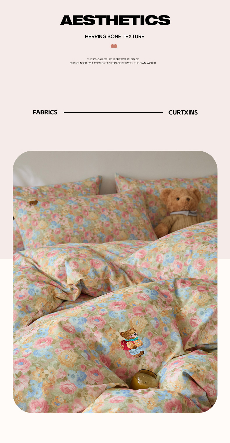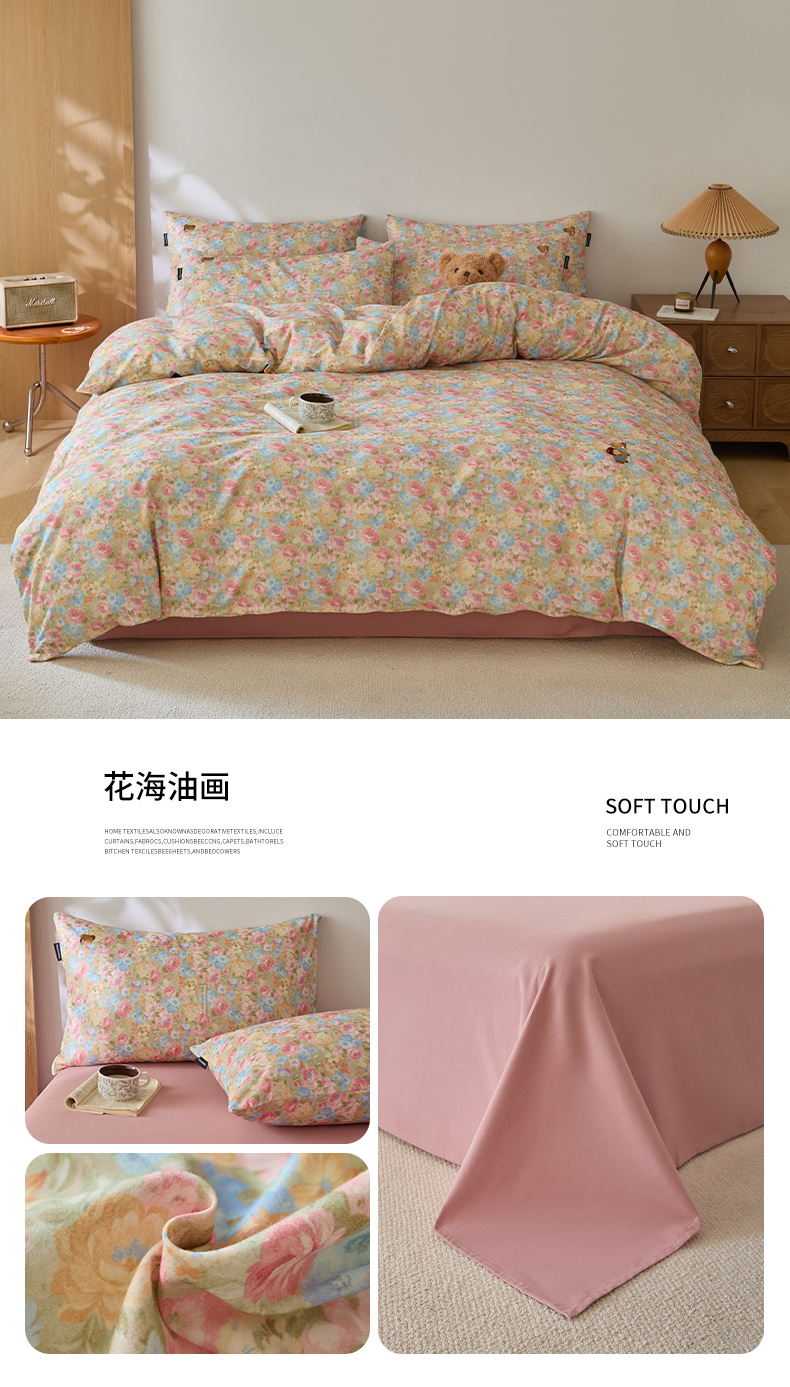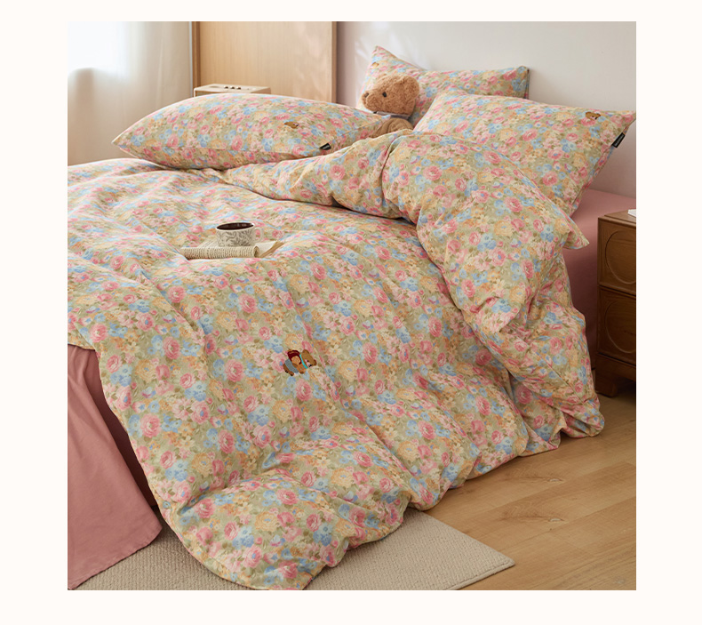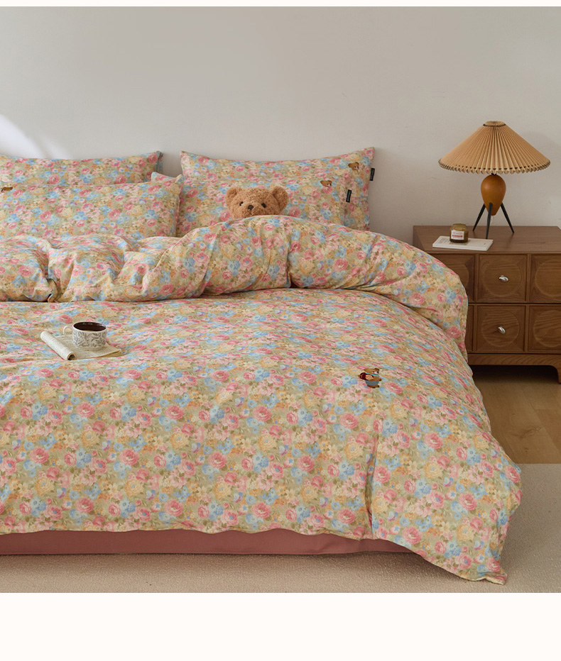 当前位置: 91家纺网 > 商品网购 > 床品套件 > 四件套 > 全棉普通四件套 > (总)蓝邻家纺 2025新款全棉磨毛刺绣四件套-小熊油画风系列