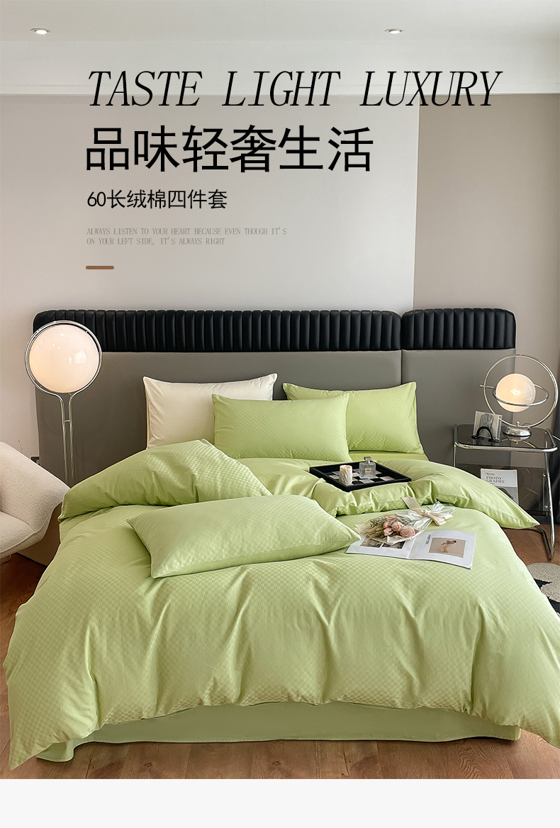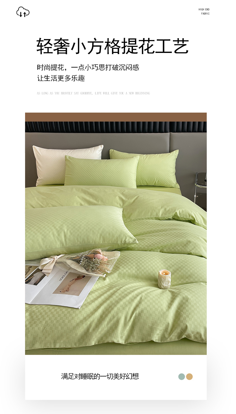 当前位置: 91家纺网 > 商品网购 > 床品套件 > 四件套 > 全棉普通四件套 > 琪格格纺织 2025新款60S长绒棉纯棉小方格四件套单被套 60长绒棉-纯果绿
