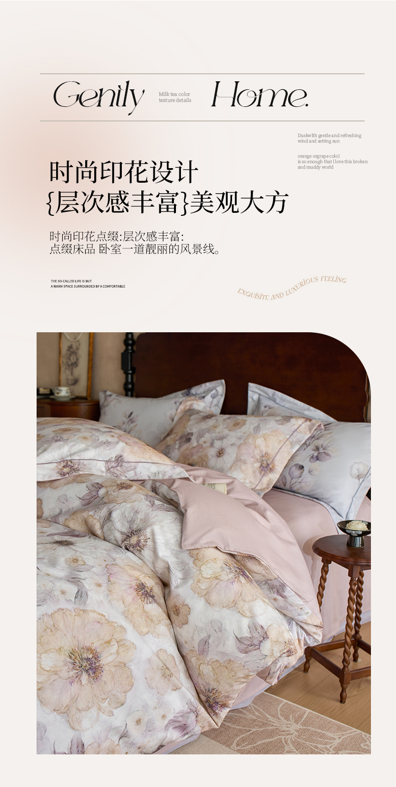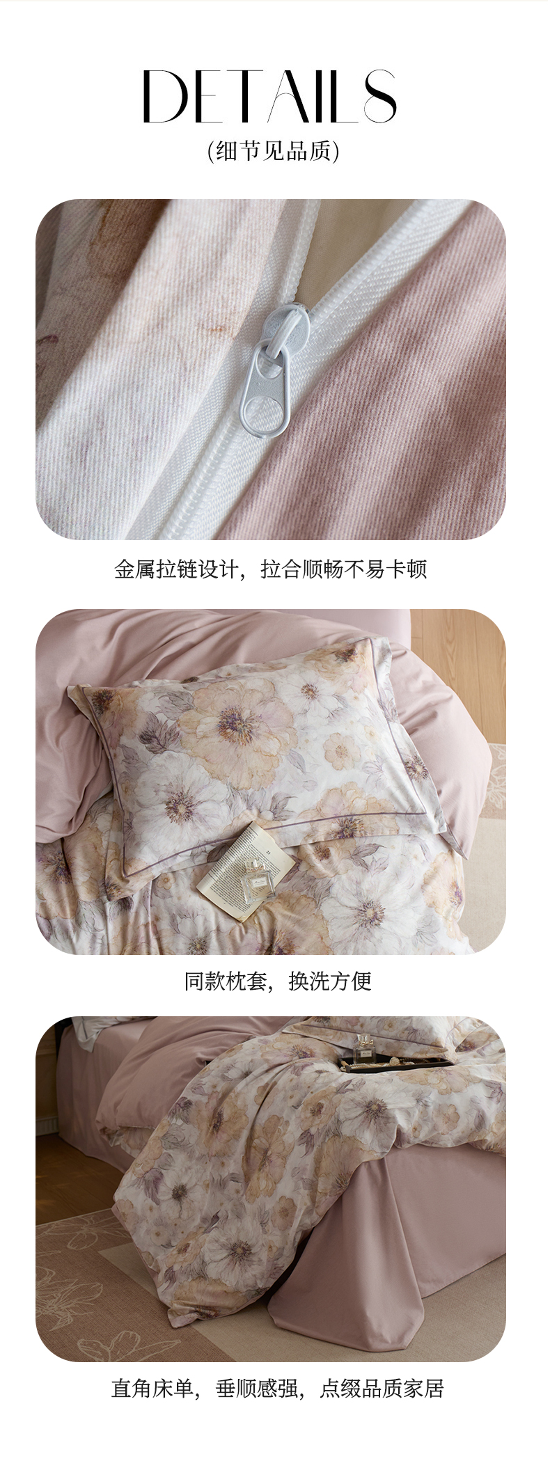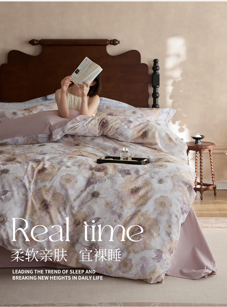 商品名称:时年家纺 2025新款全棉超柔磨毛印花系列四件套 豆蔻年华