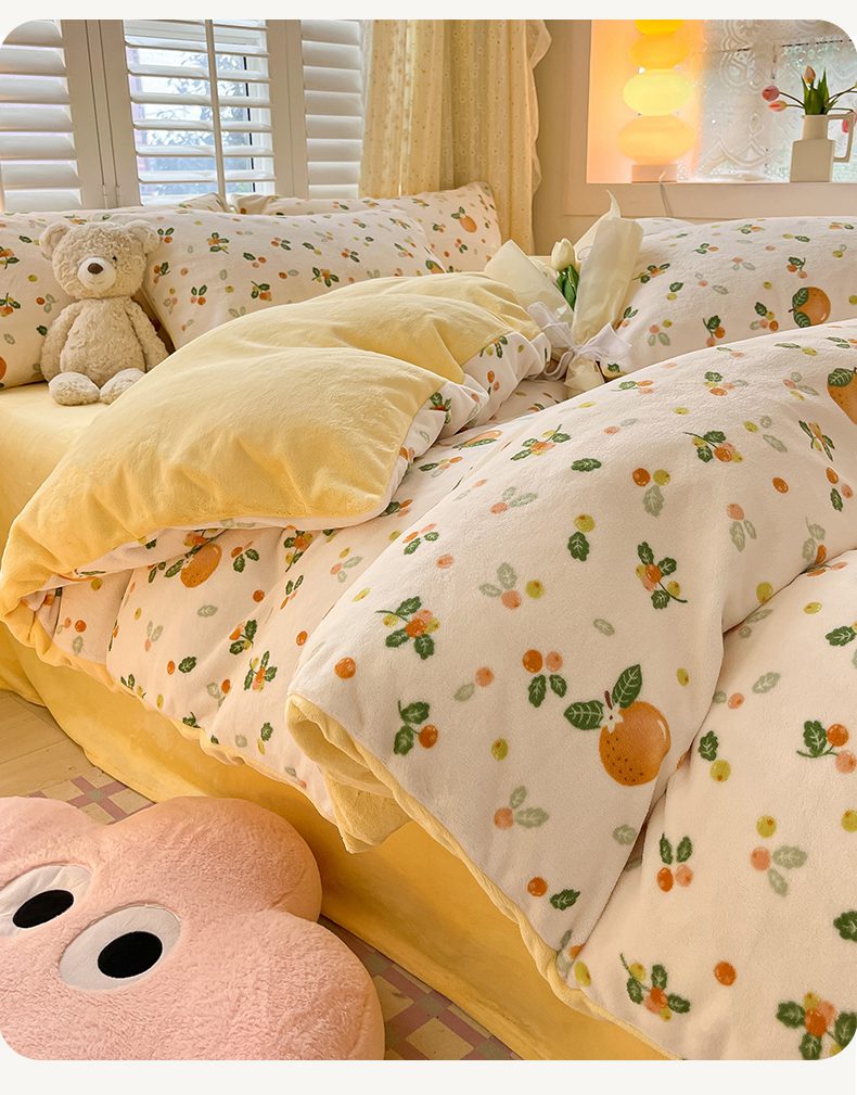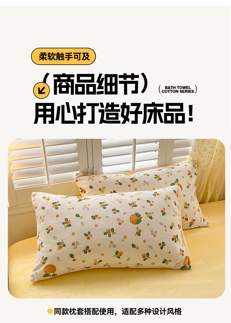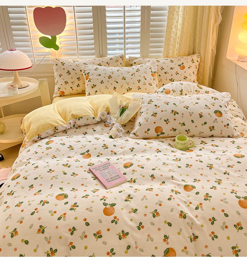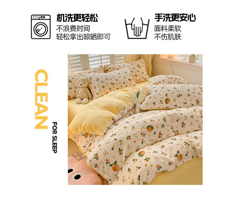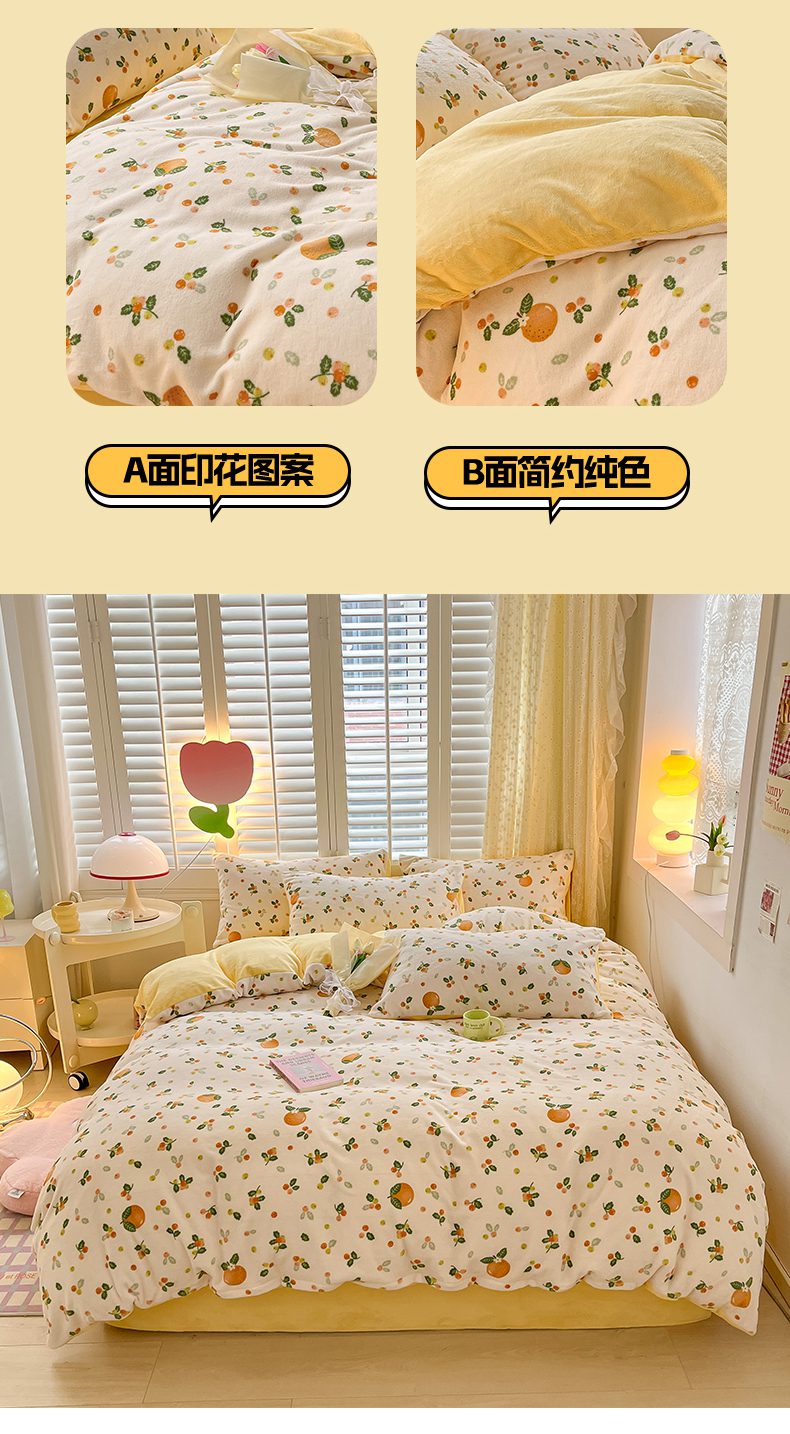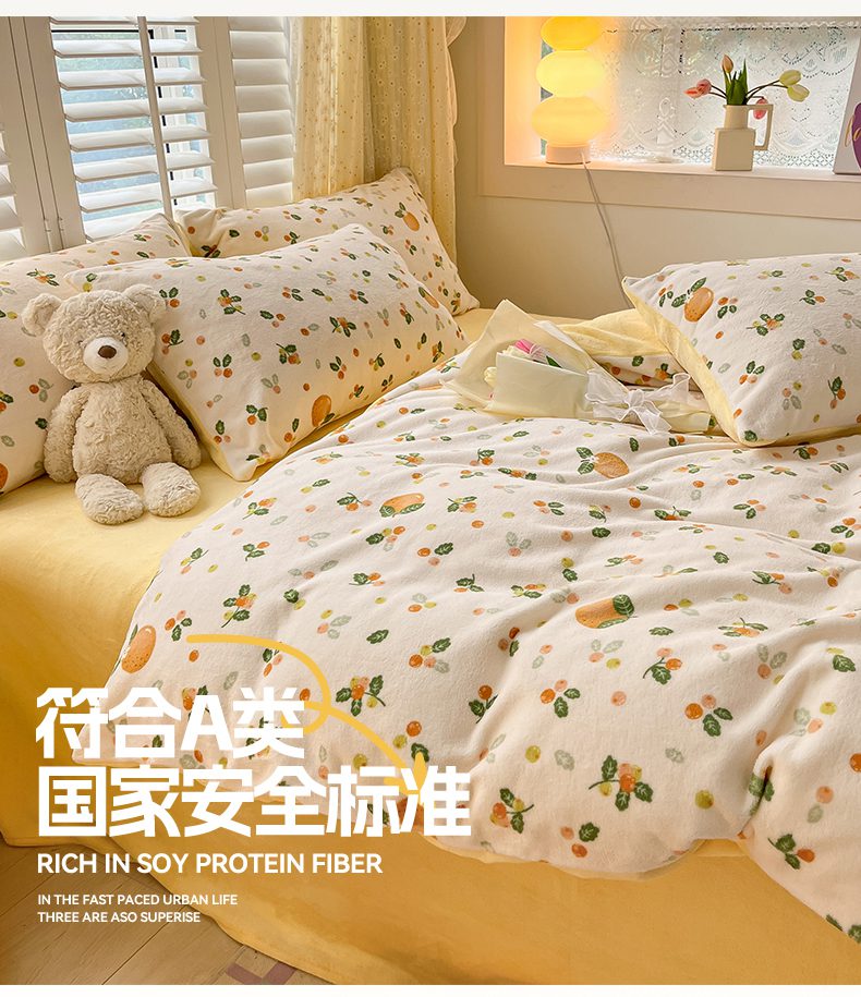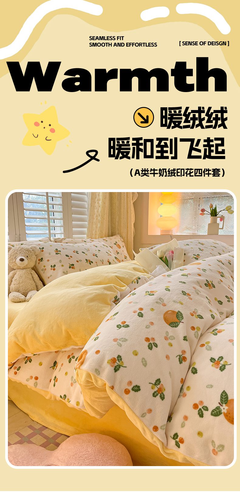 如约 2025新款印花牛奶绒四件套 砂糖橘-绒