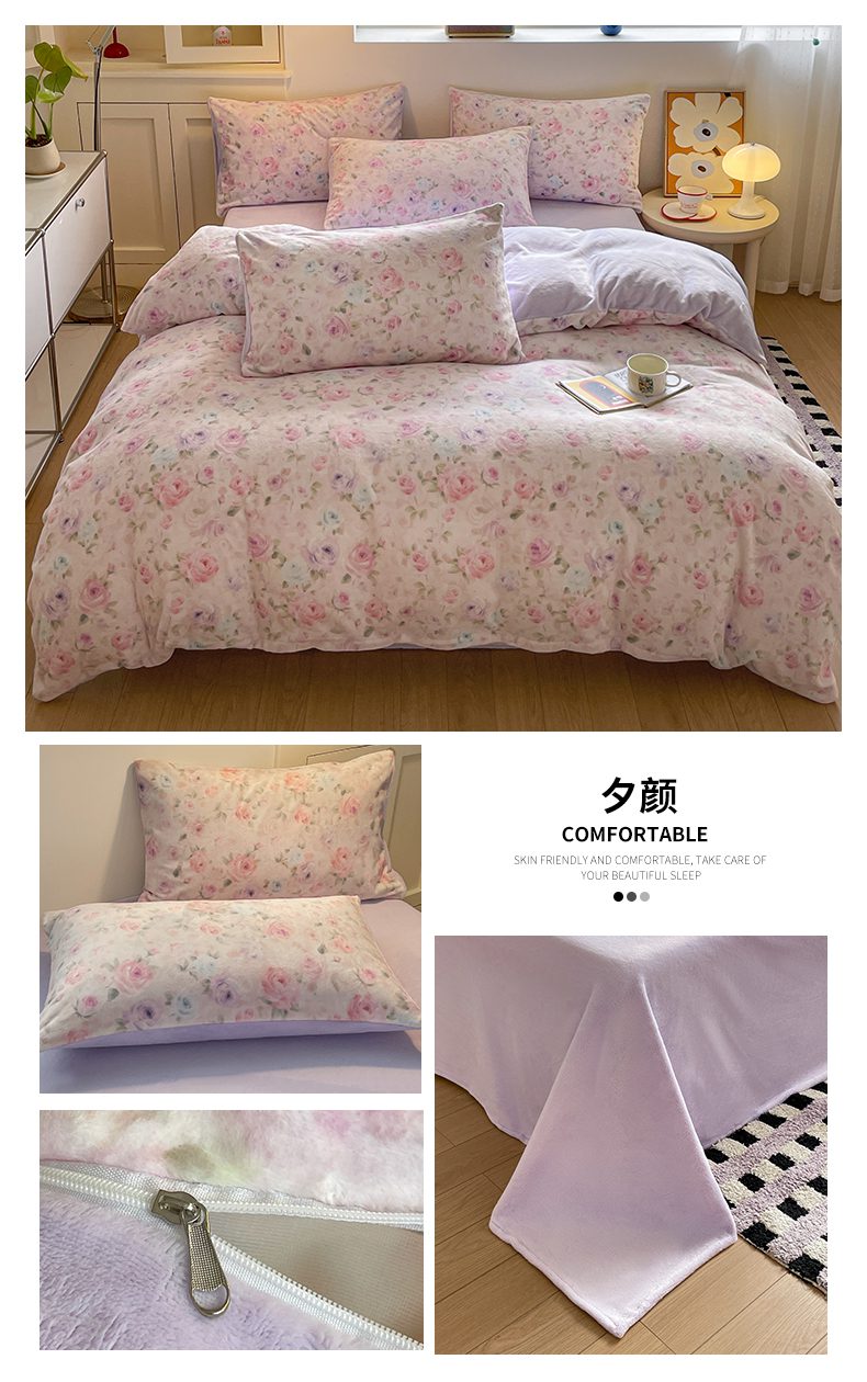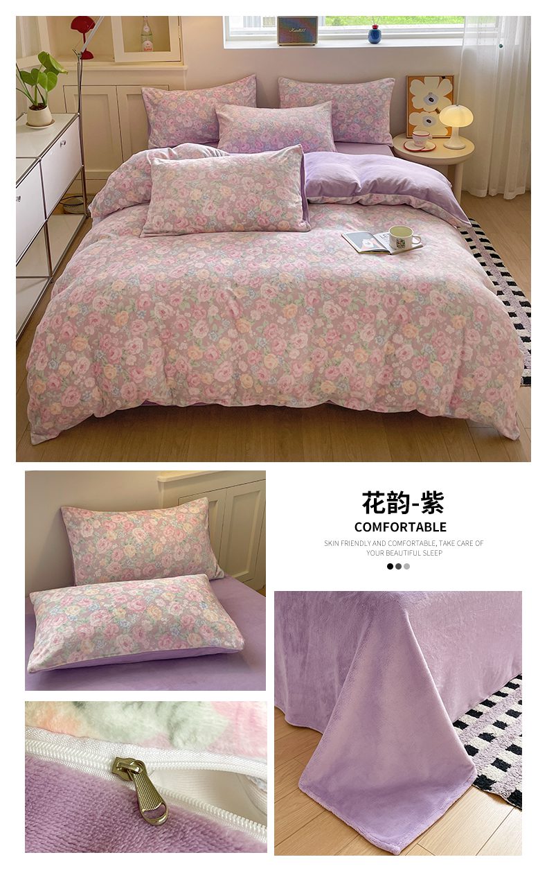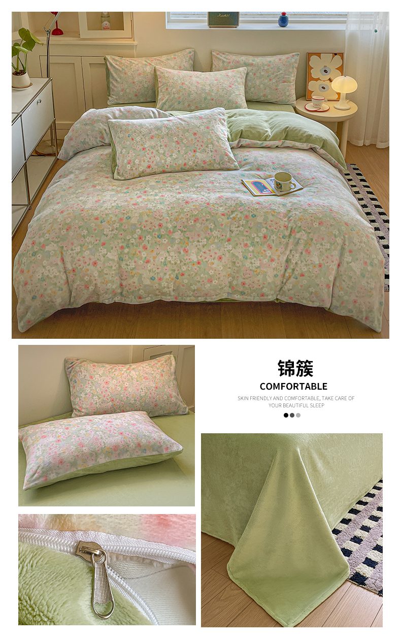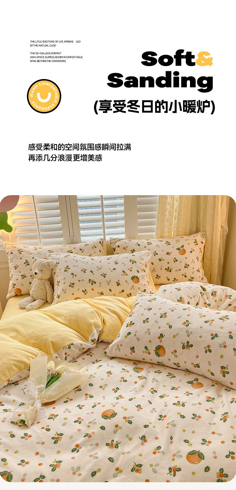 商品名称:如约 2025新款印花牛奶绒四件套 砂糖橘-绒