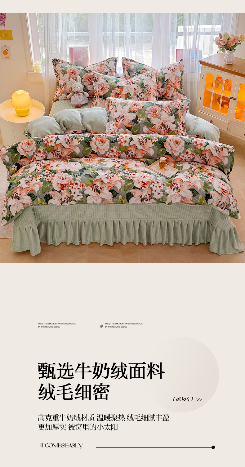 当前位置: 91家纺网 > 商品网购 > 床品套件 > 四件套 > 牛奶绒四件套 > 鸿羽樱家纺《原伊菲晓》 2025新款花仙子系列印花牛奶绒床盖炕垫炕盖四件套-云裳 云裳-牡丹倾城绿