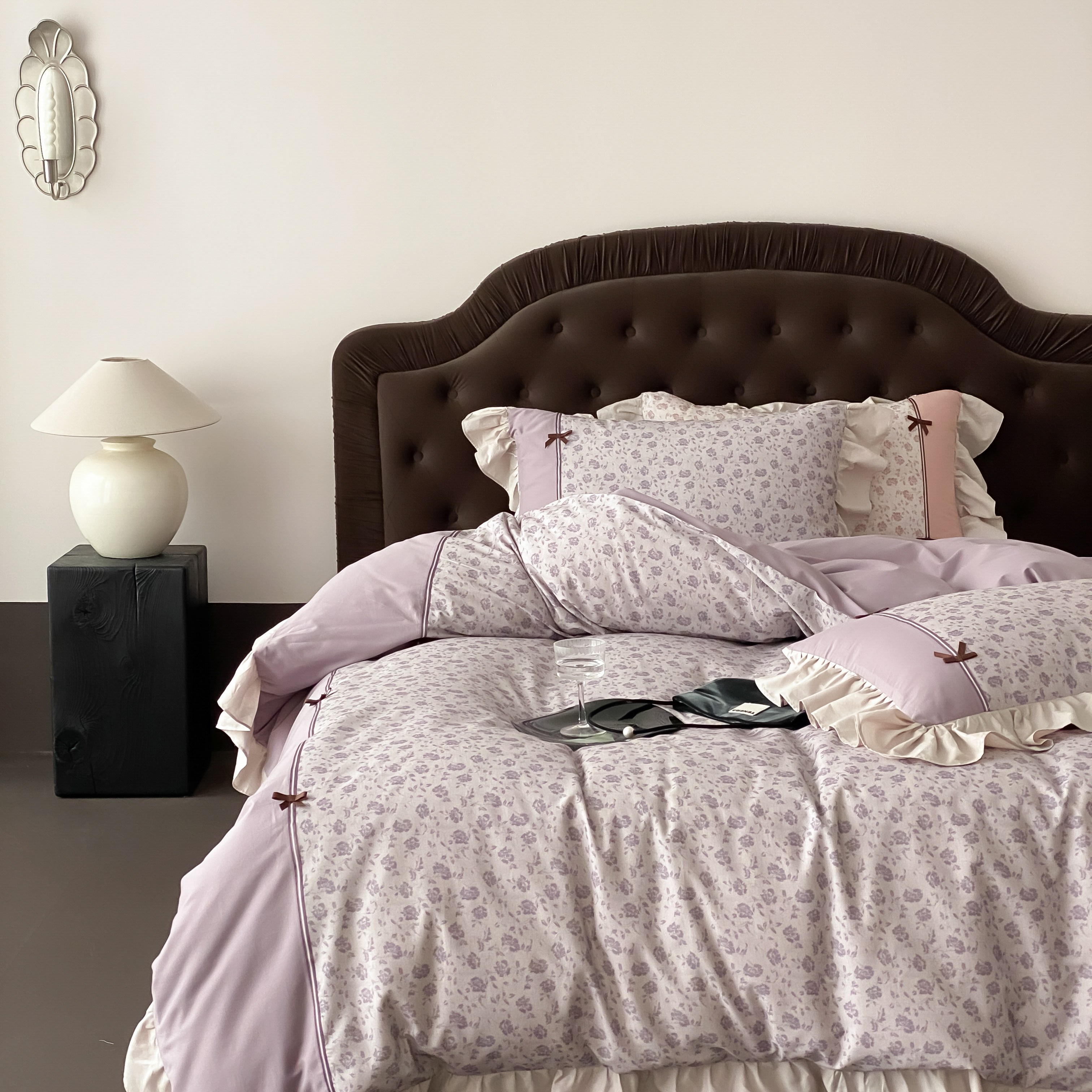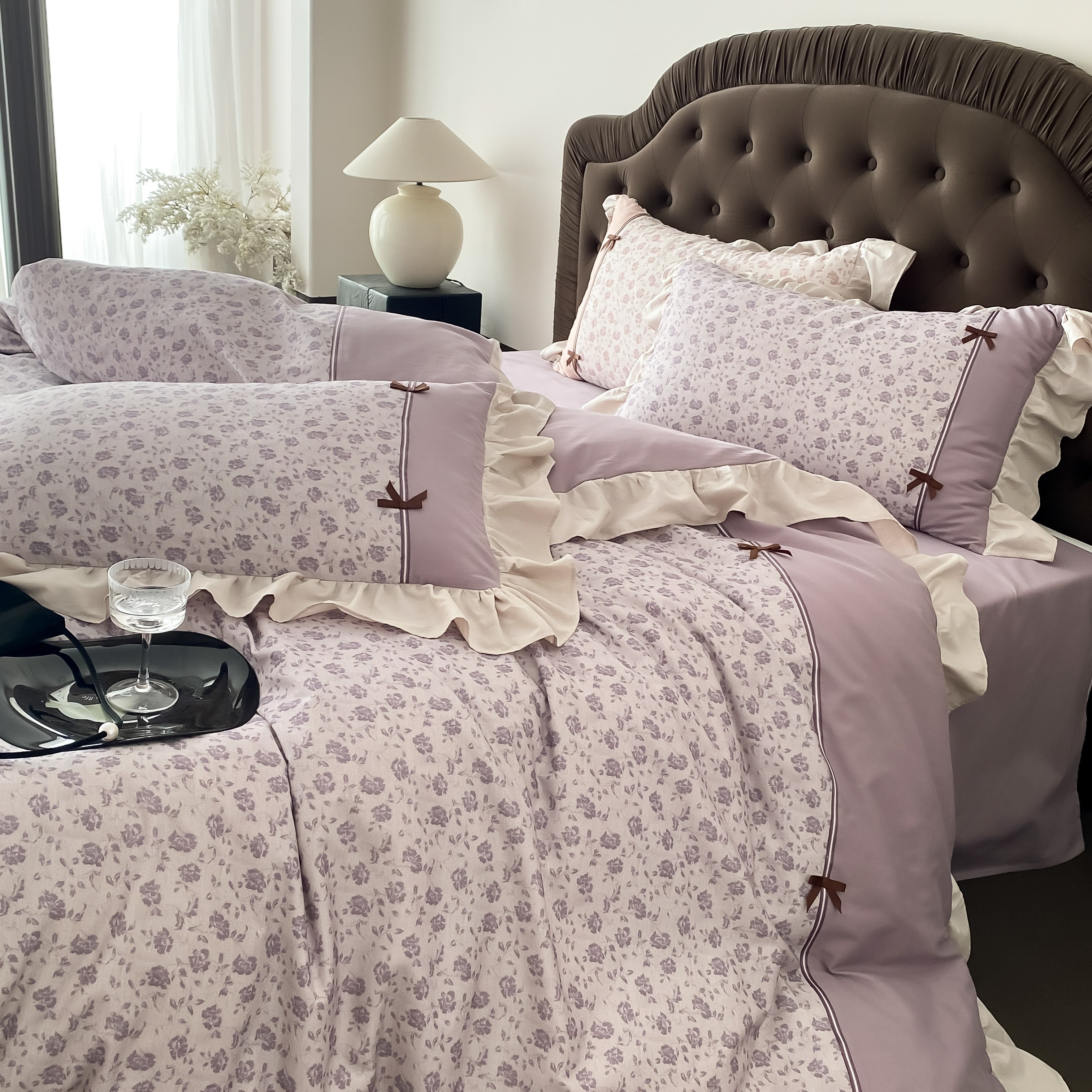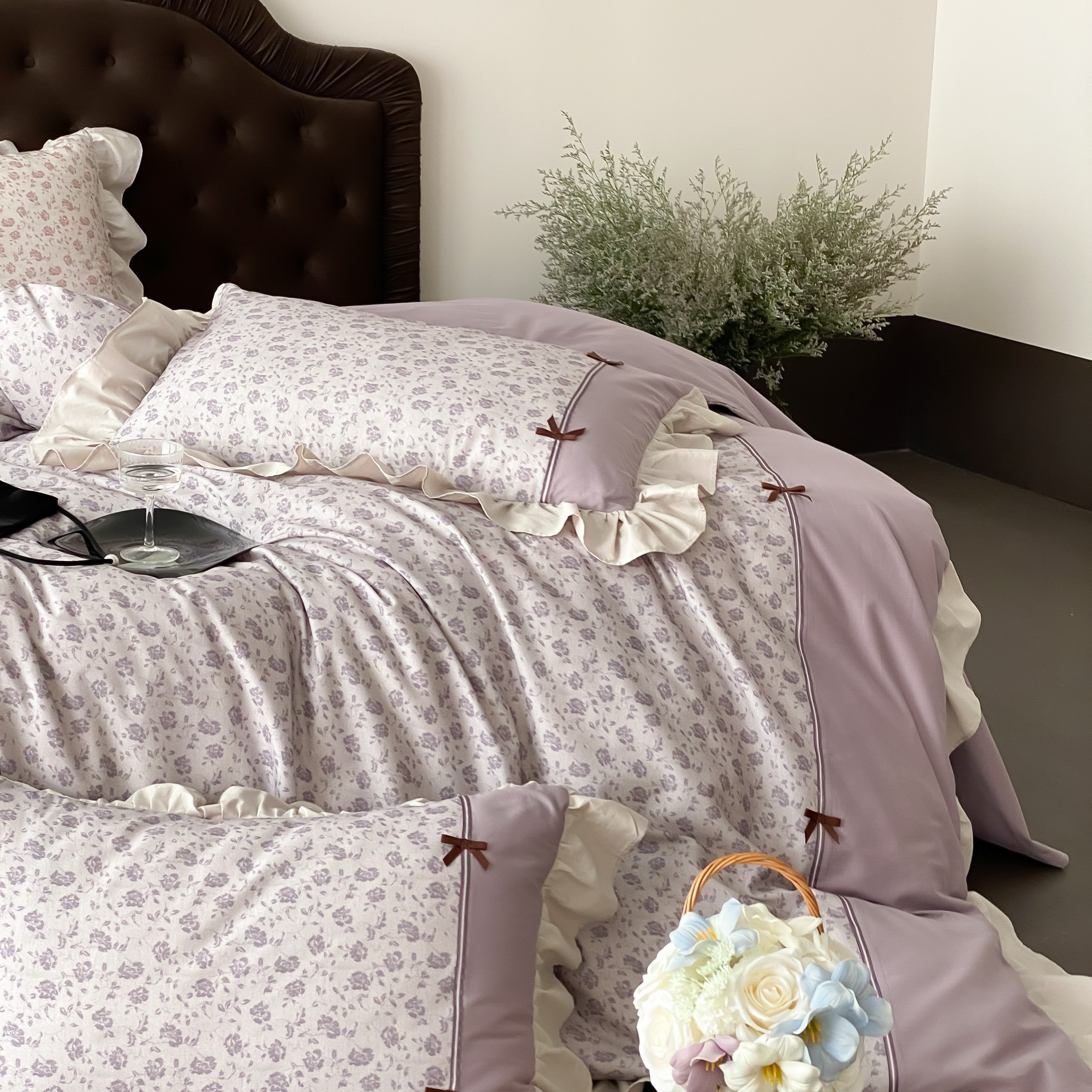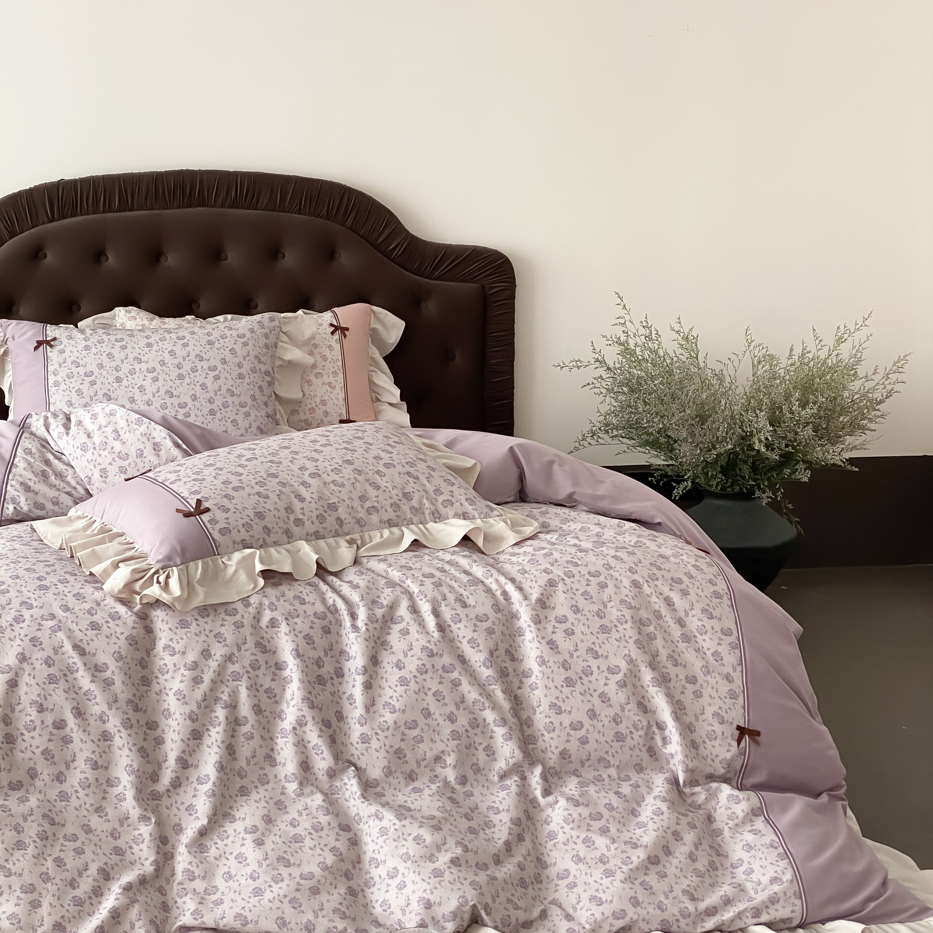 商品名称:曼布缇 2025新款法式碎花加厚全棉纯棉磨毛四件套珍妮(会员减20,券后控价358起) 珍妮-瑾紫