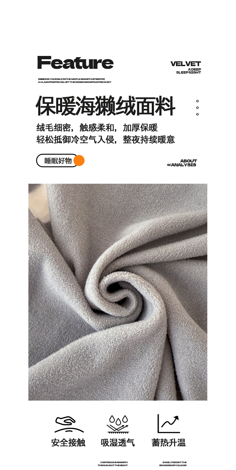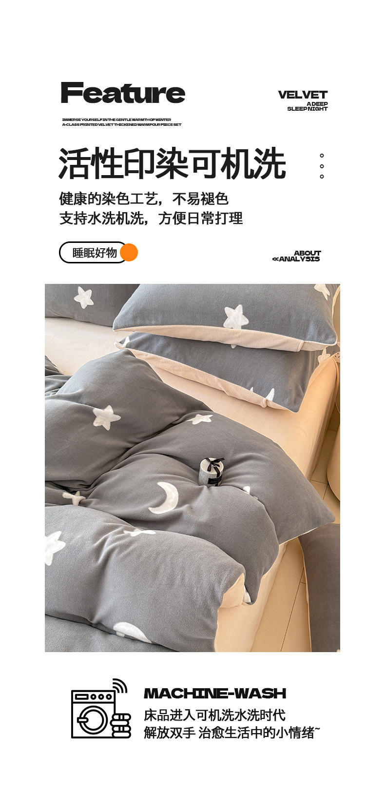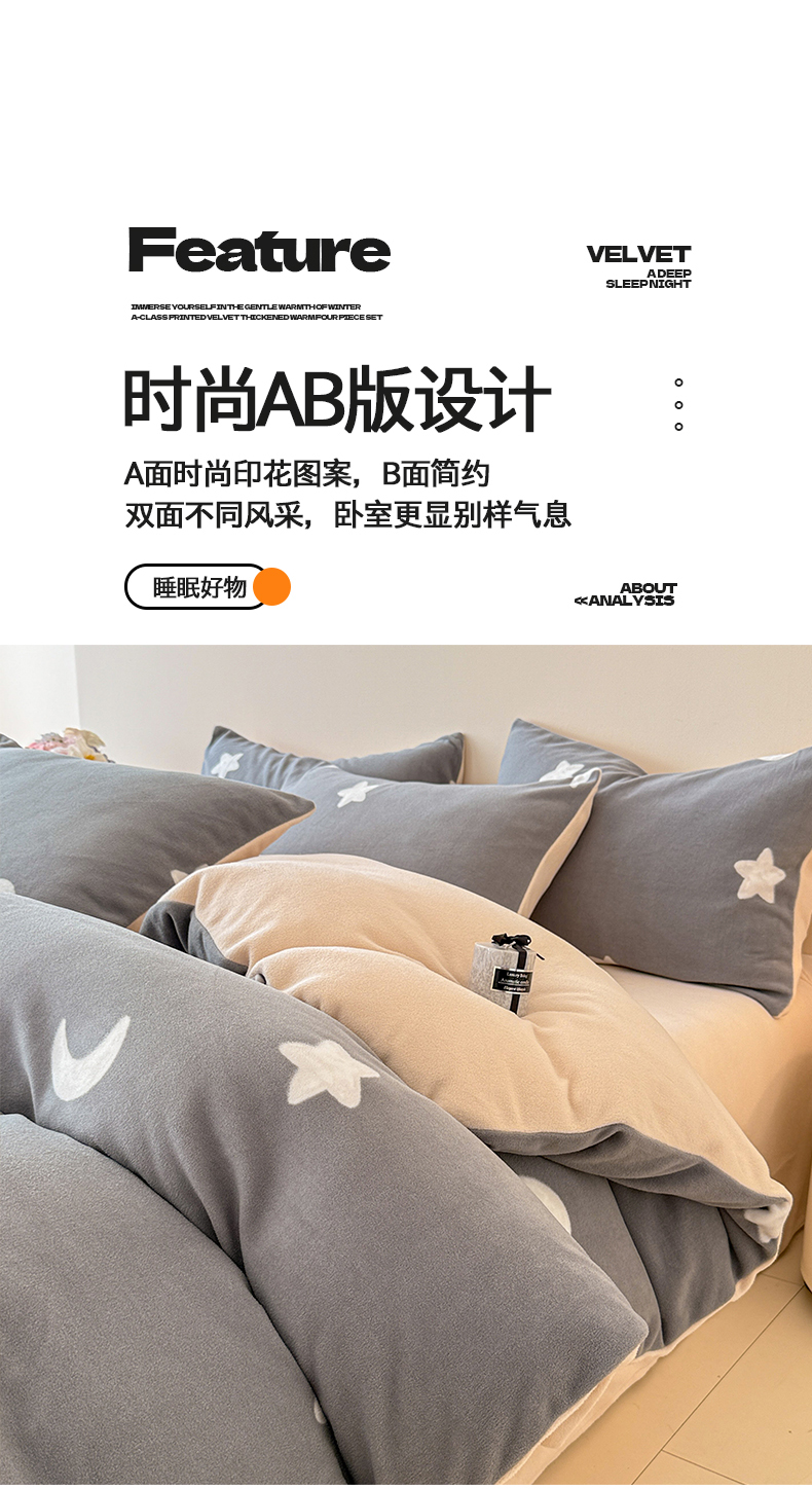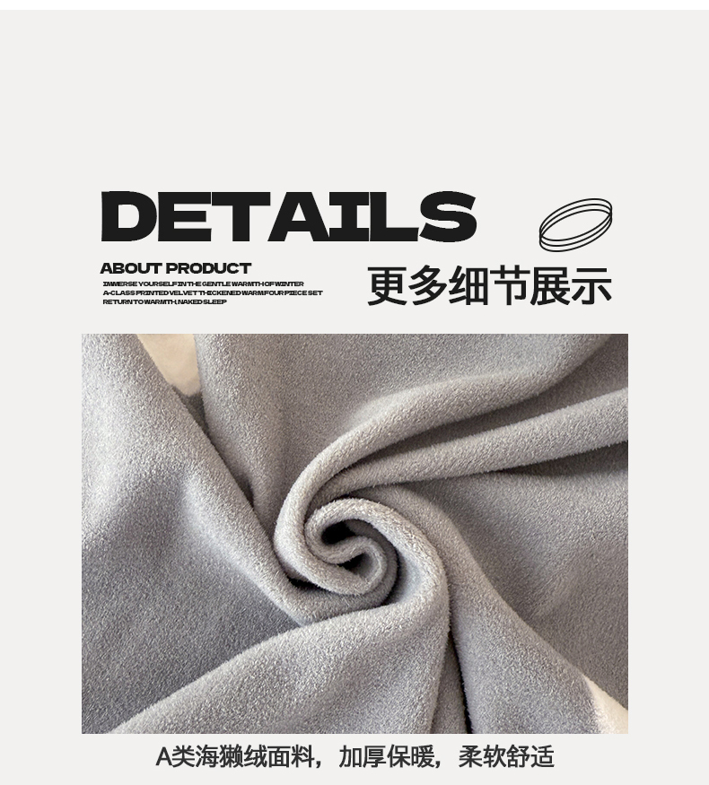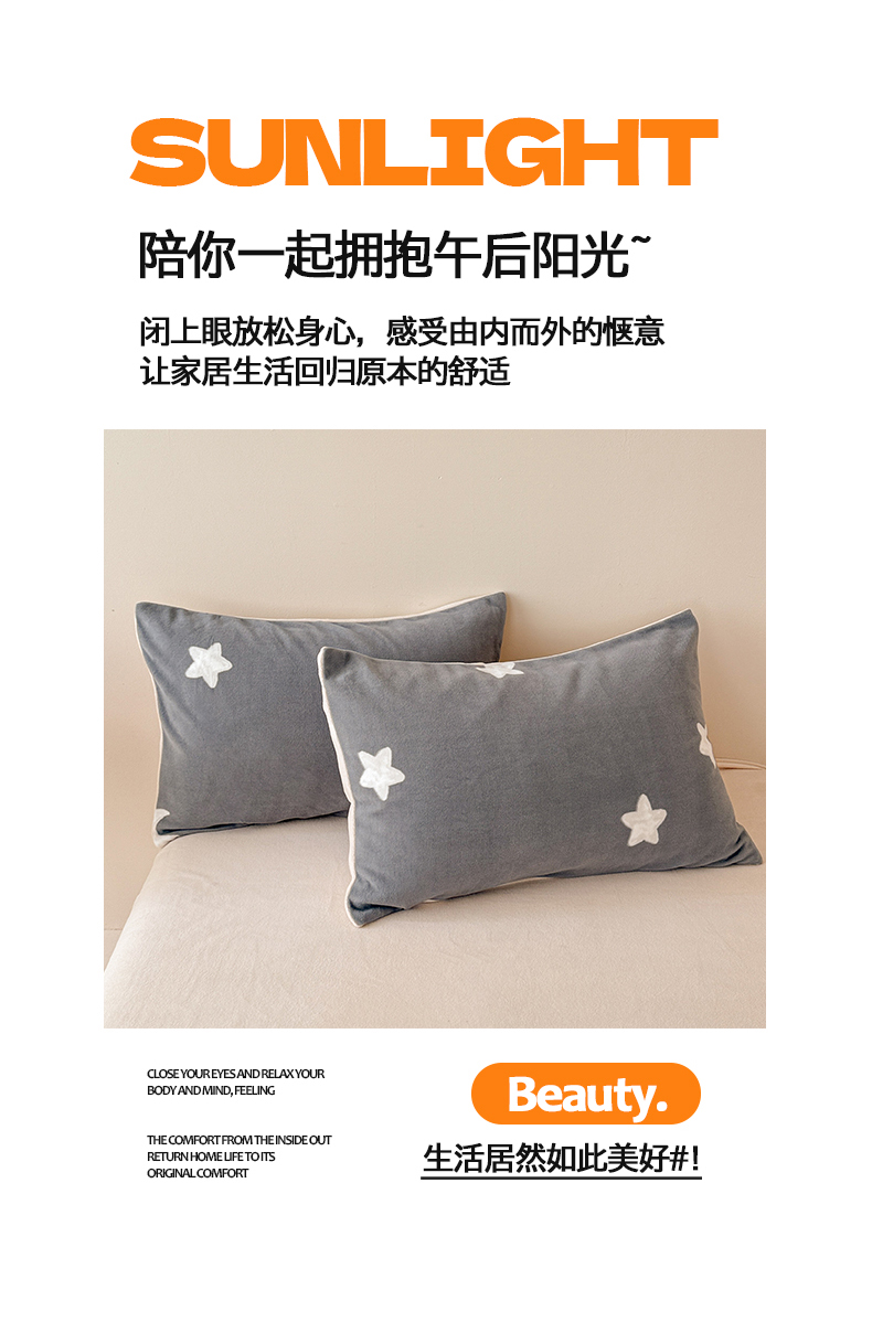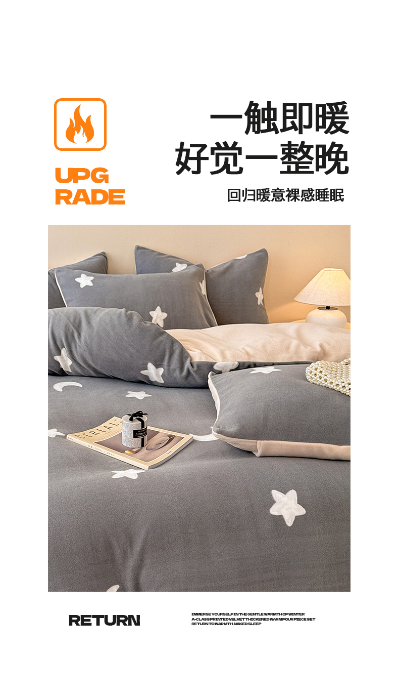 商品名称:懒猫家纺 2025新款印花海獭绒加厚保暖四件套 星星月亮-灰