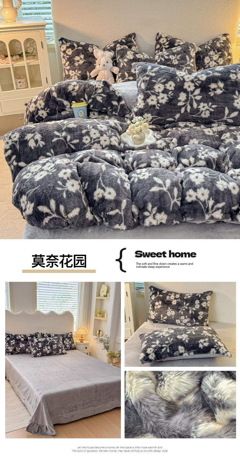 • 91家纺网 家纺一手货源 找家纺 小叮当家纺仓储工厂店 2025新款印花美拉德兔毛印花单被套 被套单件 莫奈花园