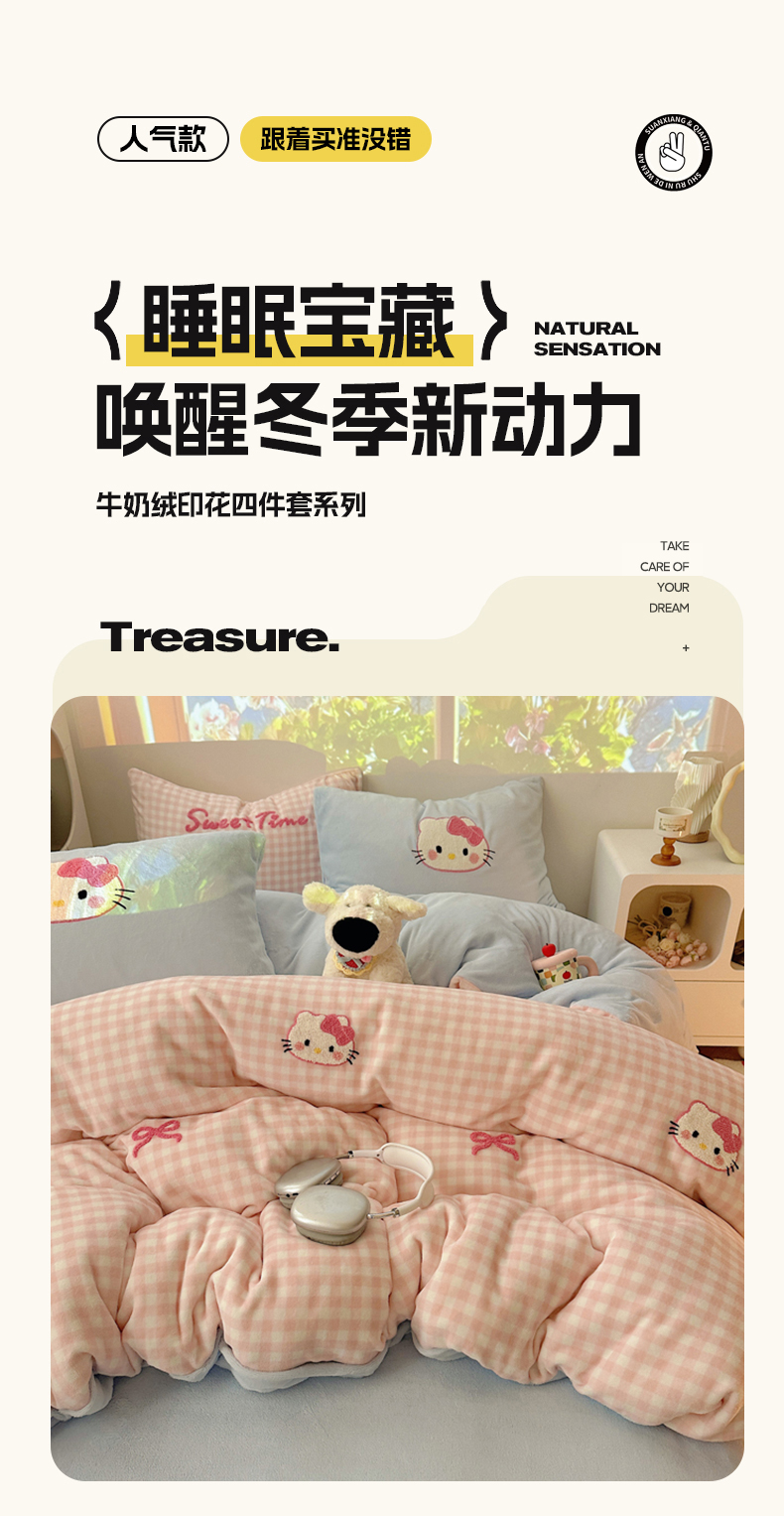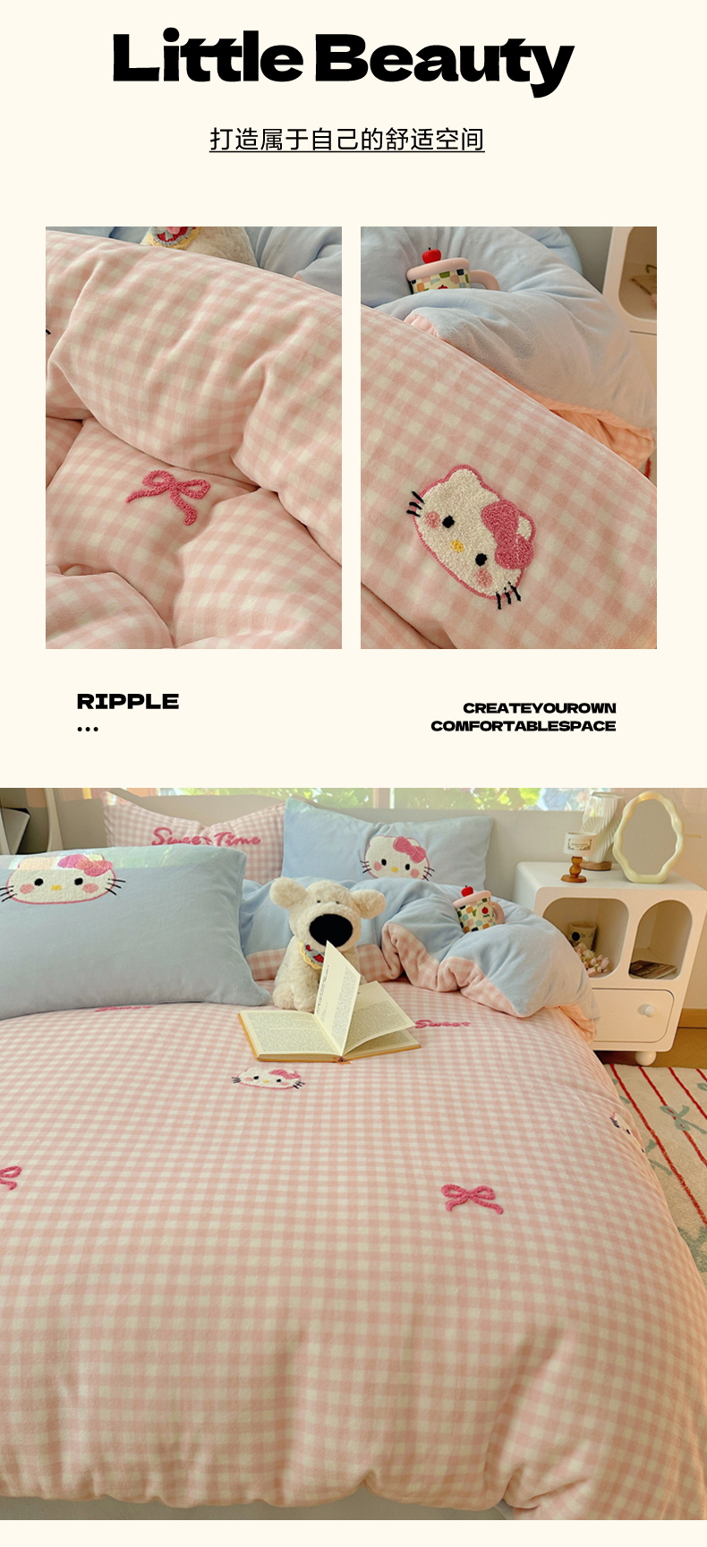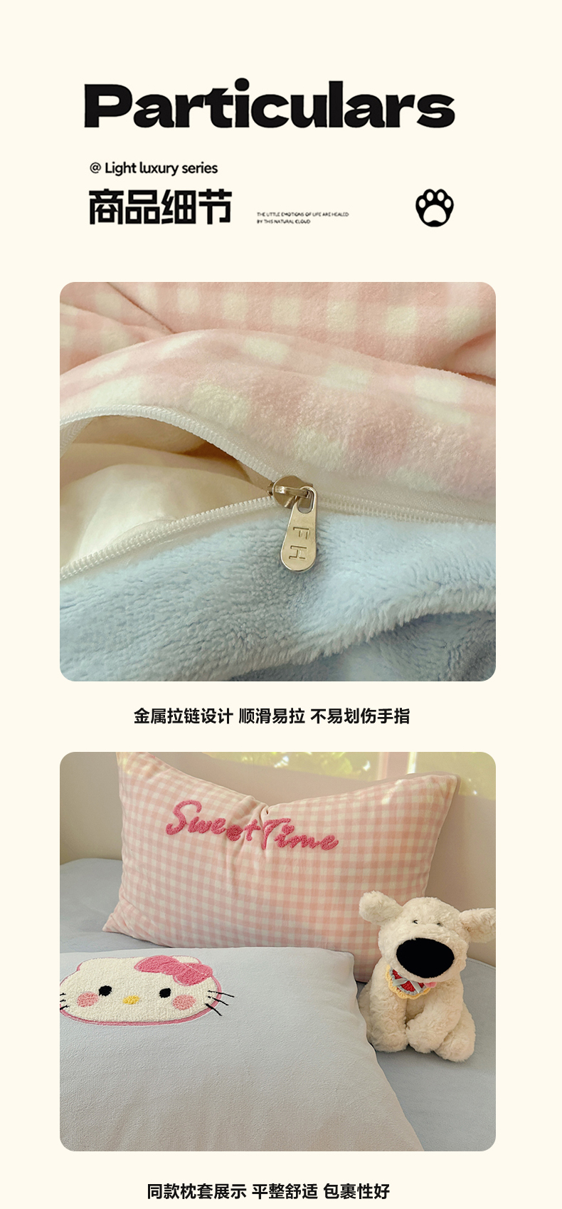 当前位置: 91家纺网 > 商品网购 > 床品套件 > 四件套 > 牛奶绒四件套 > 小叮当家纺仓储工厂店 买家秀 爆款花型2025新款秋冬保暖牛奶绒卡通小清新毛巾绣系列四件套 粉格猫咪