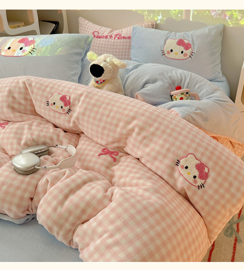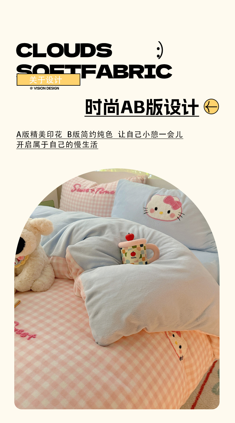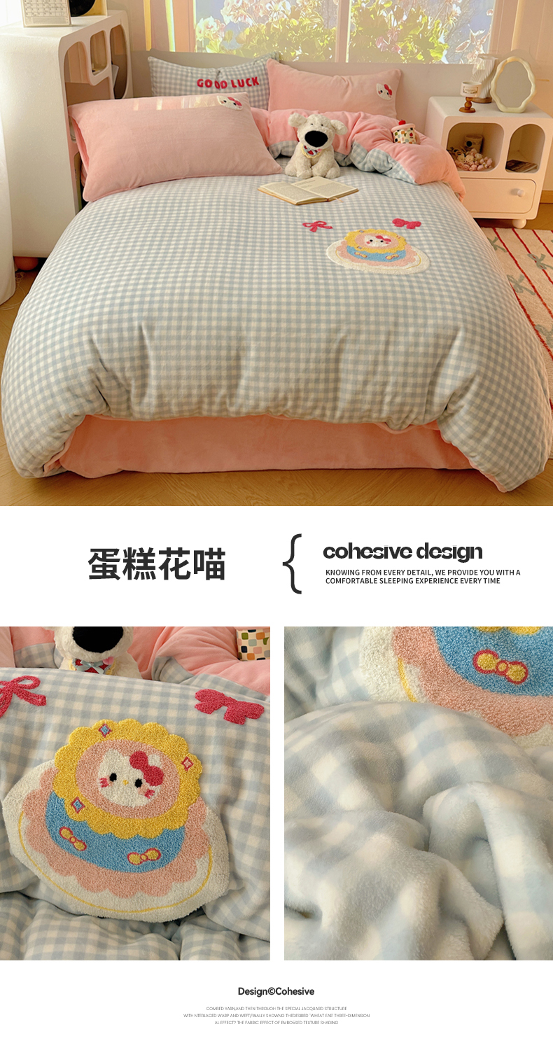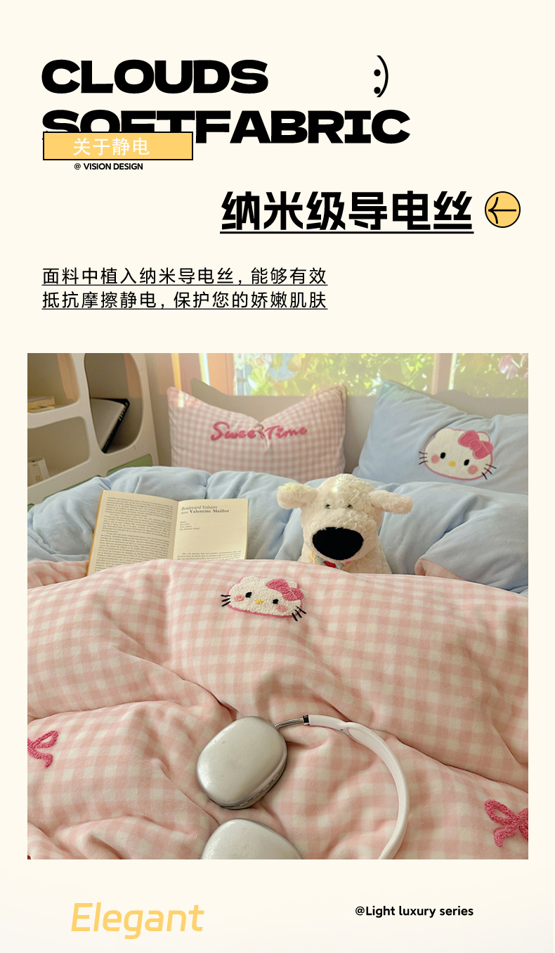 当前位置: 91家纺网 > 商品网购 > 床品套件 > 四件套 > 牛奶绒四件套 > 小叮当家纺仓储工厂店 买家秀 爆款花型2025新款秋冬保暖牛奶绒卡通小清新毛巾绣系列四件套 粉格猫咪
