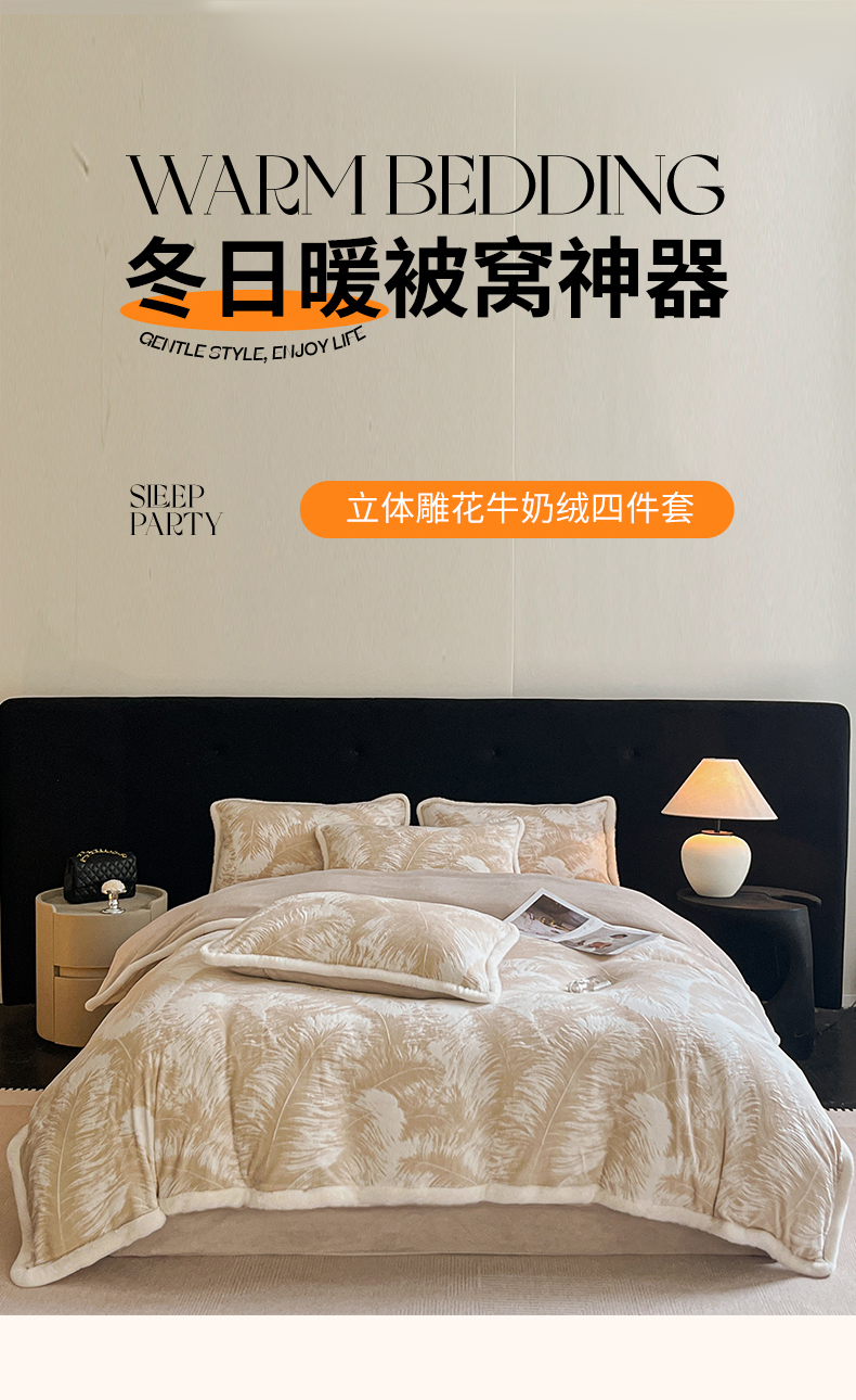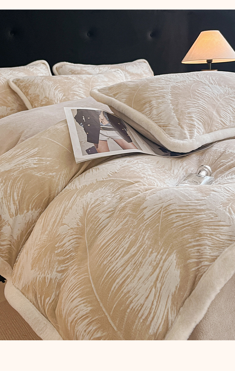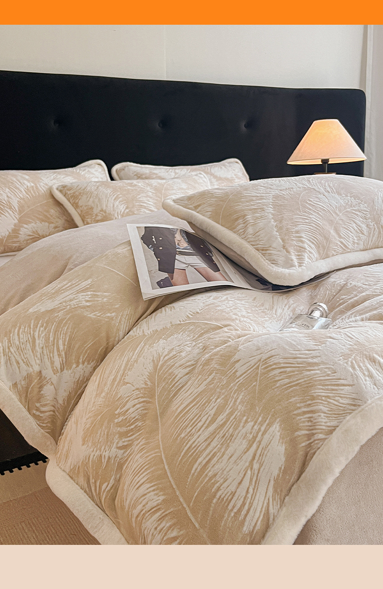 极简 2025新款立体雕花牛奶绒四件套系列 卡莱-暖棕