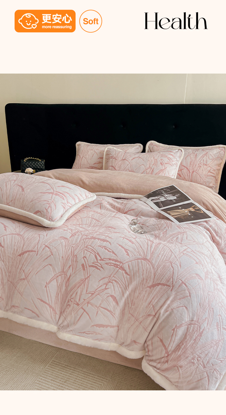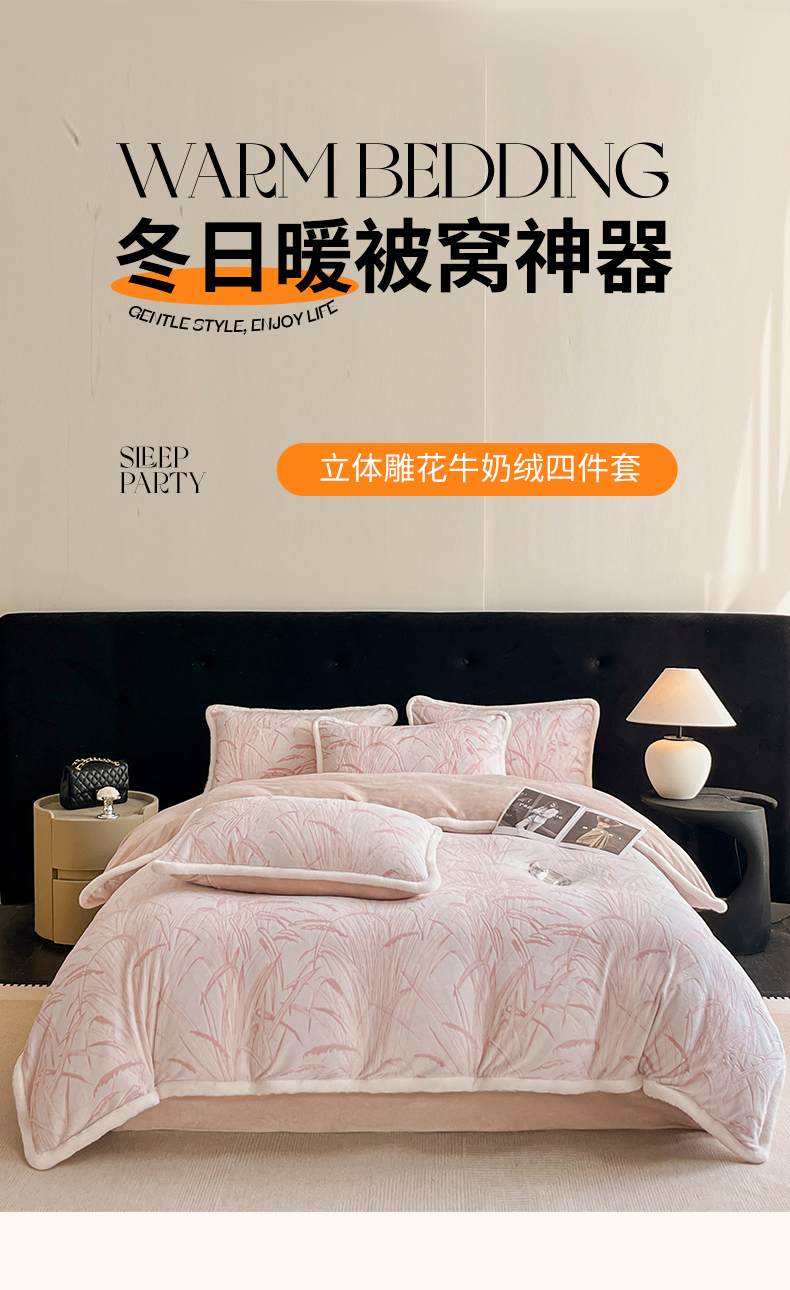 极简 2025新款立体雕花牛奶绒四件套系列 普罗旺斯-粉