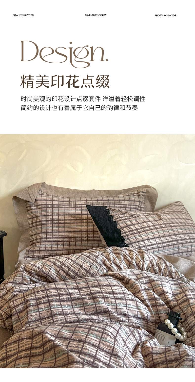 当前位置: 91家纺网 > 商品网购 > 床品套件 > 四件套 > 普通磨毛四件套 > 小叮当家纺仓储工厂店 买家秀 爆款花型2025秋冬新款磨毛复古亚麻棉麻提花超软四件套 暖棕格纹