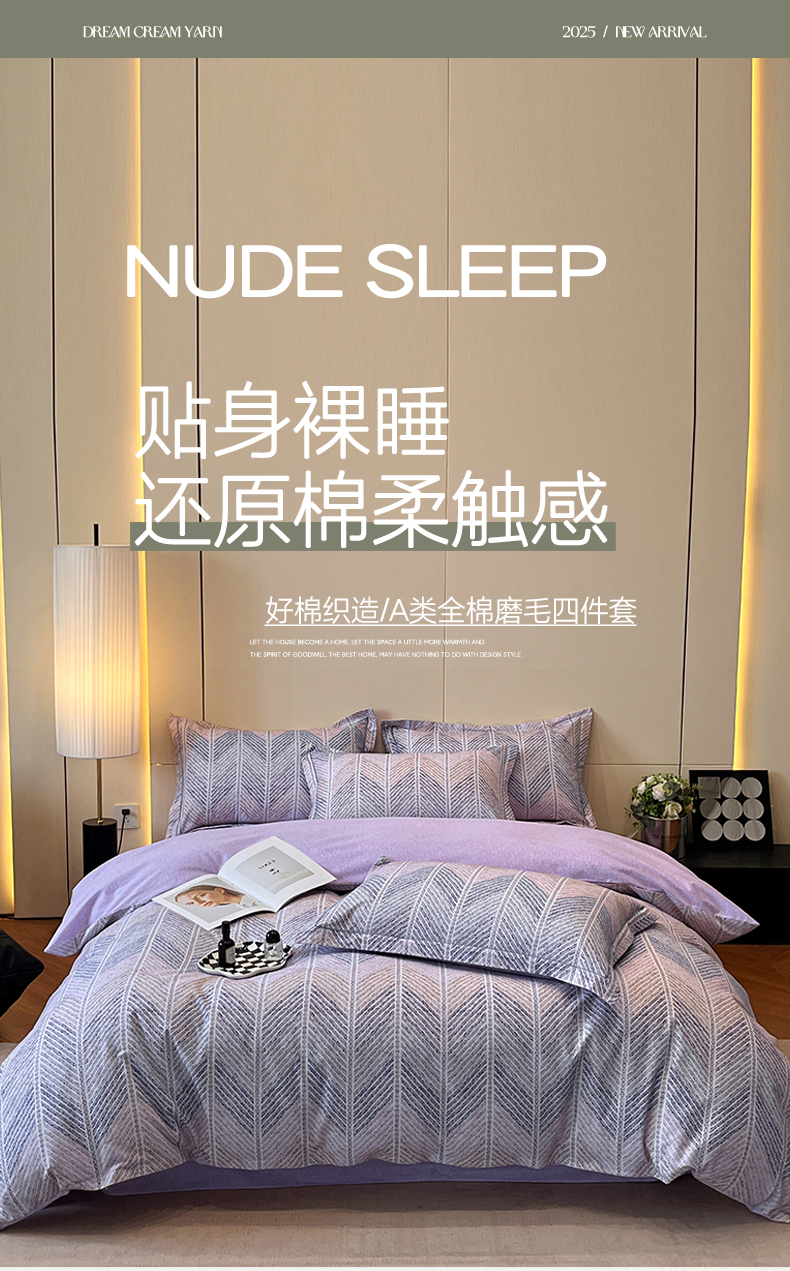 商品名称:简如 2025新款100%全棉纯棉磨毛四件套(有买家秀) 曼迪尼-紫