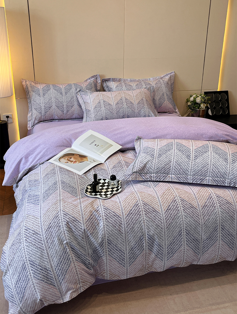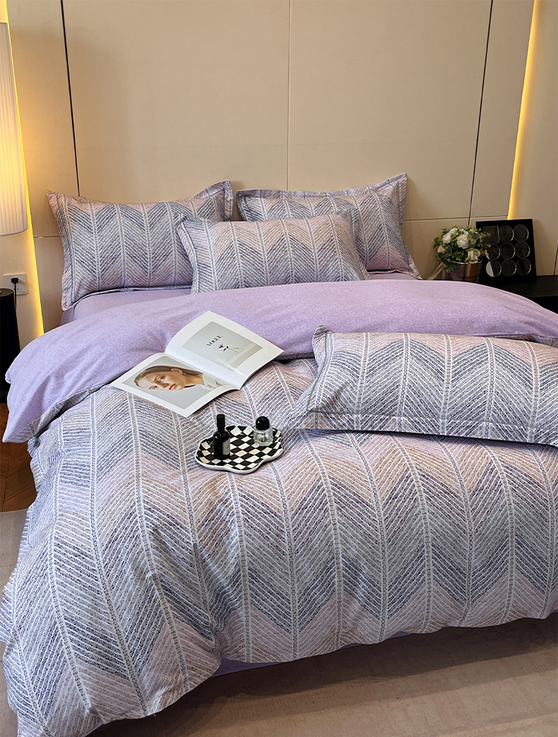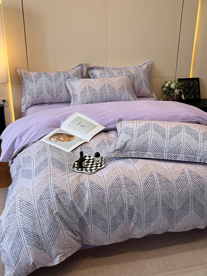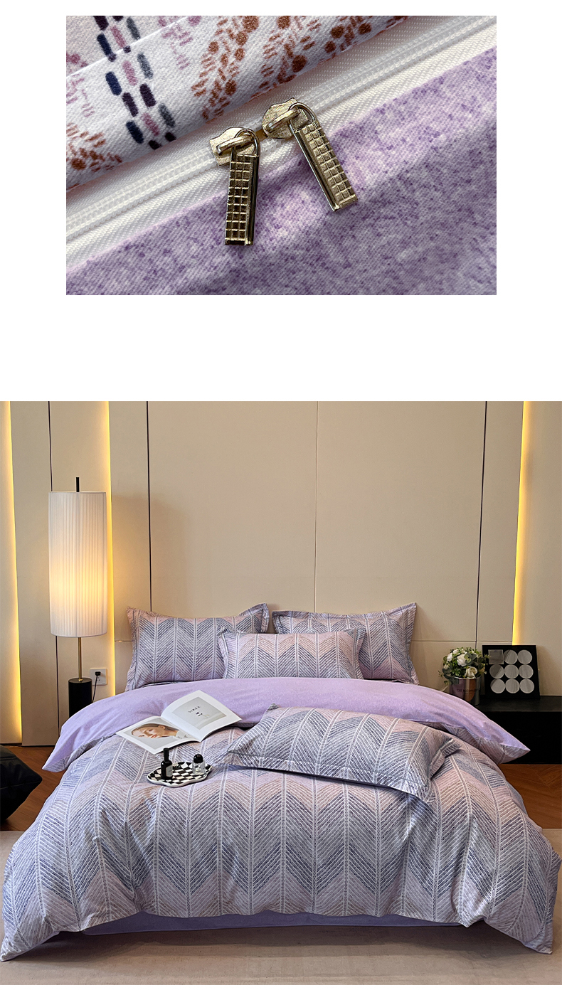 简如 2025新款100%全棉纯棉磨毛四件套(有买家秀) 曼迪尼-紫