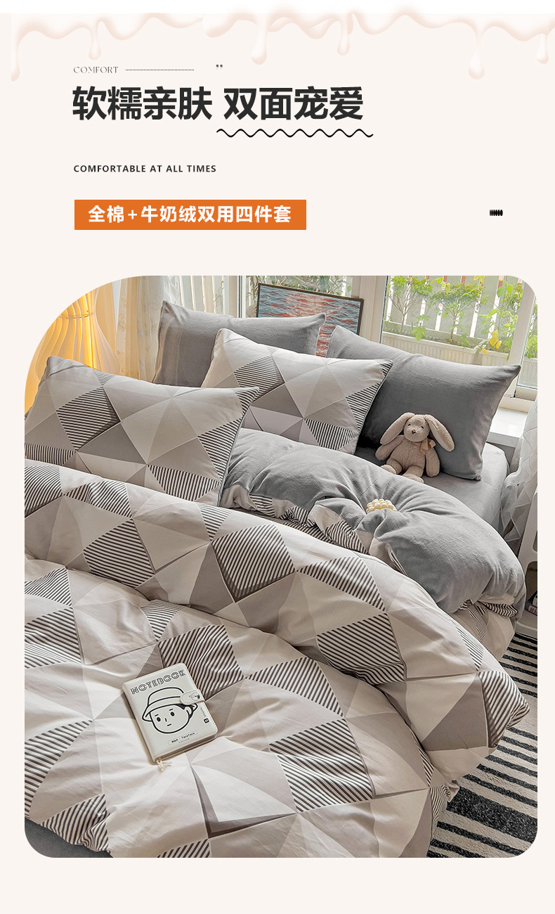 当前位置: 91家纺网 > 商品网购 > 床品套件 > 四件套 > 牛奶绒四件套 > 捌月 2025新款棉加绒A版13372全棉B版高克重牛奶绒四件套直播新品 菱格