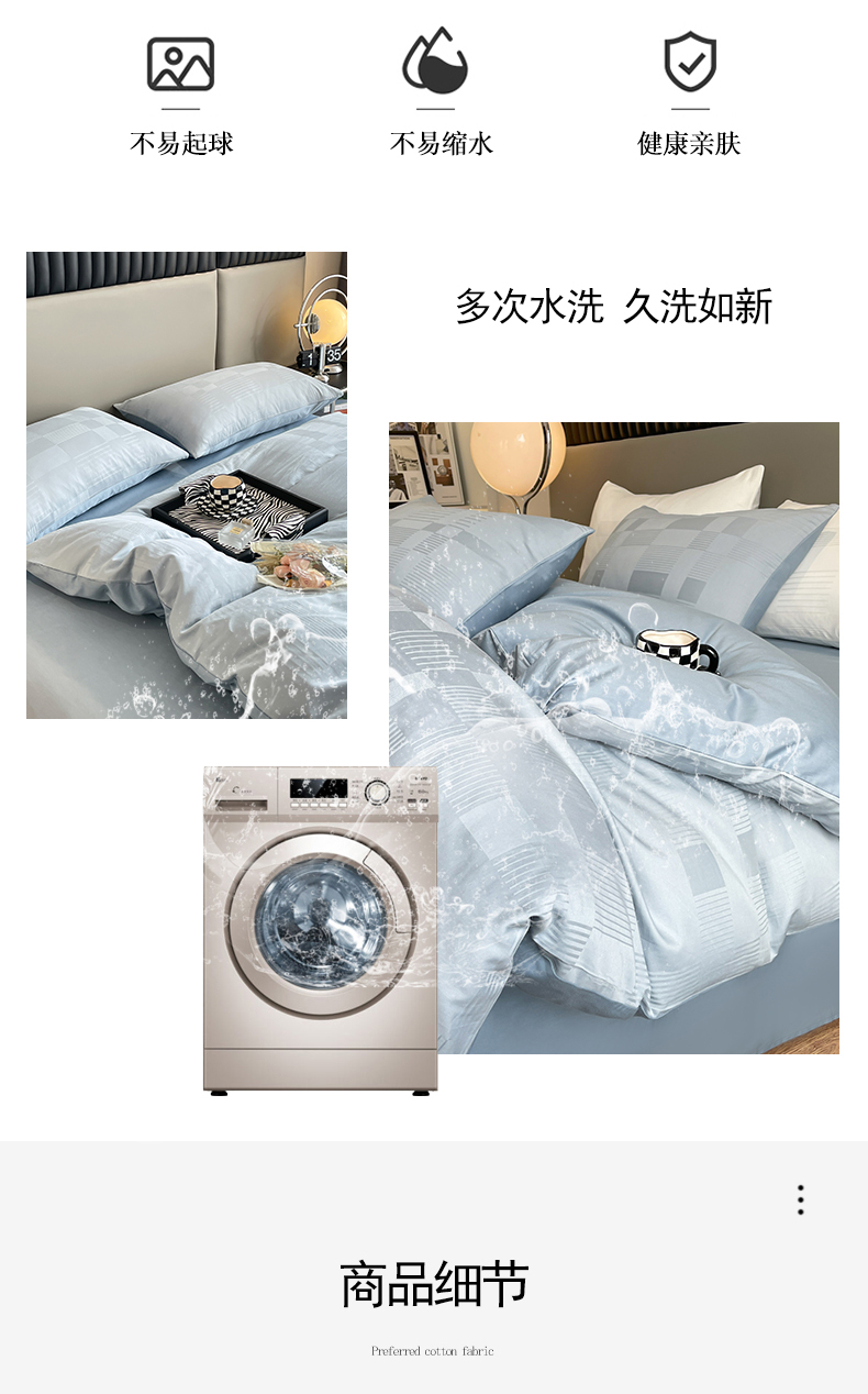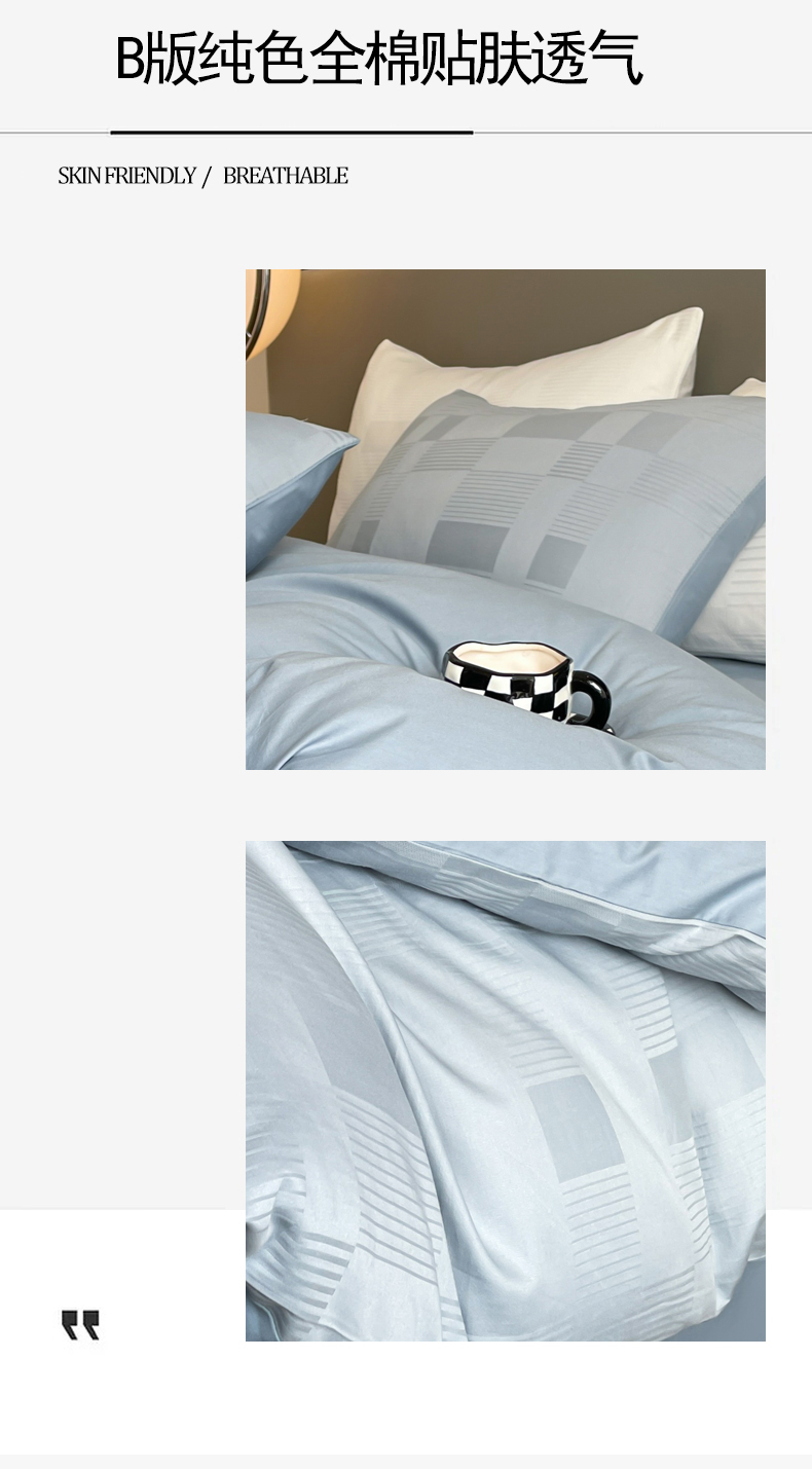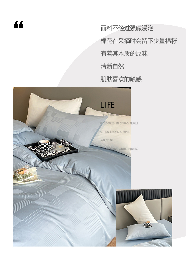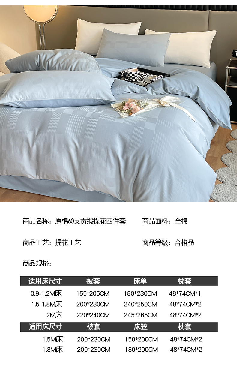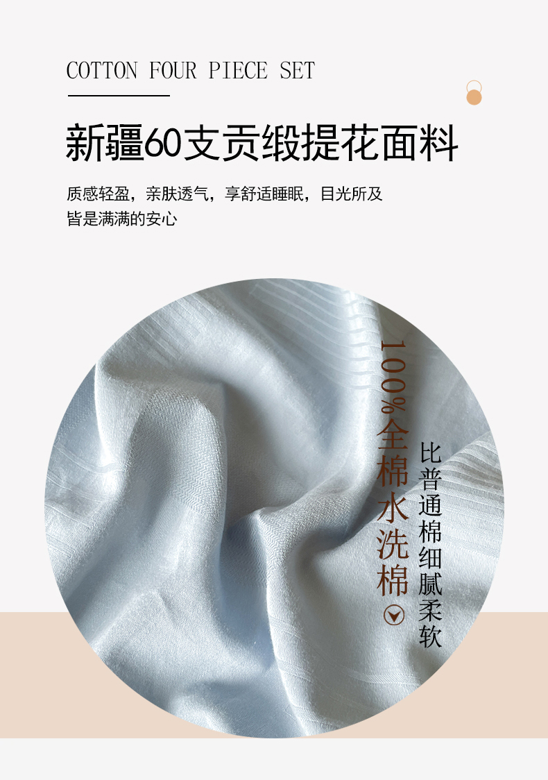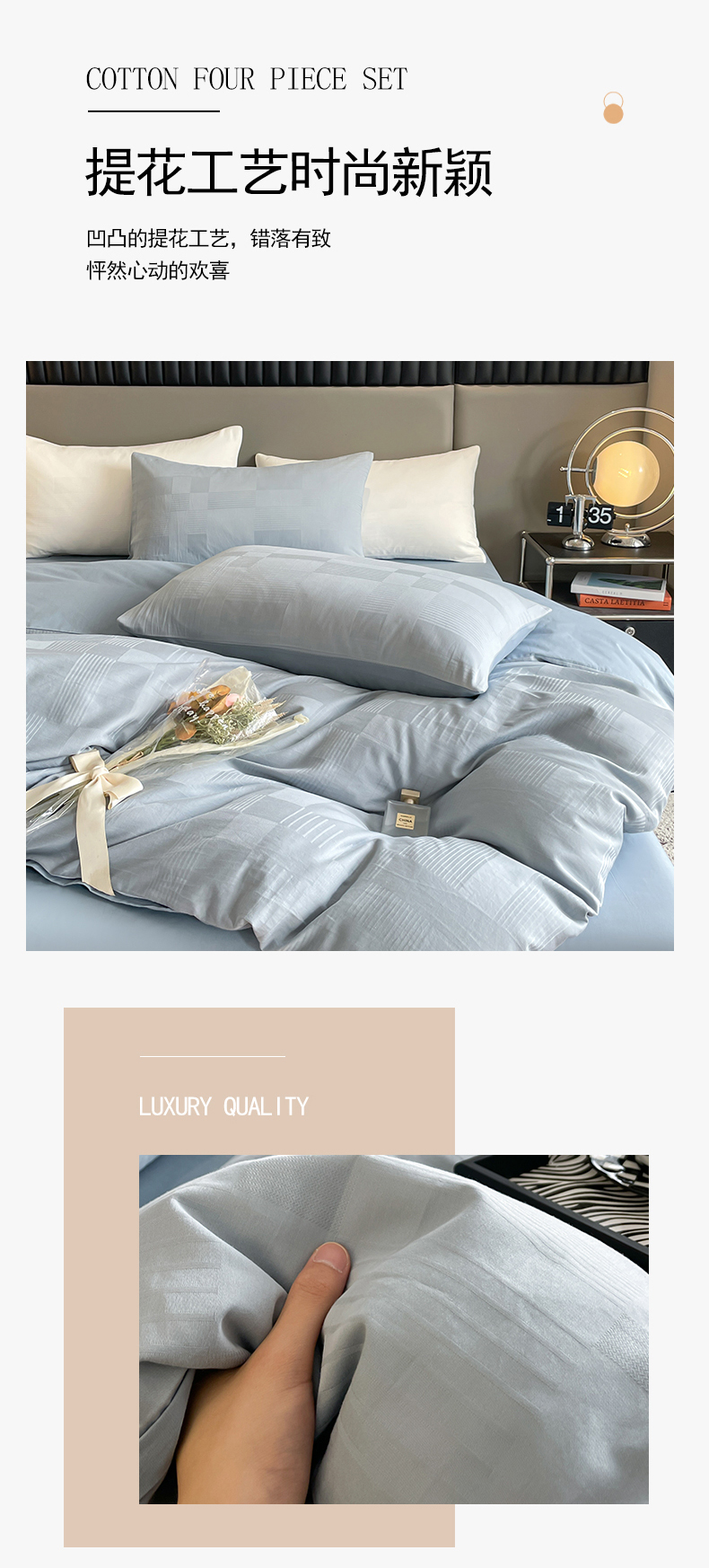 商品名称:琪格格纺织 2025新款纯棉轻奢大提花酒店名宿风家纺四件套 原棉大提花浅蓝