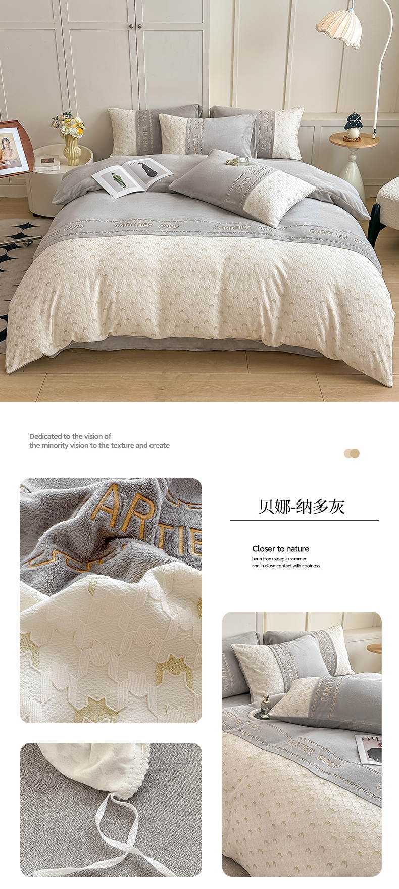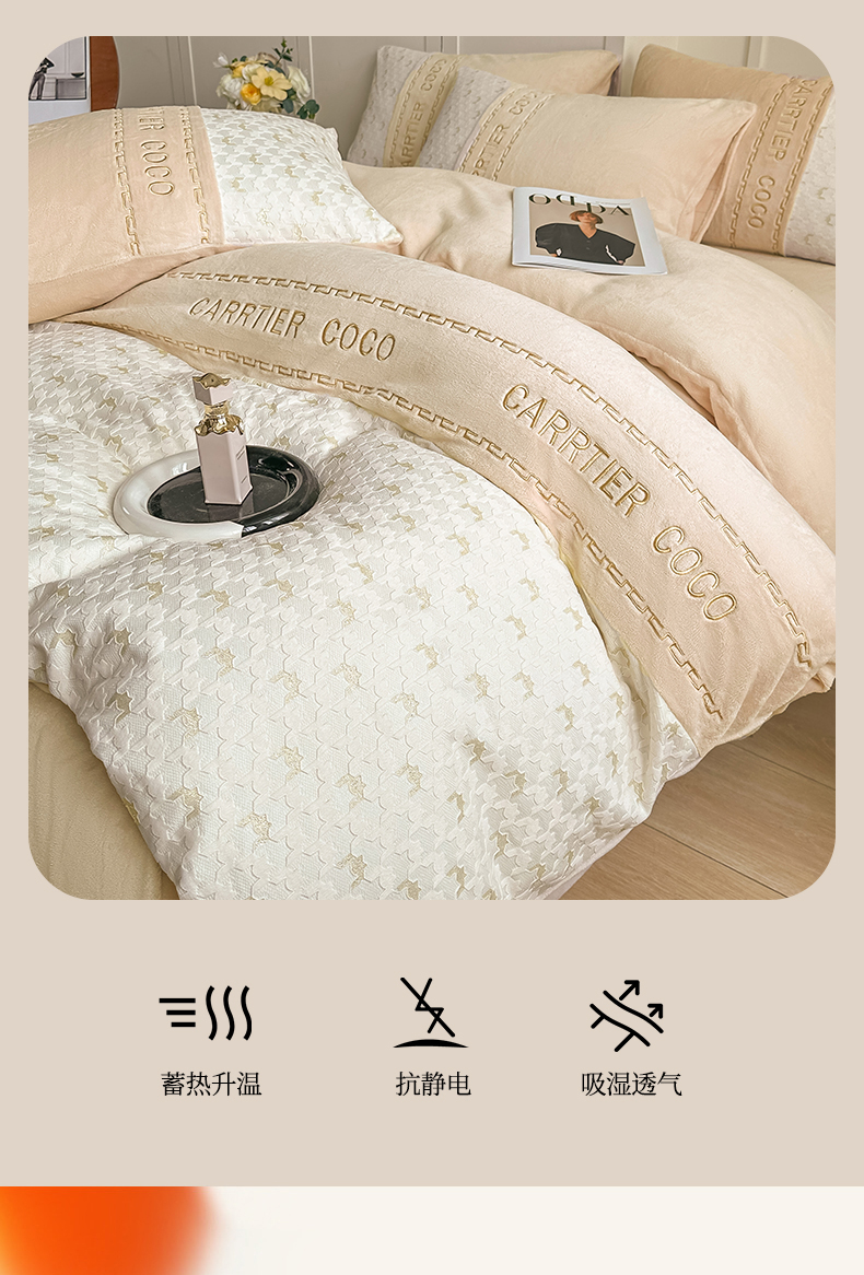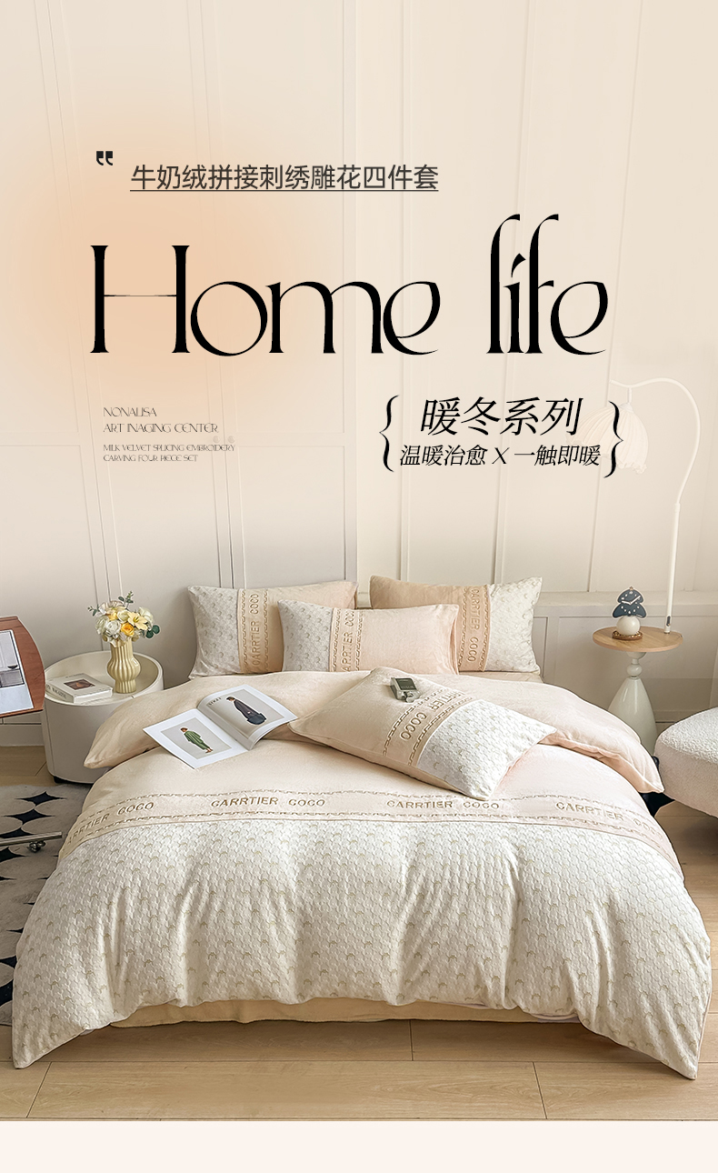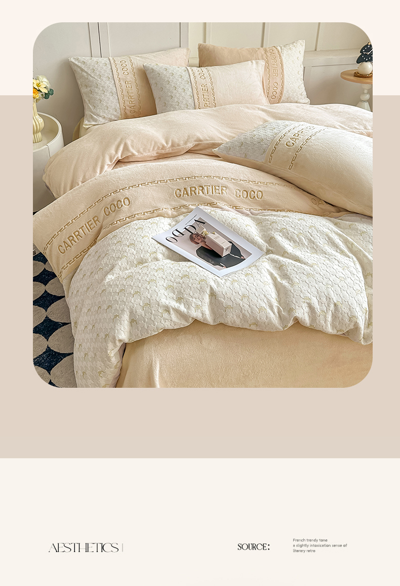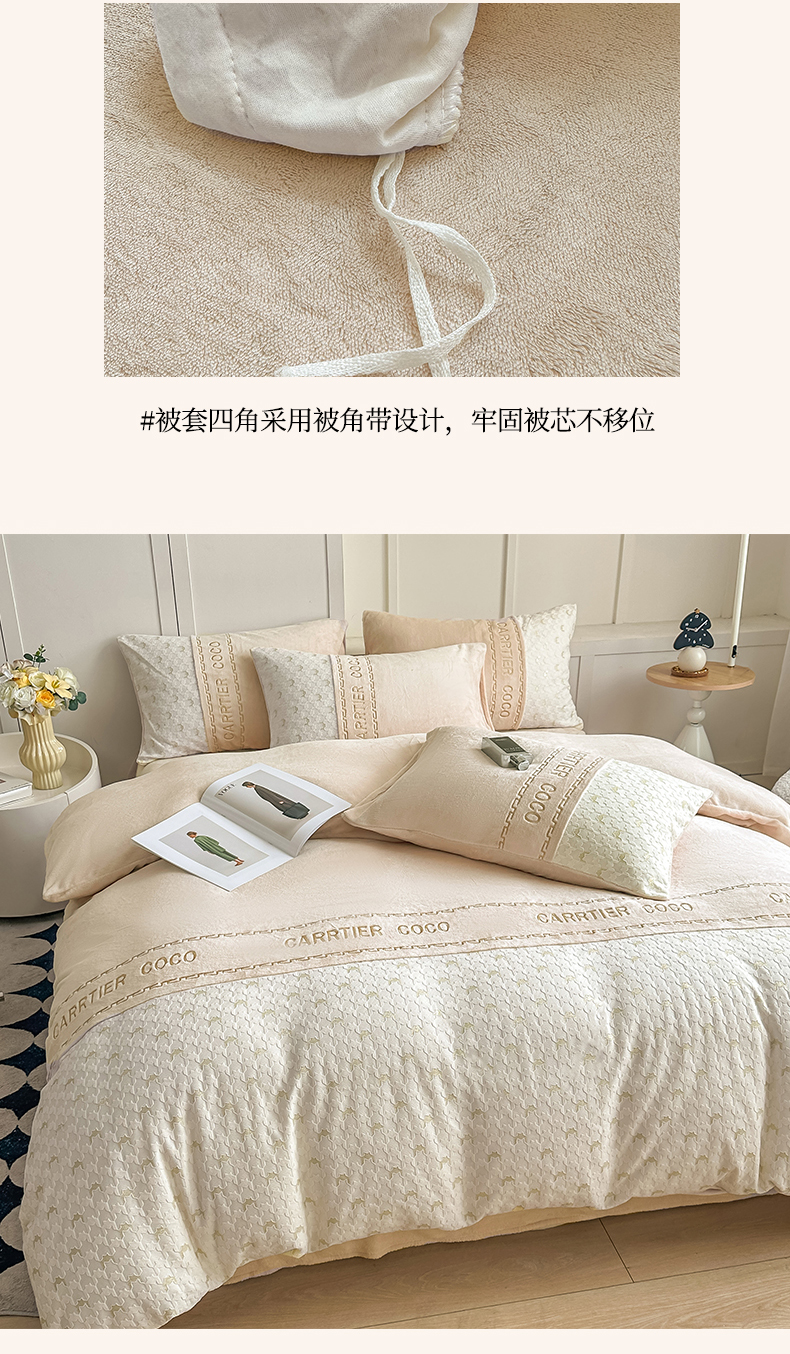 当前位置: 91家纺网 > 商品网购 > 床品套件 > 四件套 > 牛奶绒四件套 > 灰鲸 2025新款牛奶绒拼接刺绣雕花套件-贝娜 贝娜-奶茶