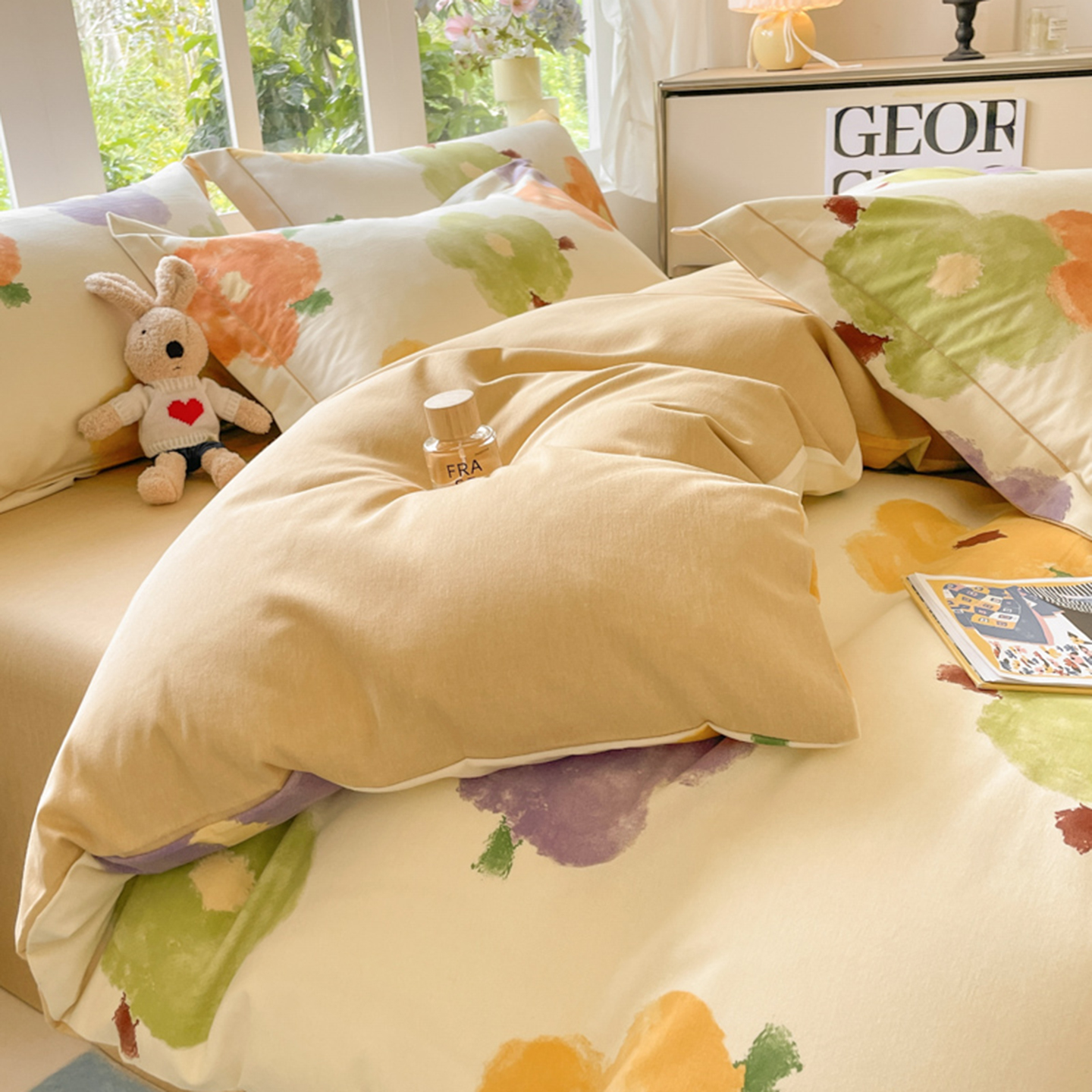 (总)仔仔熊 2025新款牛奶绒纯色双拼四件套,粉色+灰色,黄色+粉色,黄色+蓝色,黄色+绿色,灰色+橙色,卡其+咖色