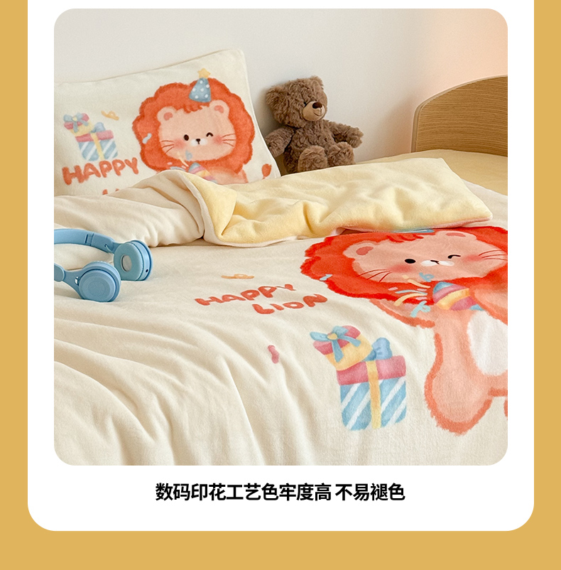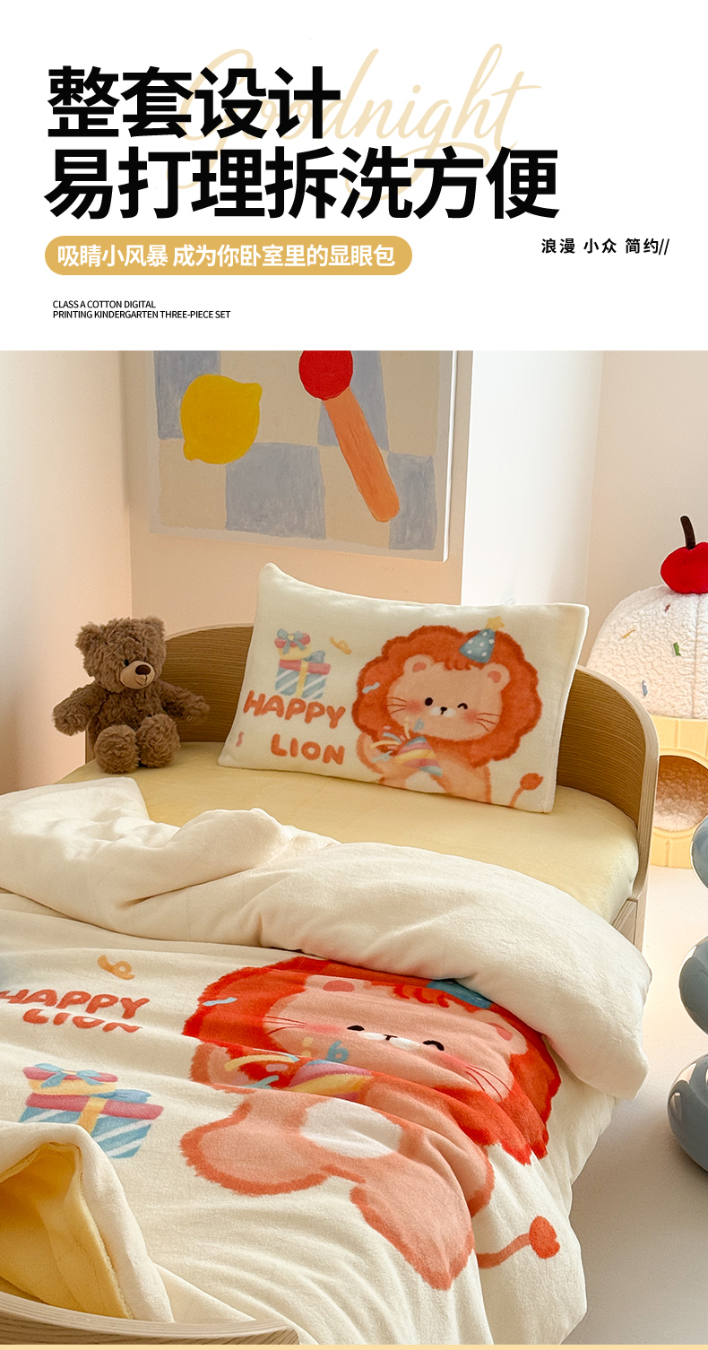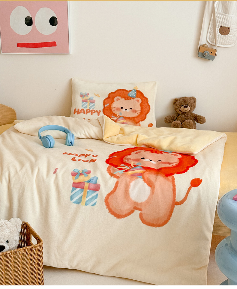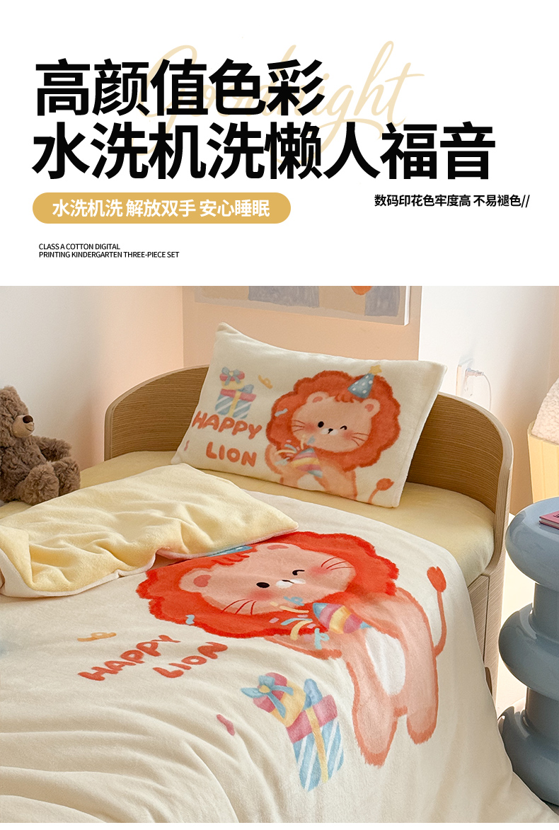 当前位置: 91家纺网 > 商品网购 > 床品套件 > 三件套 > 嗨生活 2025水彩系列新款大版牛奶绒三件套 幼儿园三件套 儿童三件套 萌小狮