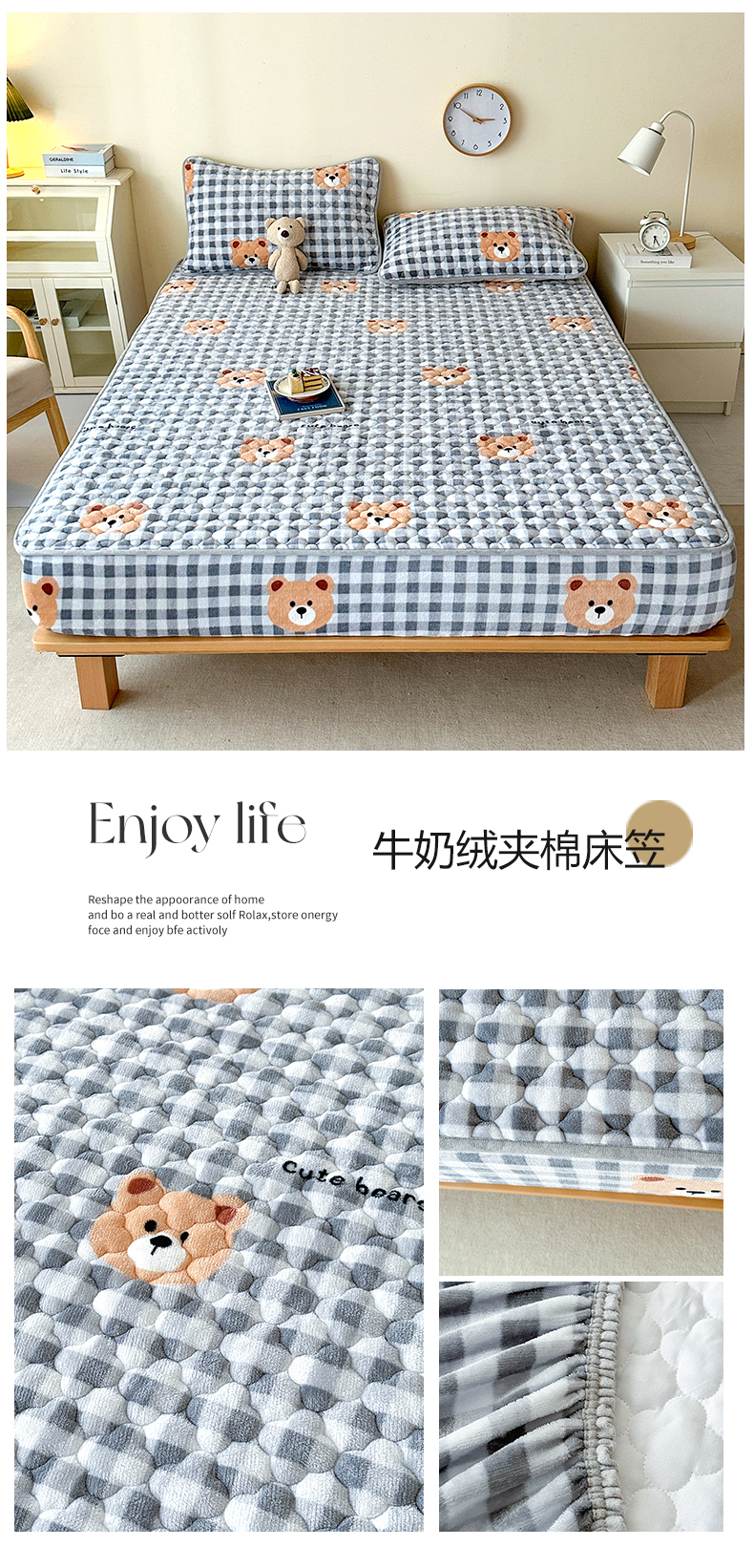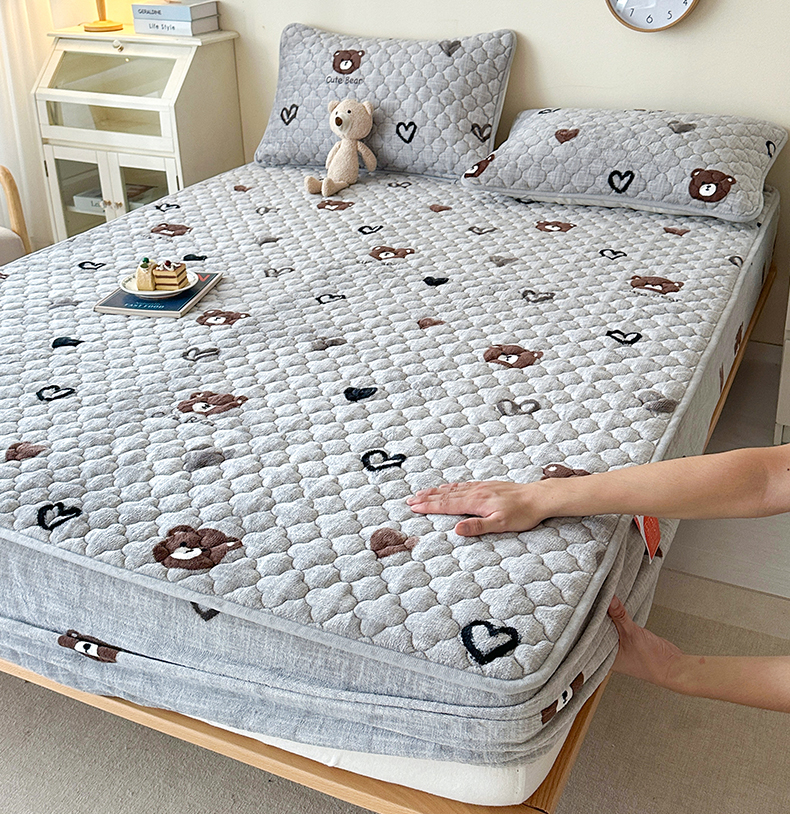 • 91家纺网 家纺一手货源 找家纺 铭成家纺 2025新款牛奶绒夹棉保暖床笠 贵宾格-咖
