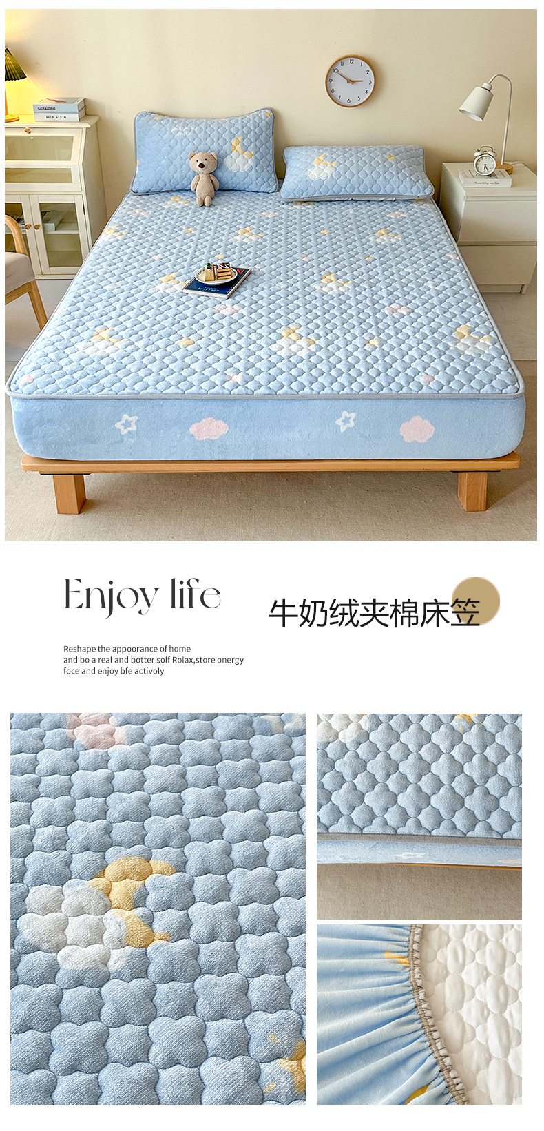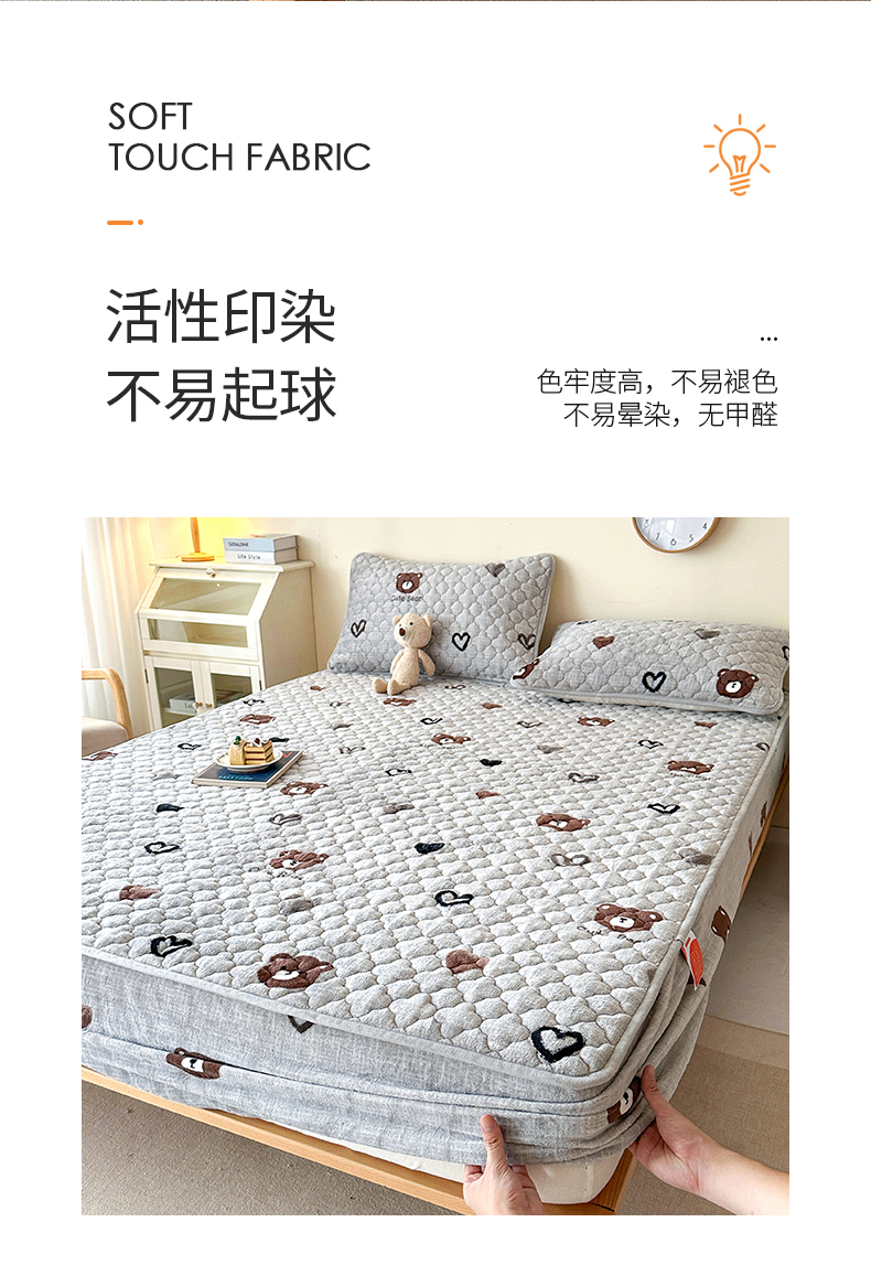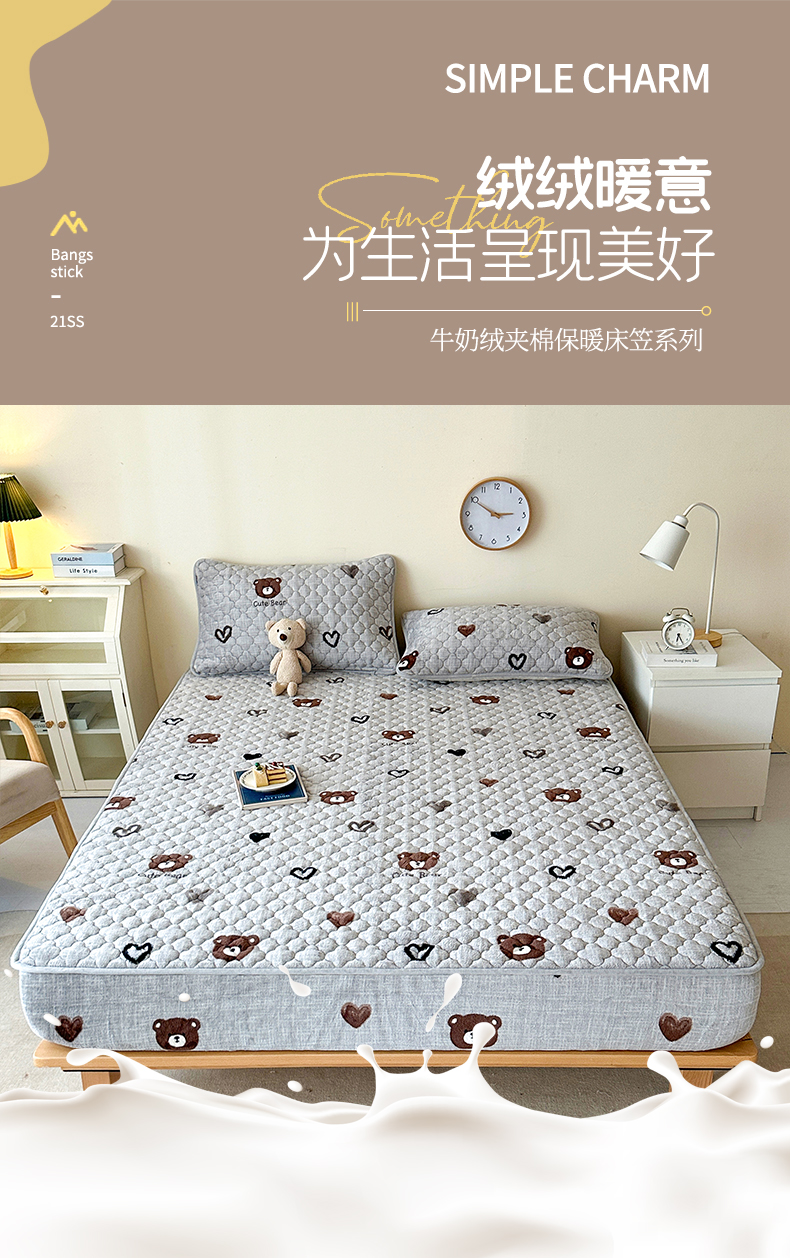 • 91家纺网 家纺一手货源 找家纺 铭成家纺 2025新款牛奶绒夹棉保暖床笠 小灰熊
